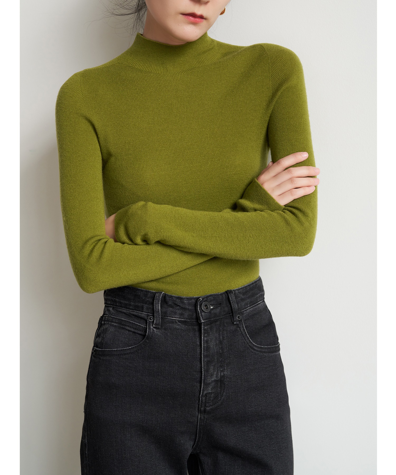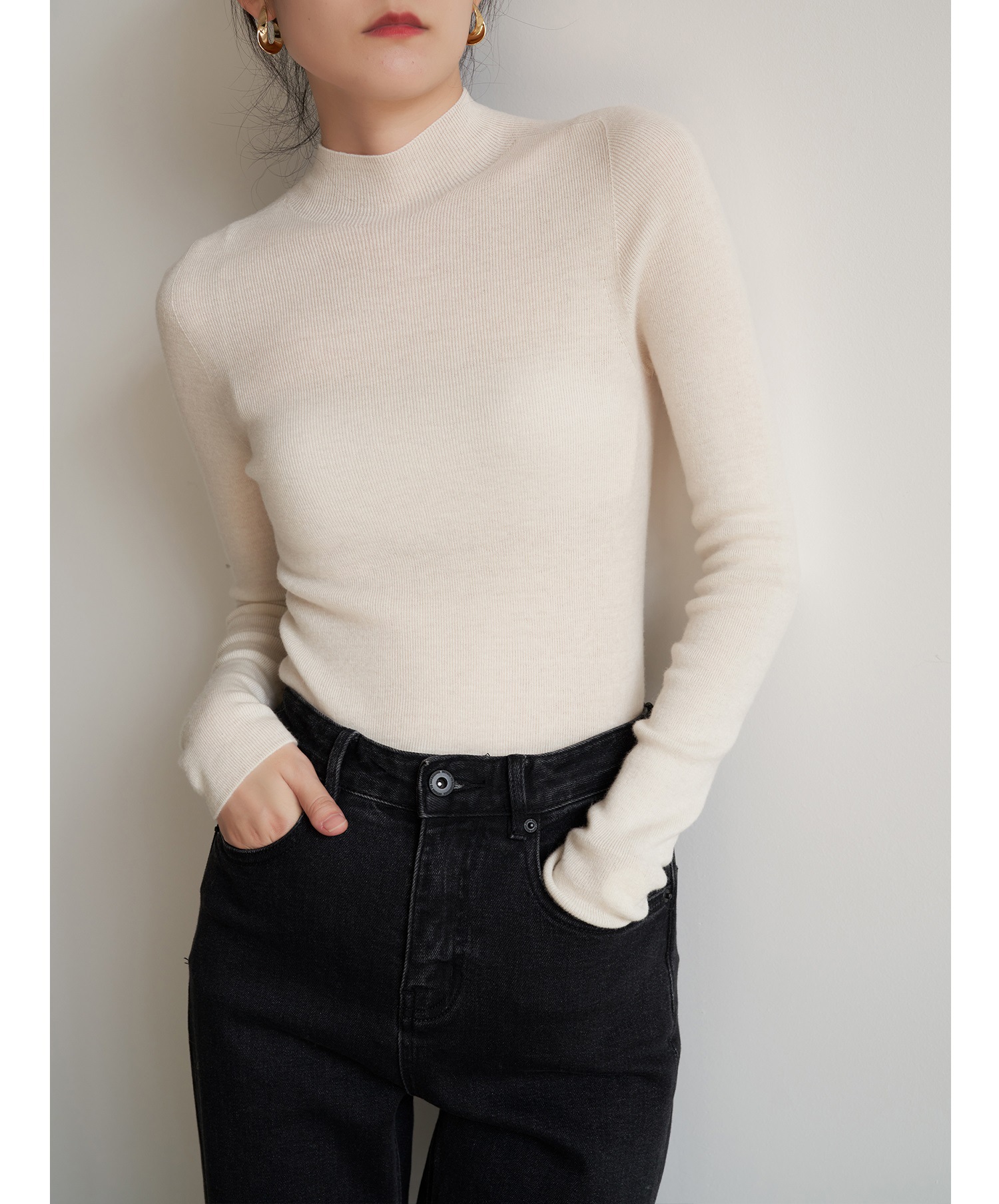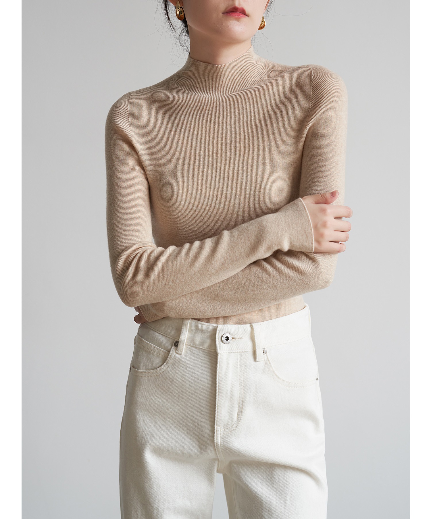 SS STUDIO 심리스 원피스 통근룩 하프 터틀넥 울 니트 여성 가을 겨울 베이스 레이어 단색