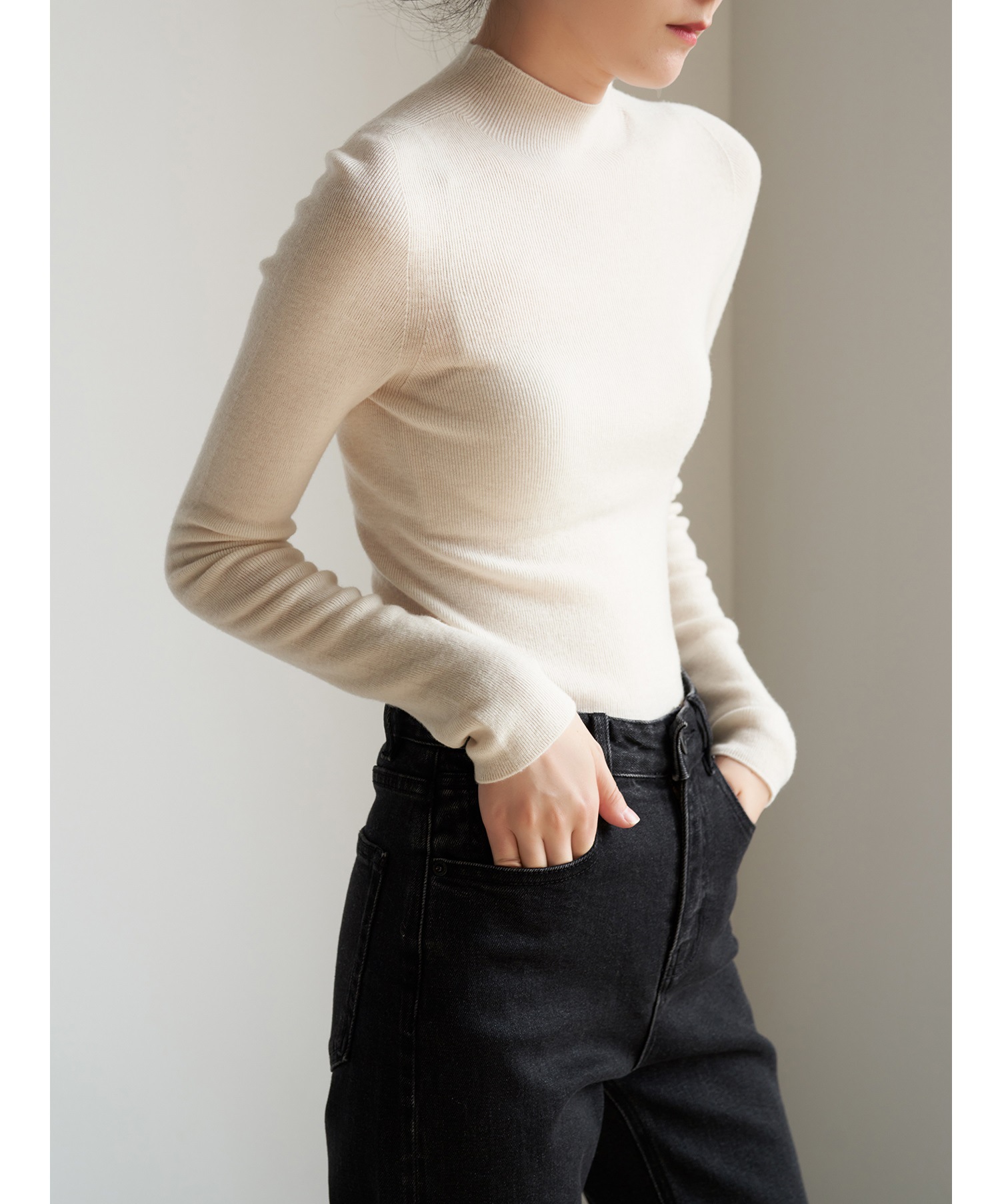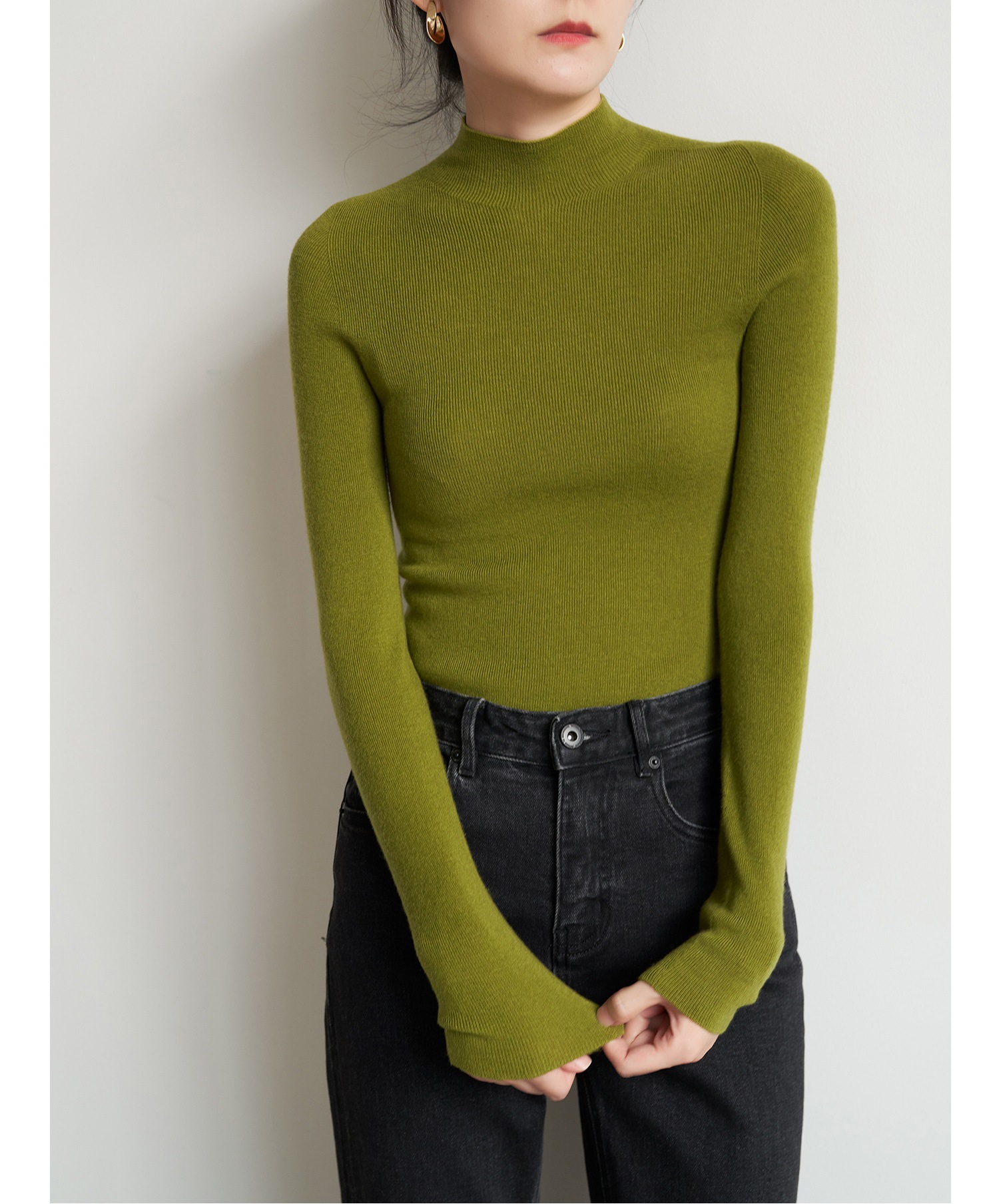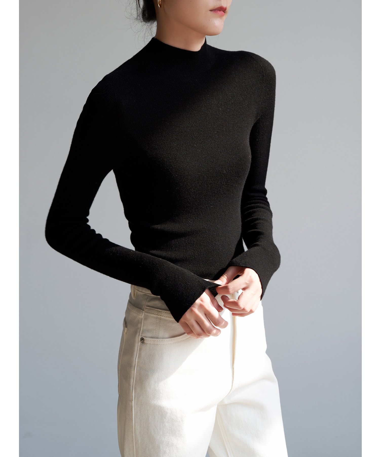 SS STUDIO 심리스 원피스 통근룩 하프 터틀넥 울 니트 여성 가을 겨울 베이스 레이어 단색