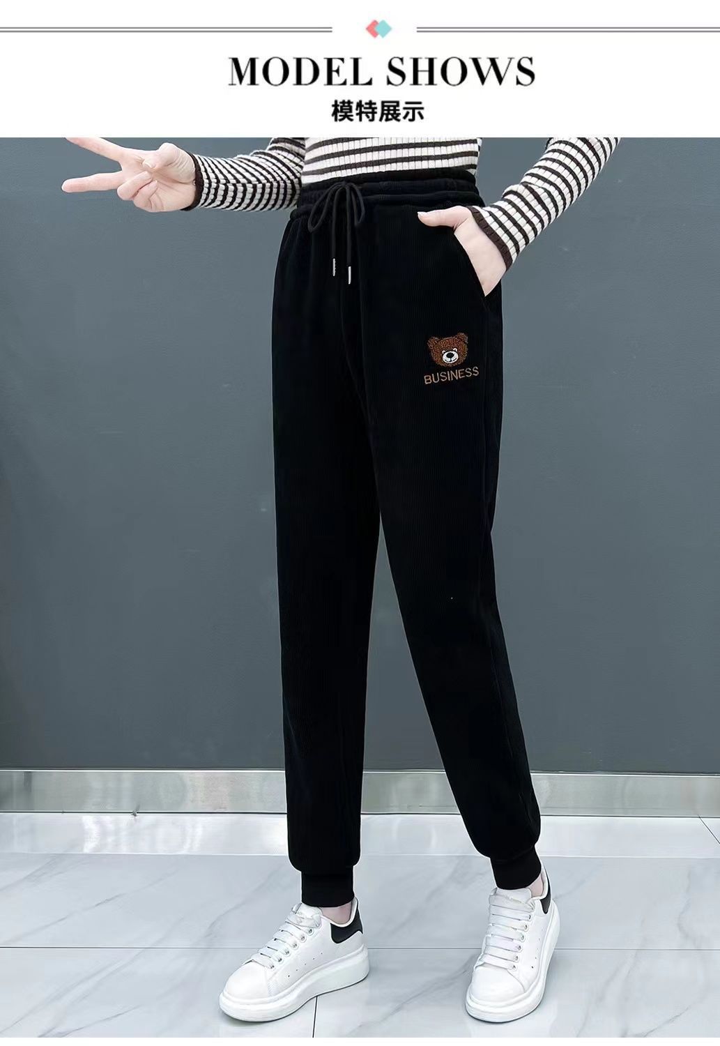 | 上市年份/季节 | 2023年秋季 | 颜色 | 黑色小熊哈伦裤, 深咖小熊哈伦裤, 卡其小熊哈伦裤 |