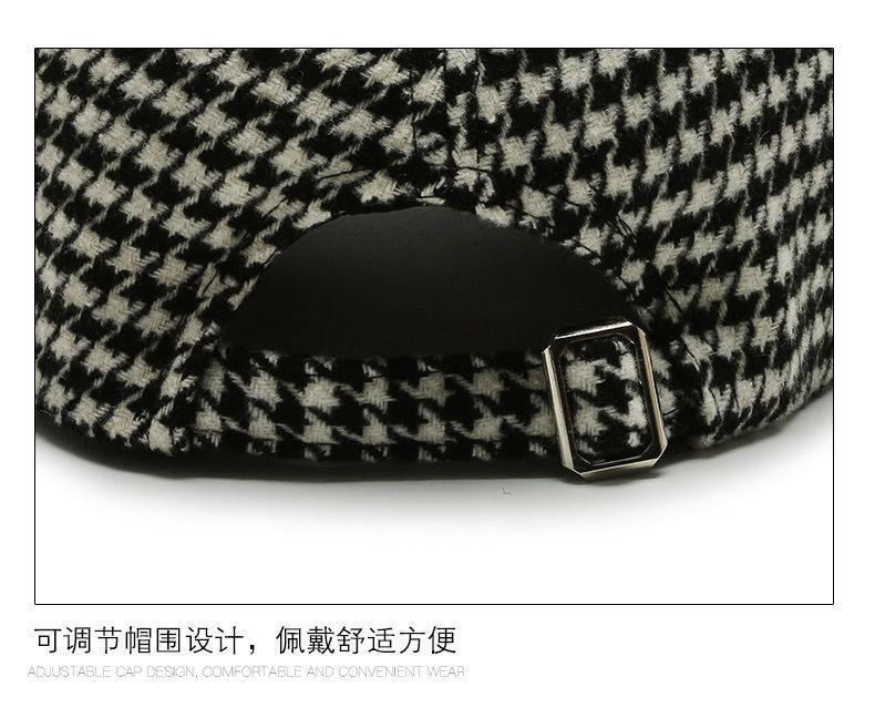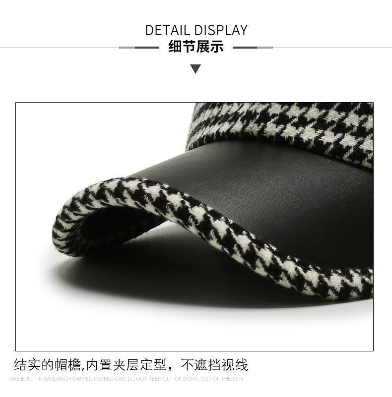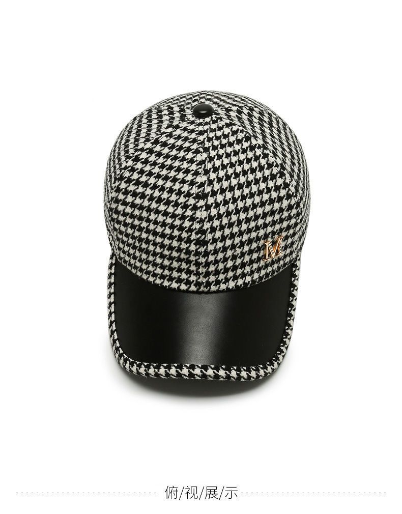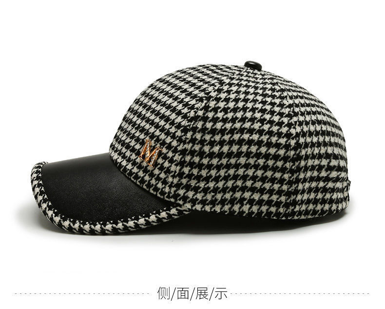 가을과 겨울의 새로운 houndstooth 소녀들의 편지 야구 모자 여성 한국식 세련된 가죽 테두리 격자 무늬 복고풍 모직 모자
