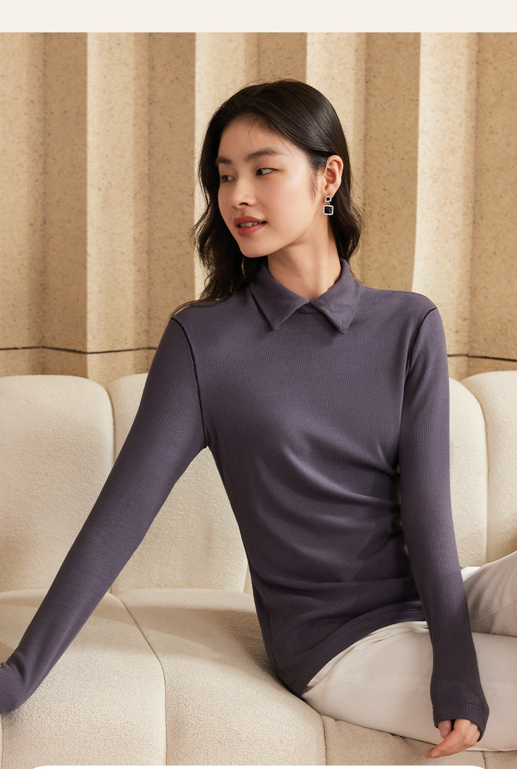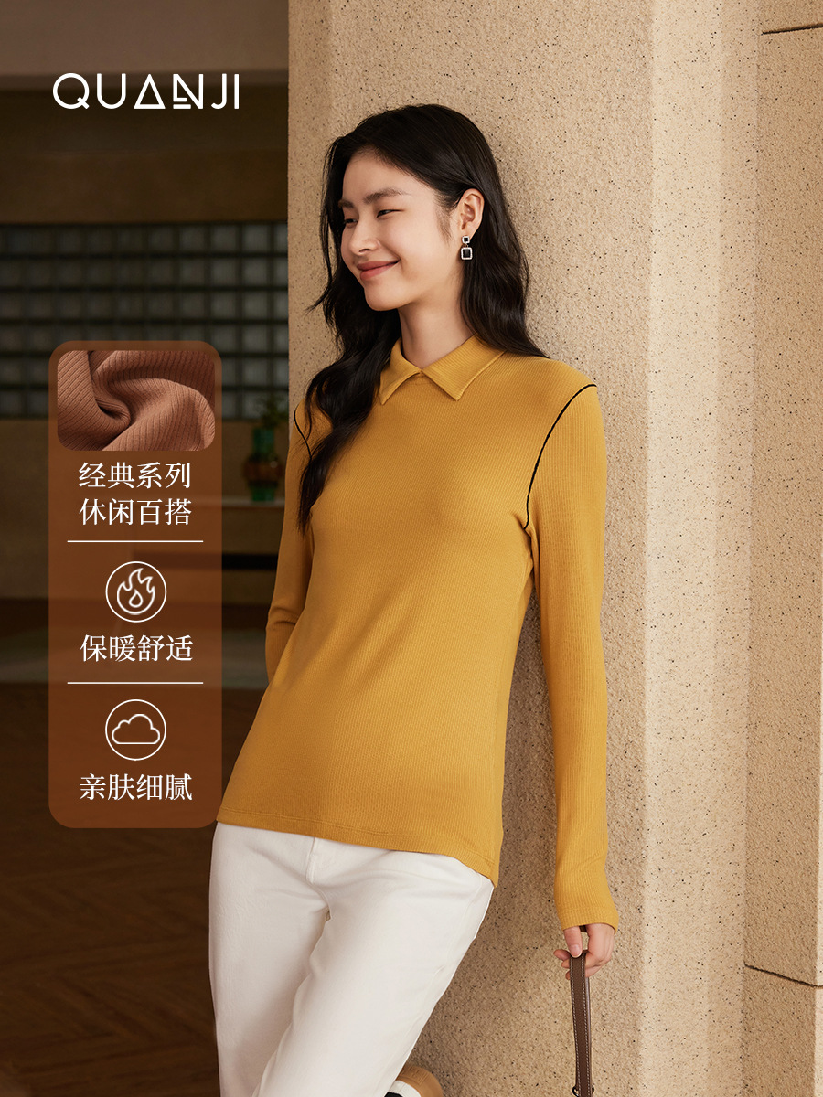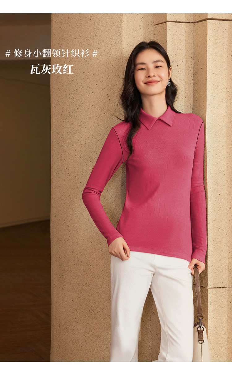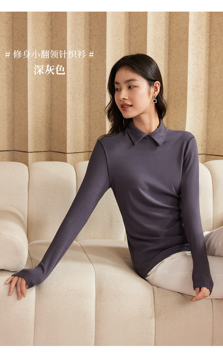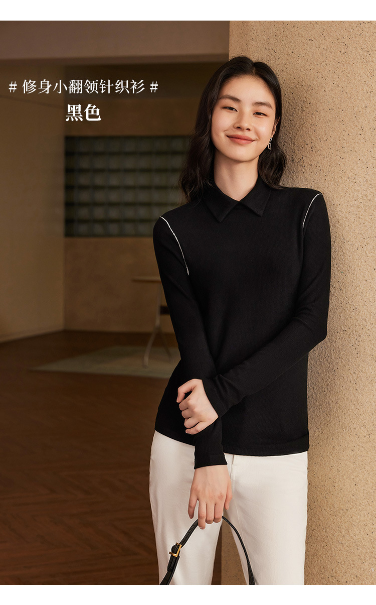 여성용 베이스 셔츠 가을 옷깃 따뜻한 슬림 탑 겨울 심플 디자인 라인 슬림 작은 옷깃 니트웨어
