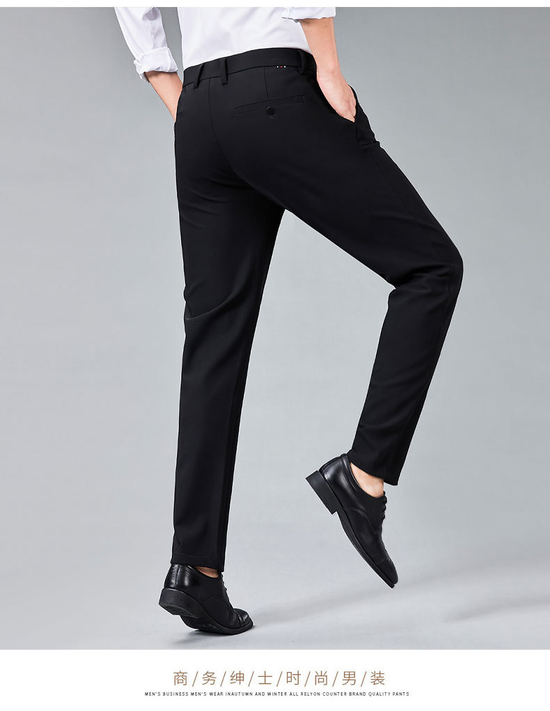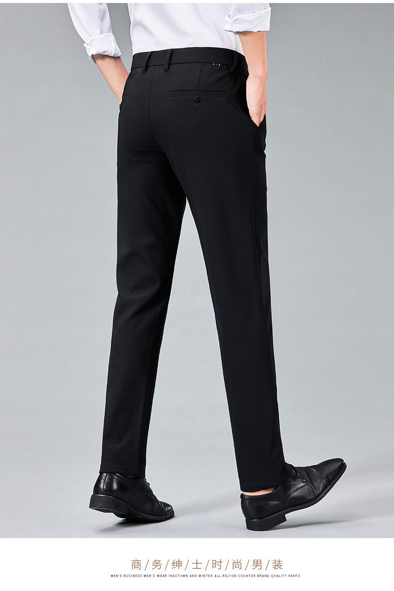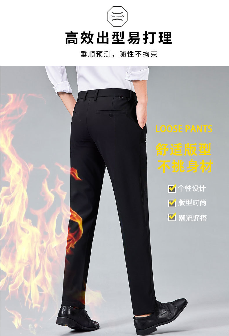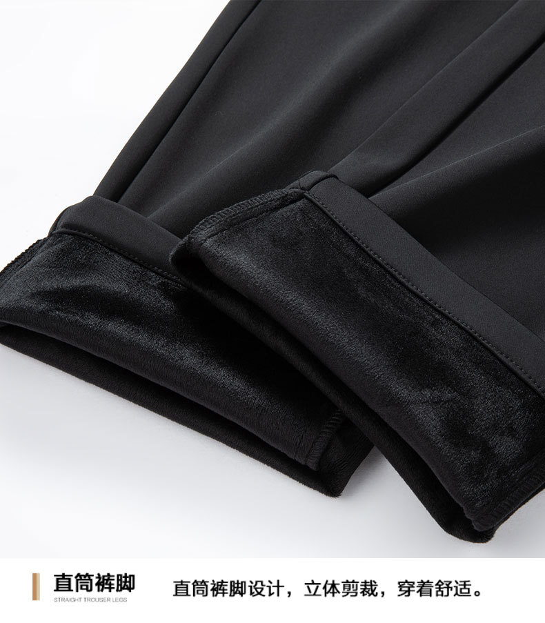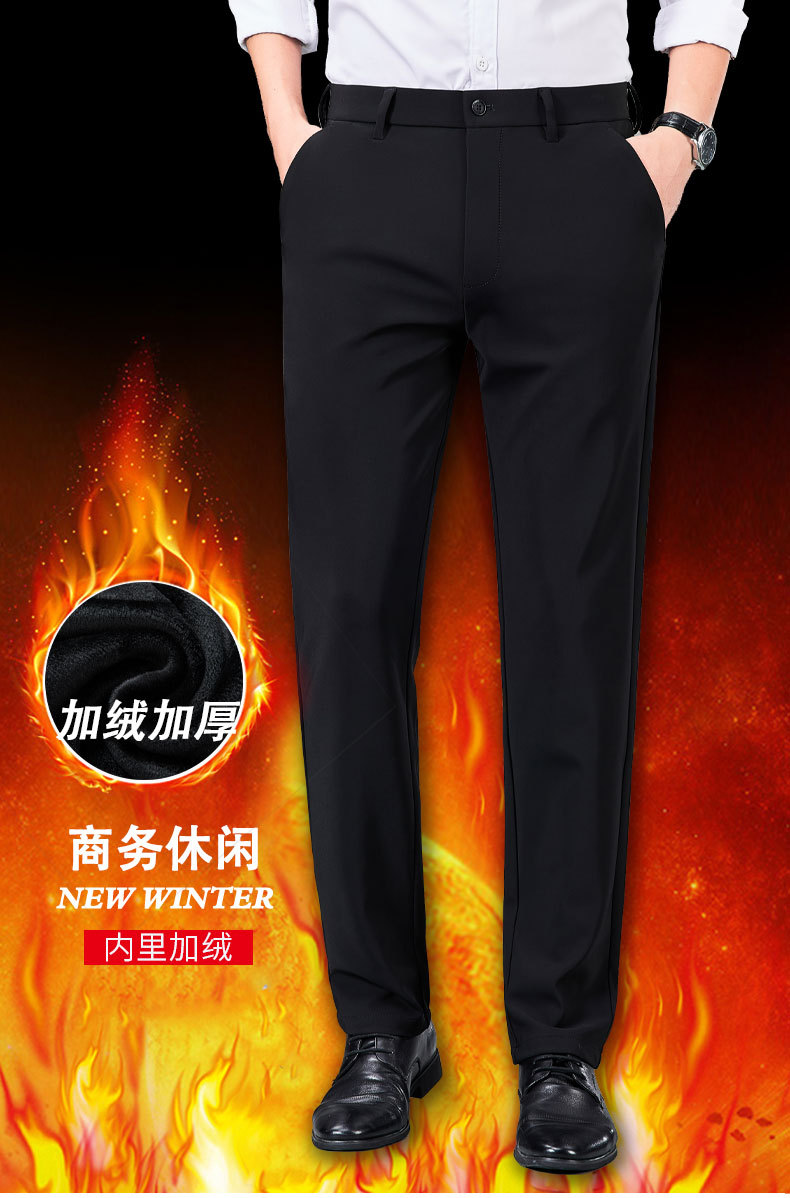 가을과 겨울 기모 두꺼운 캐주얼 바지 남성용 가벼운 비즈니스 비 다림질 바지 스트레치 슬림핏 스트레이트 팬츠 블랙 바지