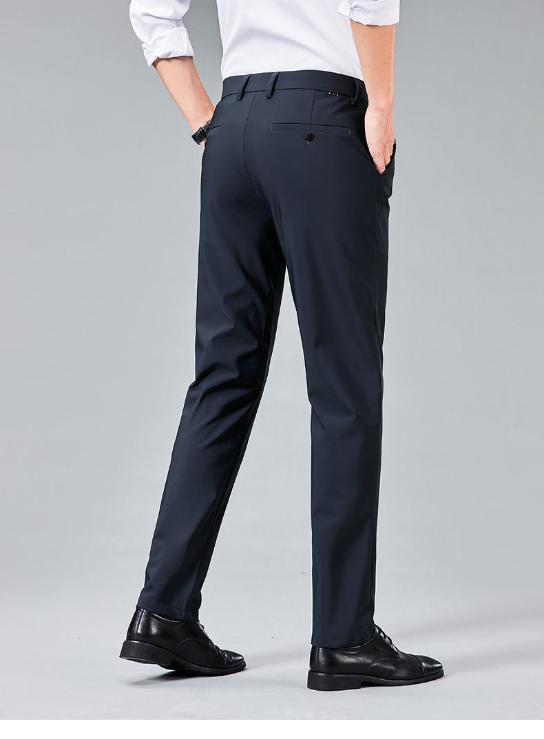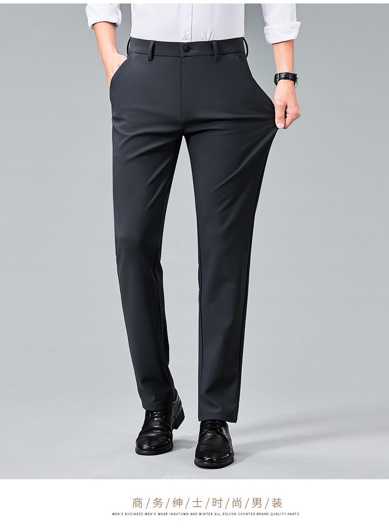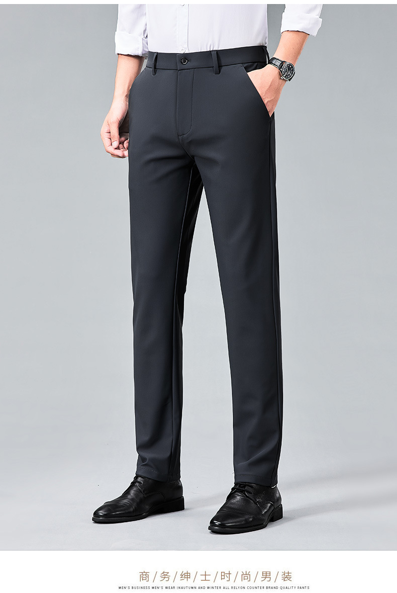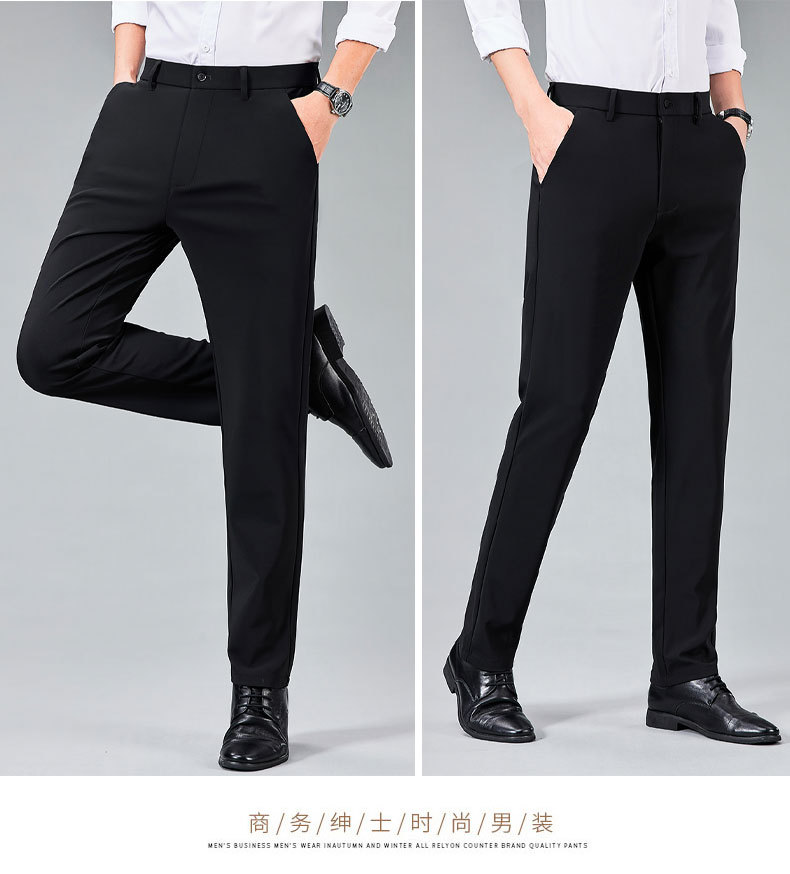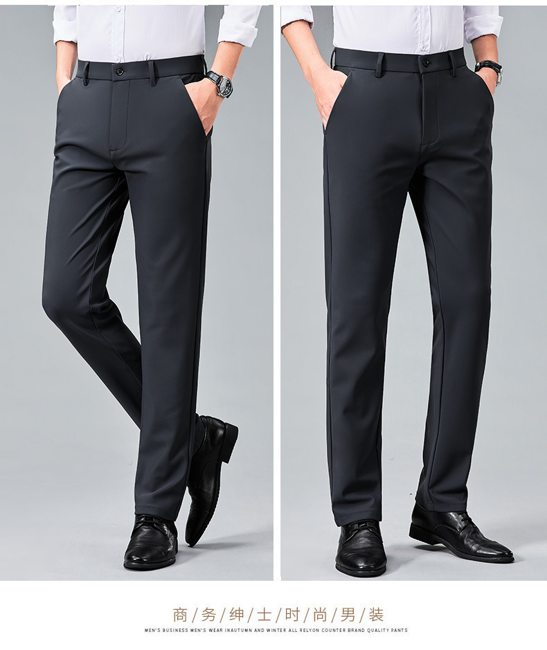 가을과 겨울 기모 두꺼운 캐주얼 바지 남성용 가벼운 비즈니스 비 다림질 바지 스트레치 슬림핏 스트레이트 팬츠 블랙 바지