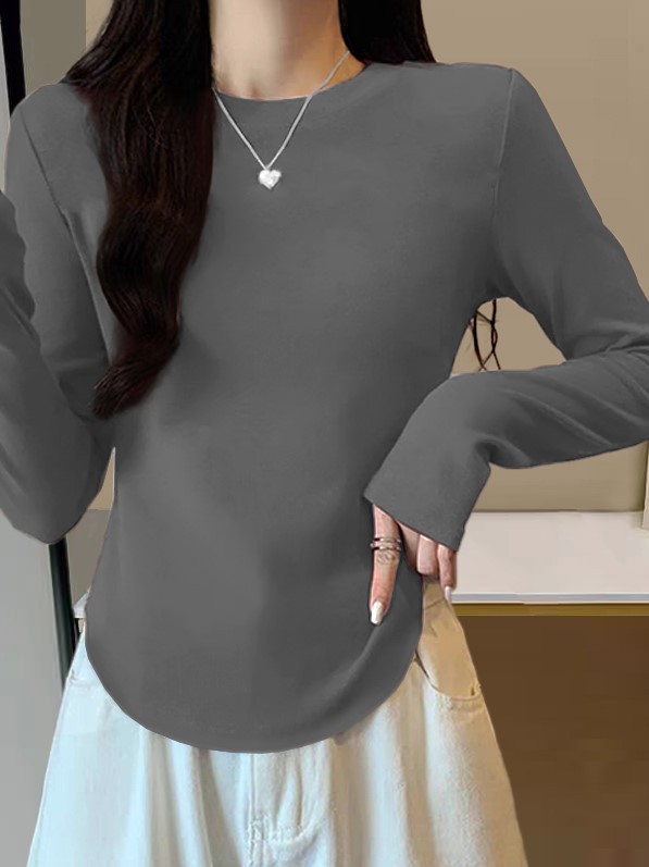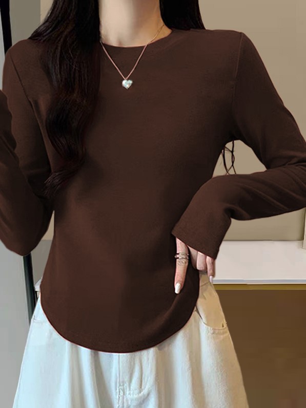 양면 벨벳 바닥 셔츠 여성의 가을과 겨울 새로운 불규칙한 디자인 감각 단색 긴 소매 슬림 티셔츠 탑 인