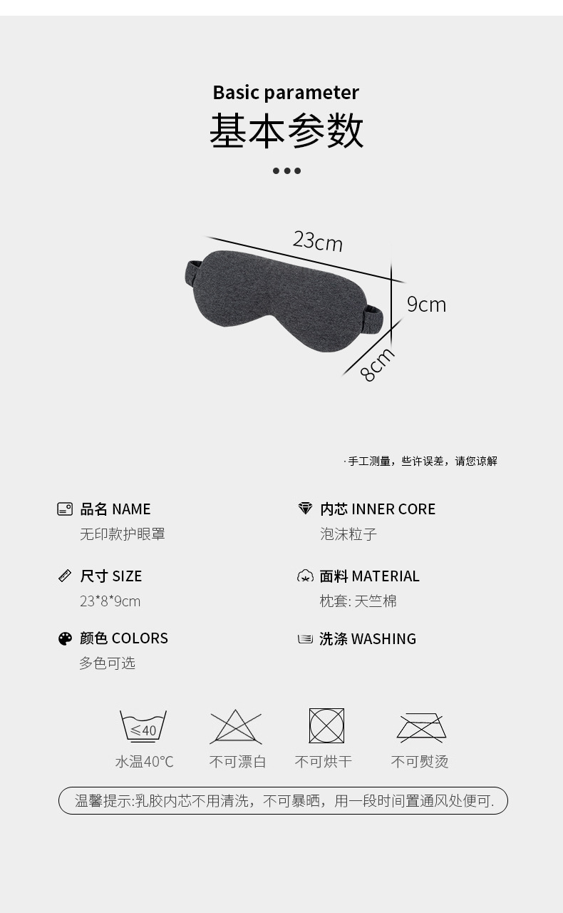 | 产品类别 | 护眼罩 | 规格 | 眼罩 - 条纹灰白, 眼罩 - 条纹藕粉, 眼罩 - 条纹焦糖, 眼罩 - 素色浅灰, 眼罩 - 素色深灰, 眼罩+头枕 - 条纹灰白, 眼罩+头枕 - 条纹藕粉, 眼罩+头枕 - 条纹焦糖, 眼罩+头枕 - 条纹深灰, 眼罩+头枕 - 素色浅灰, 眼罩+头枕 - 素色深灰 |