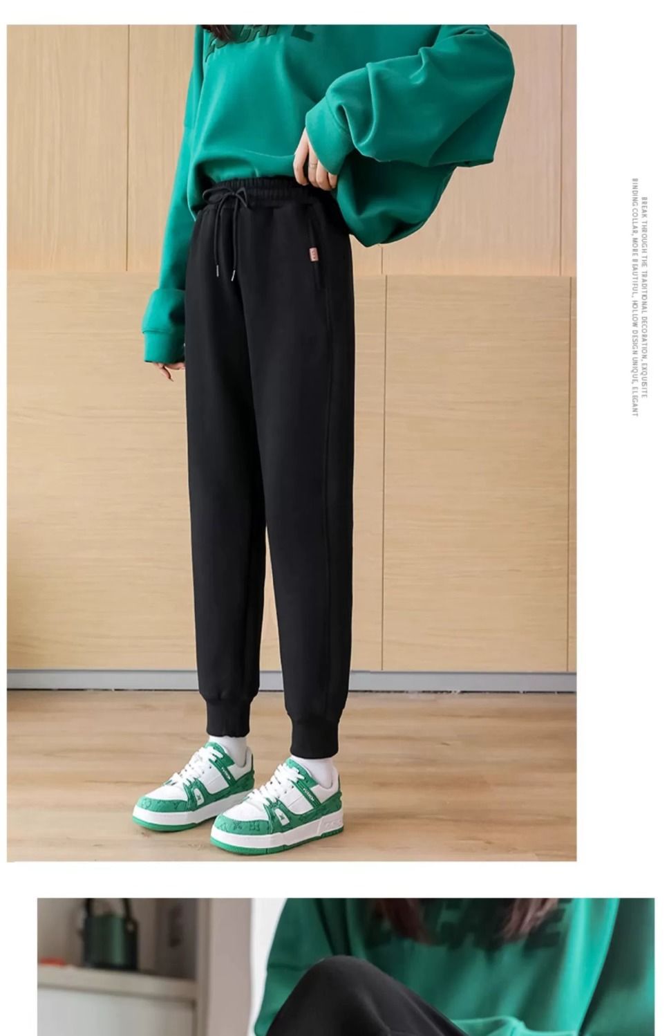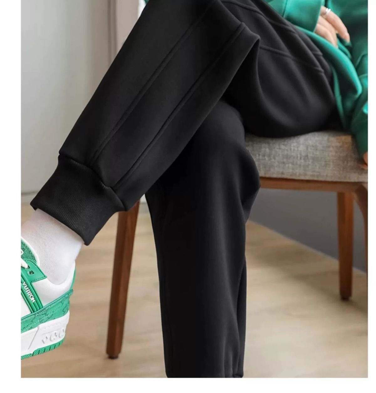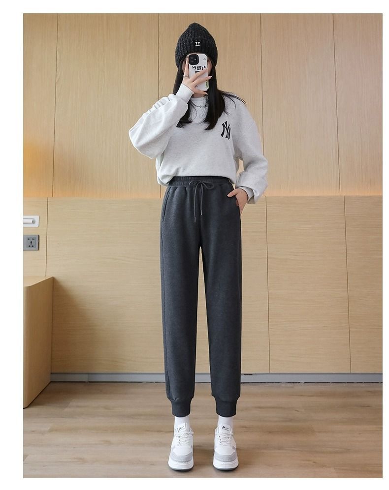 기모 스포츠 바지 여성의 겨울 두꺼운 겉옷 원피스 벨벳 팬츠 작은 슬림 발목 묶은 따뜻한 캐주얼 스웨트 팬츠