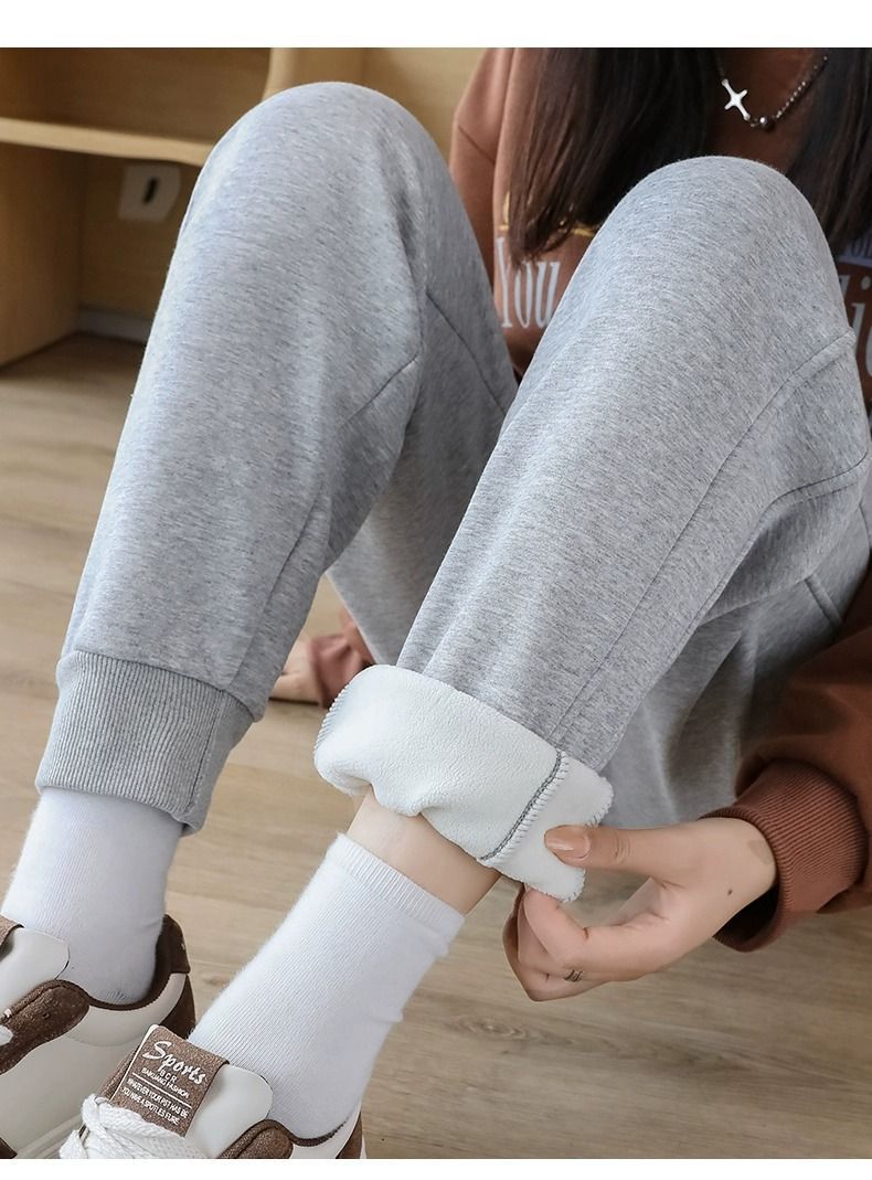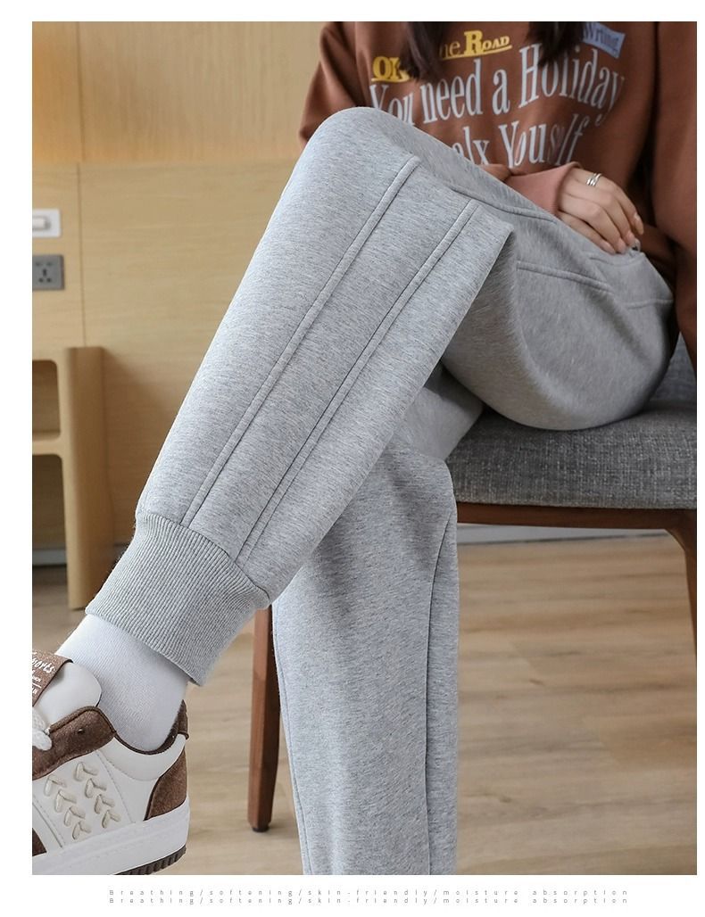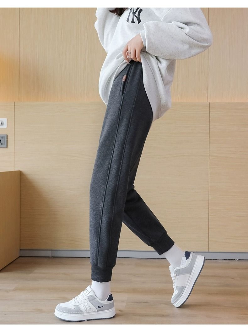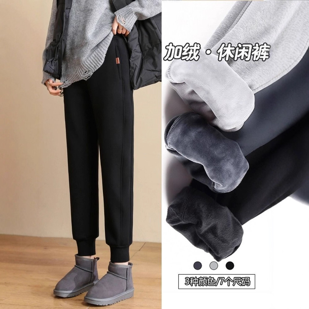 기모 스포츠 바지 여성의 겨울 두꺼운 겉옷 원피스 벨벳 팬츠 작은 슬림 발목 묶은 따뜻한 캐주얼 스웨트 팬츠