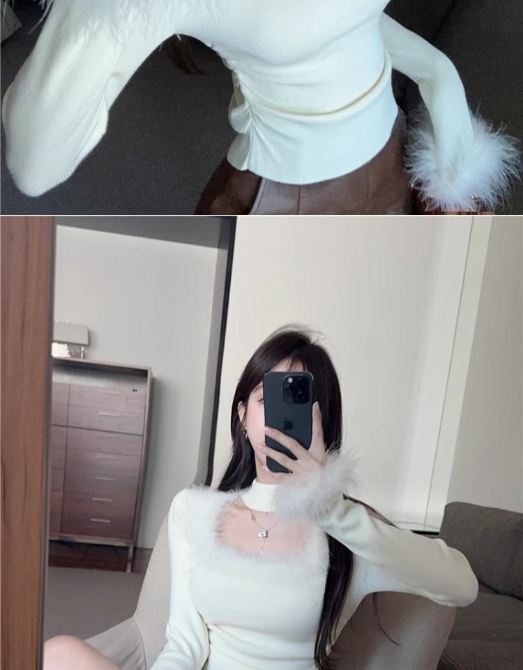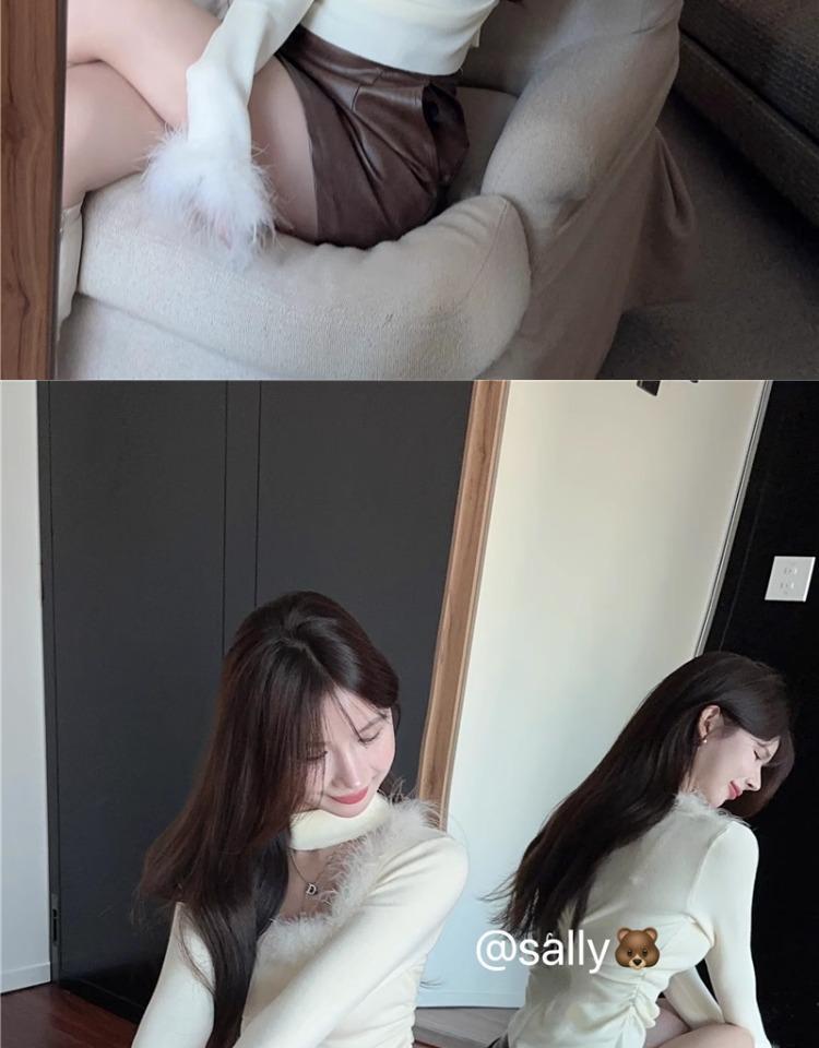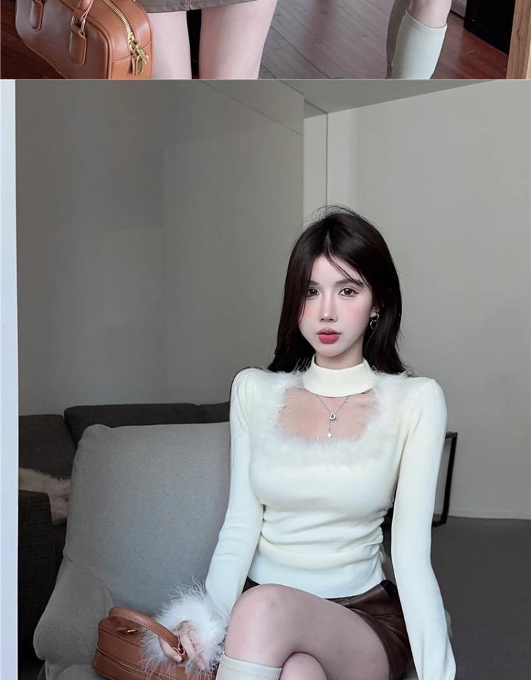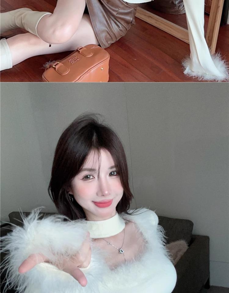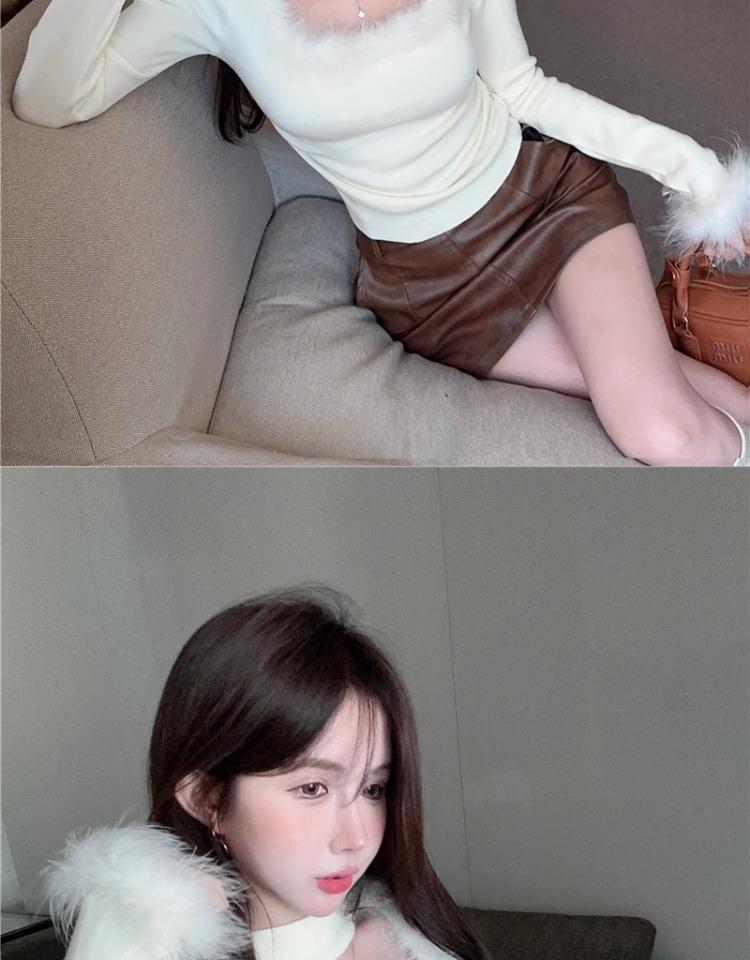가을 겨울 달콤하고 매운 플러시 스퀘어넥 홀터넥 슬림핏 숏탑 디자인 여성용 레이디셔츠