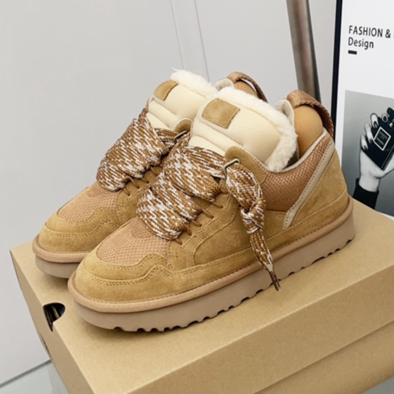 모피 슈즈, 스포츠 및 레저 운동화, 천연 모피 일체형 얇은 스트랩 로우탑 스노우 부츠, 여성용 가을 겨울 벨벳 대형 면화