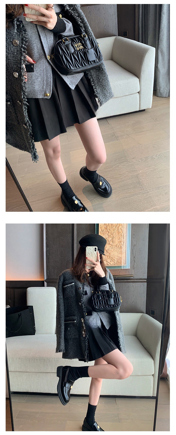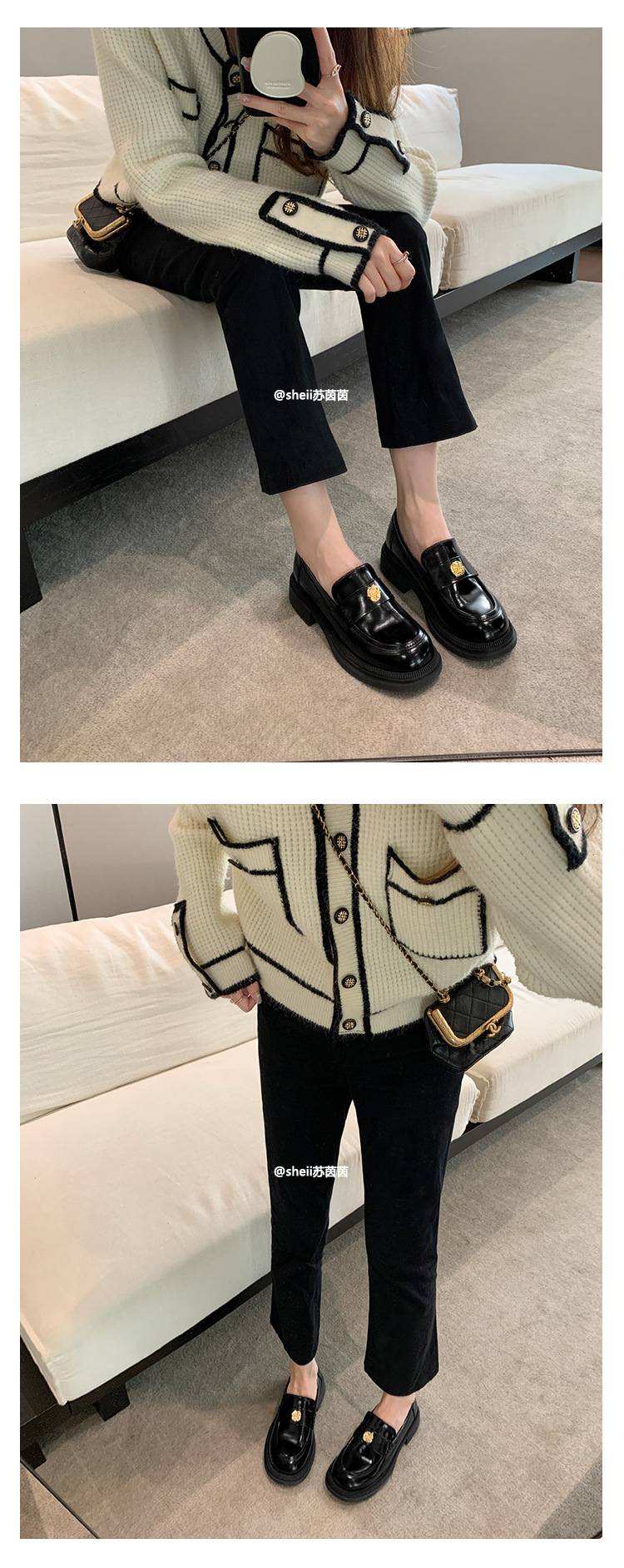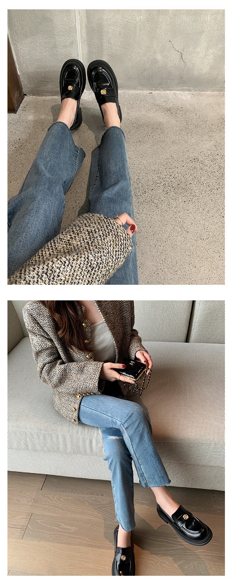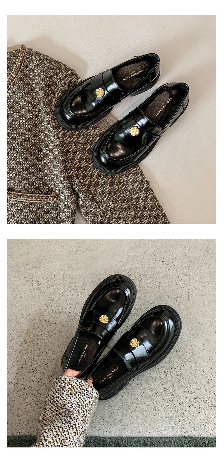 가죽 동백꽃 여성용 가을 겨울 두꺼운 굽 슬립온 로퍼 여성용 단화 편안하고 따뜻한 로리타 스타일