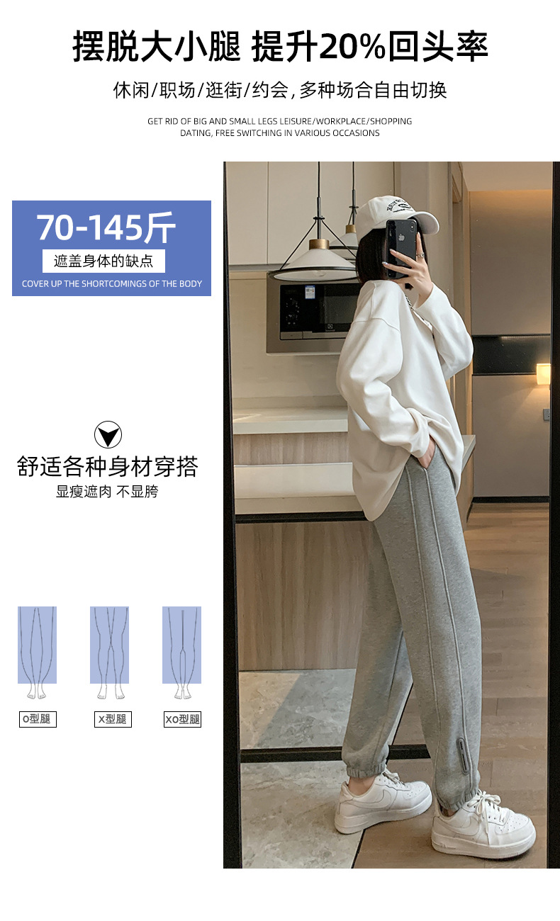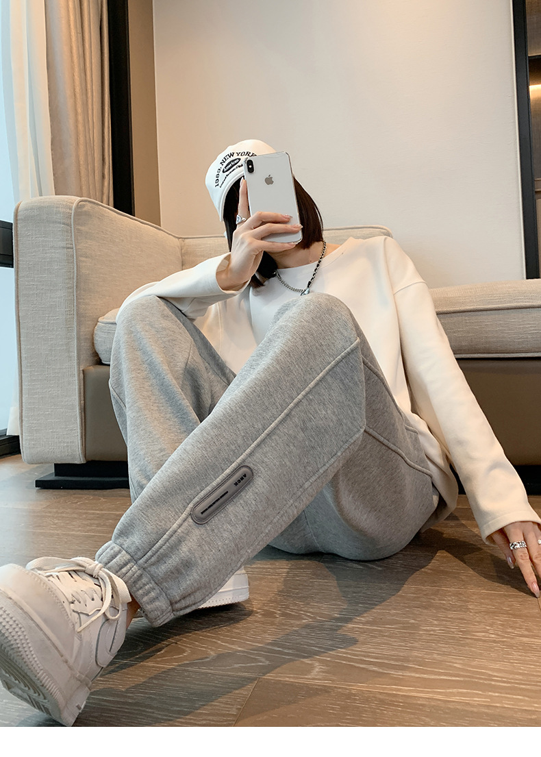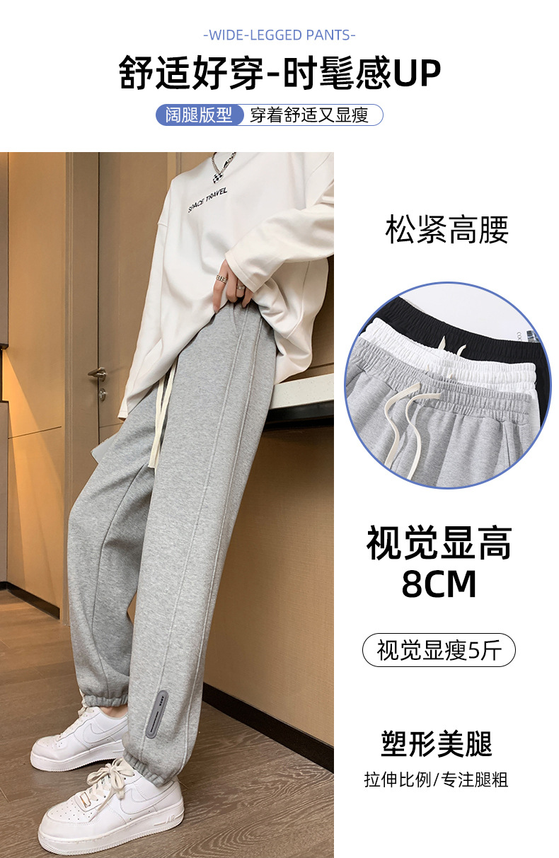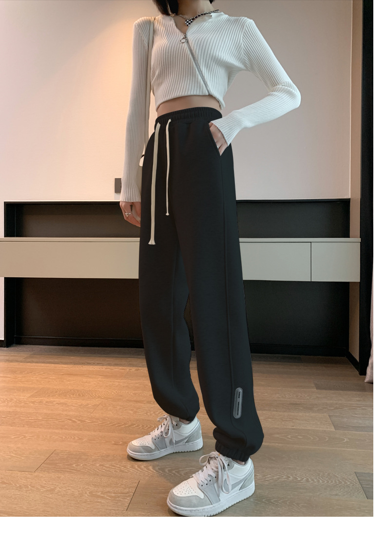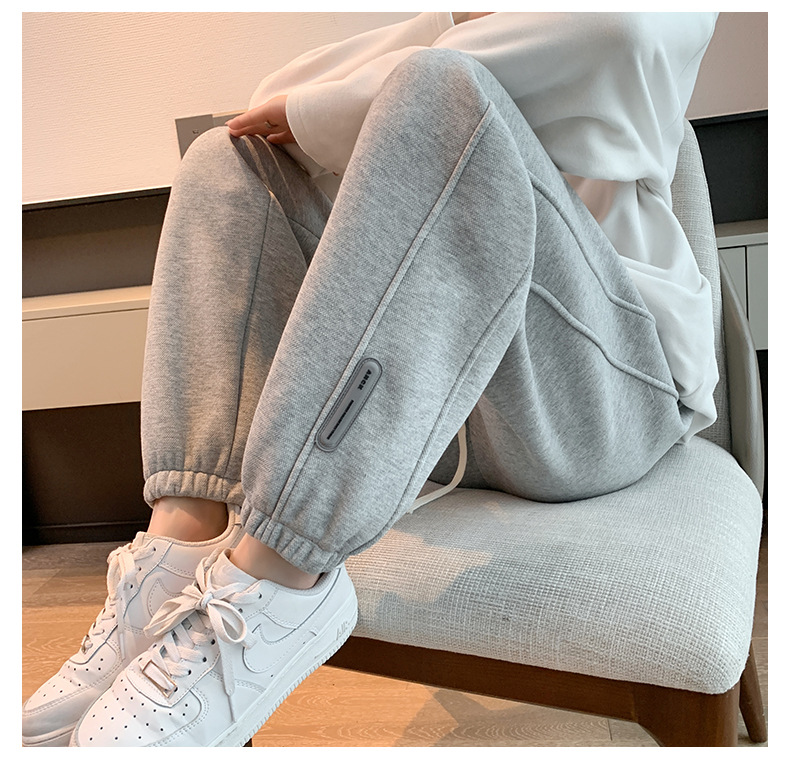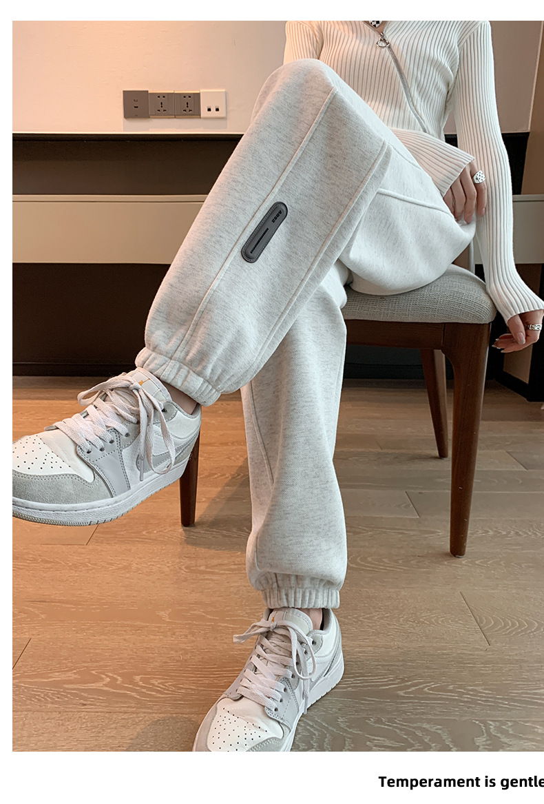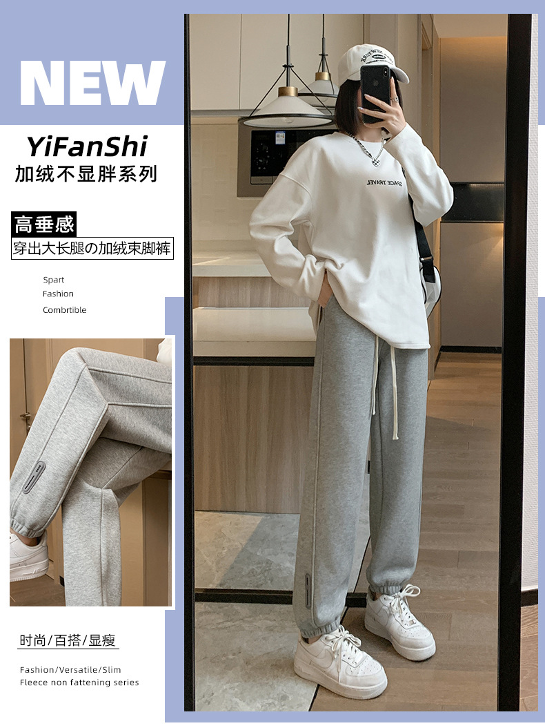 스웨트 팬츠 여성의 기모 두꺼운 스포츠 바지 여성의 2023 가을과 겨울 높은 허리 슬리밍 캐주얼 바지 작은 느슨한 발목 묶인 바지