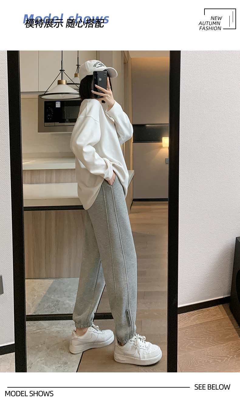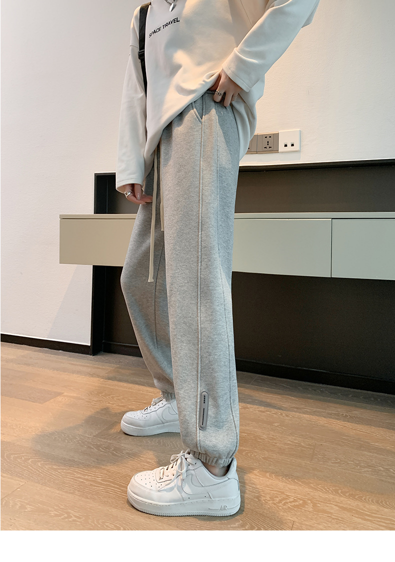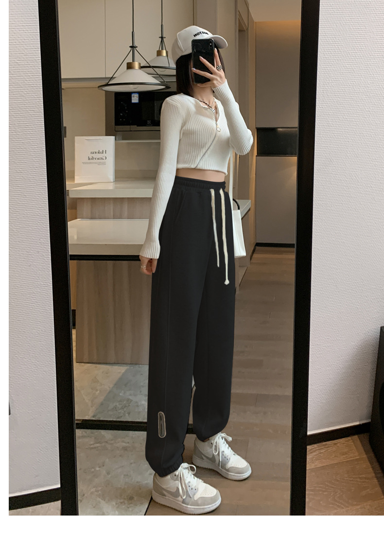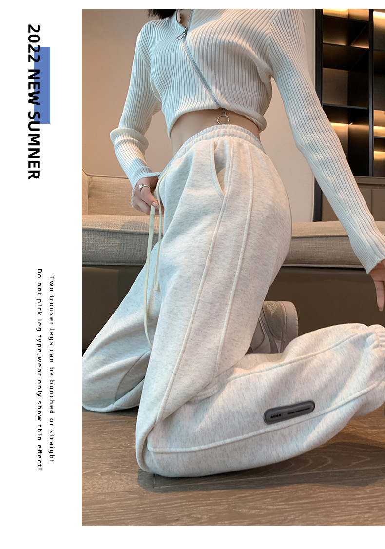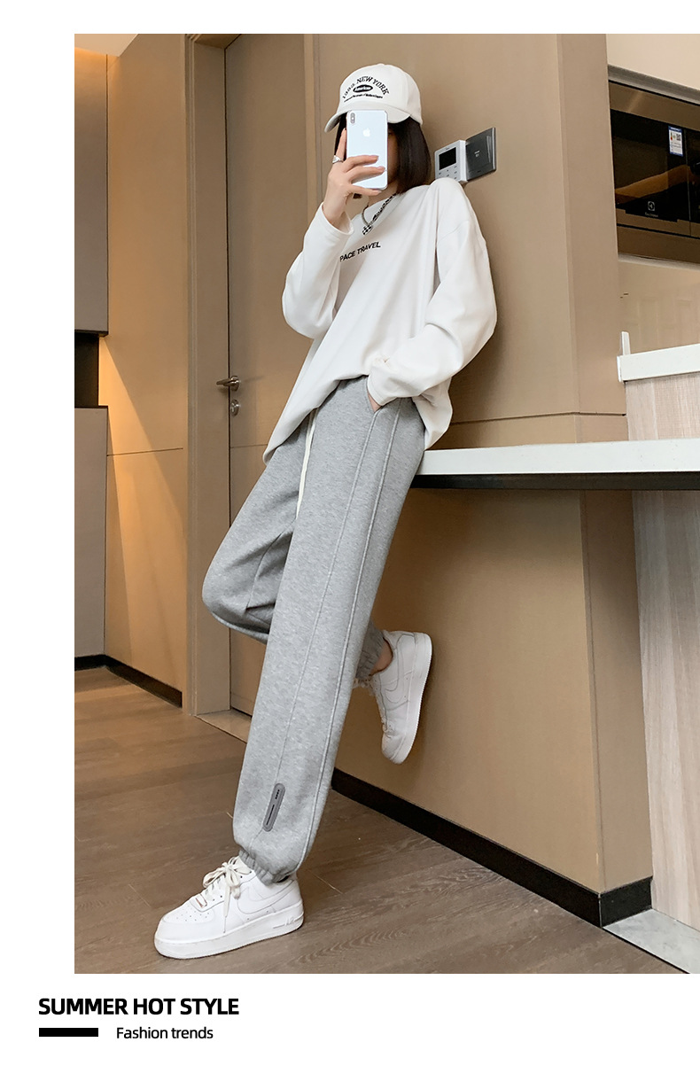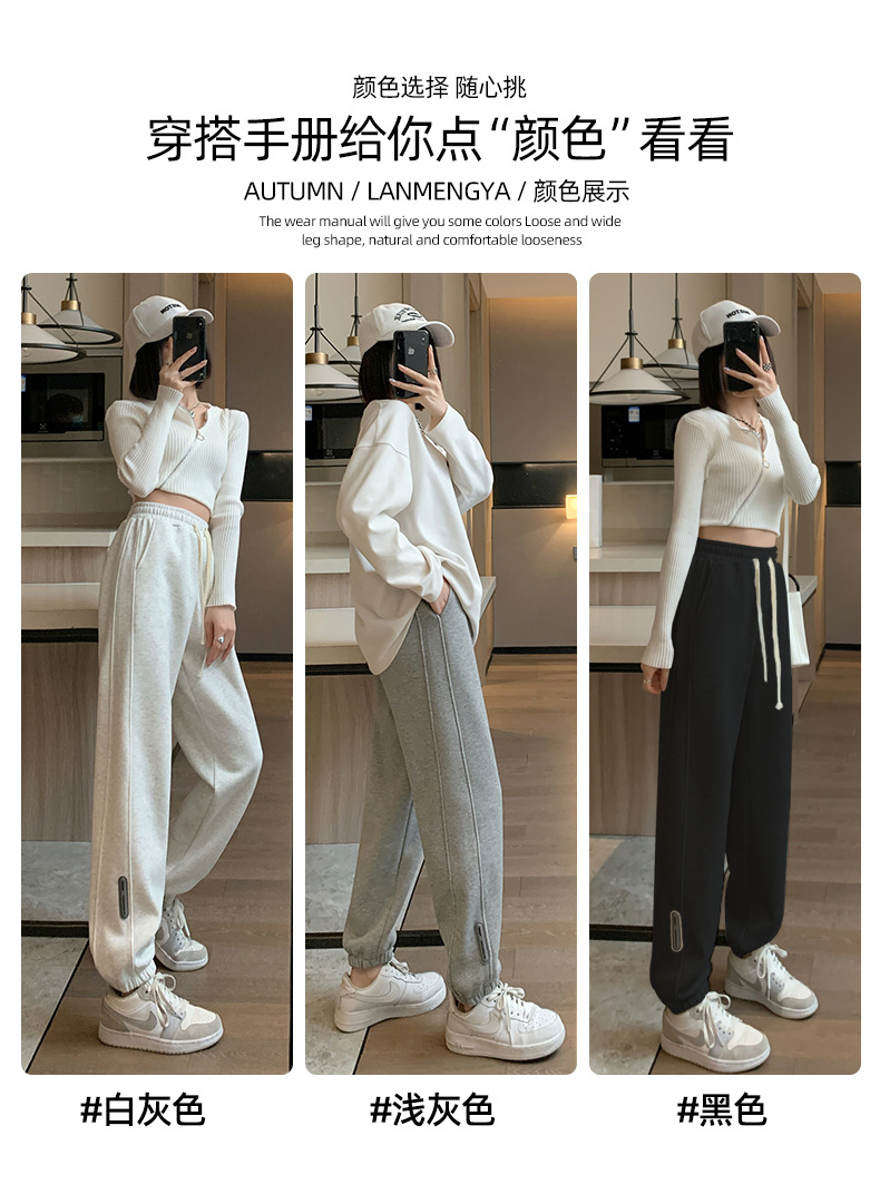 스웨트 팬츠 여성의 기모 두꺼운 스포츠 바지 여성의 2023 가을과 겨울 높은 허리 슬리밍 캐주얼 바지 작은 느슨한 발목 묶인 바지