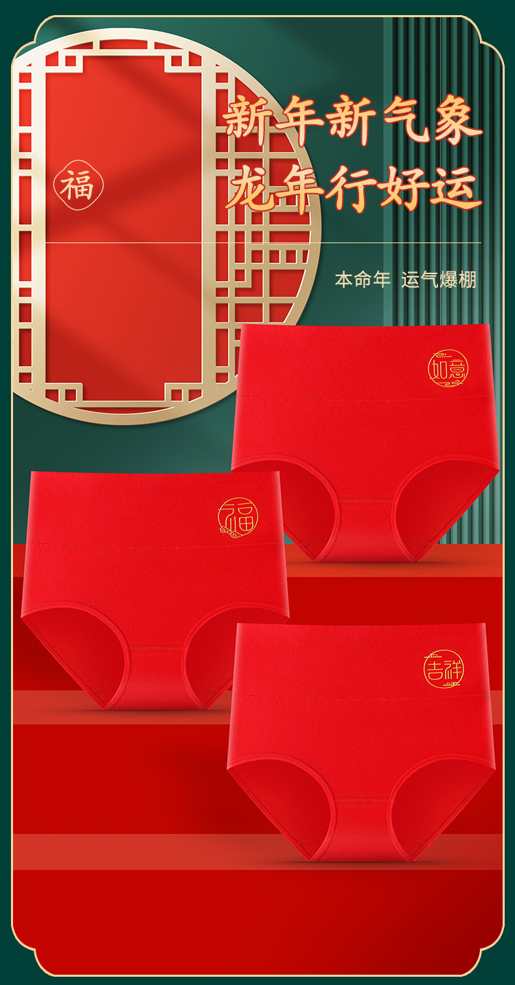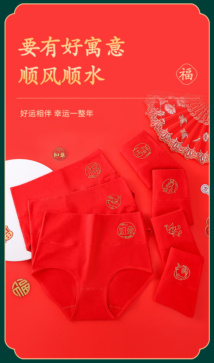 50 신장 순면 출생 년 붉은 허리 순면 배 계약 속옷 새해 붉은 여성 속옷 순면 가랑이
