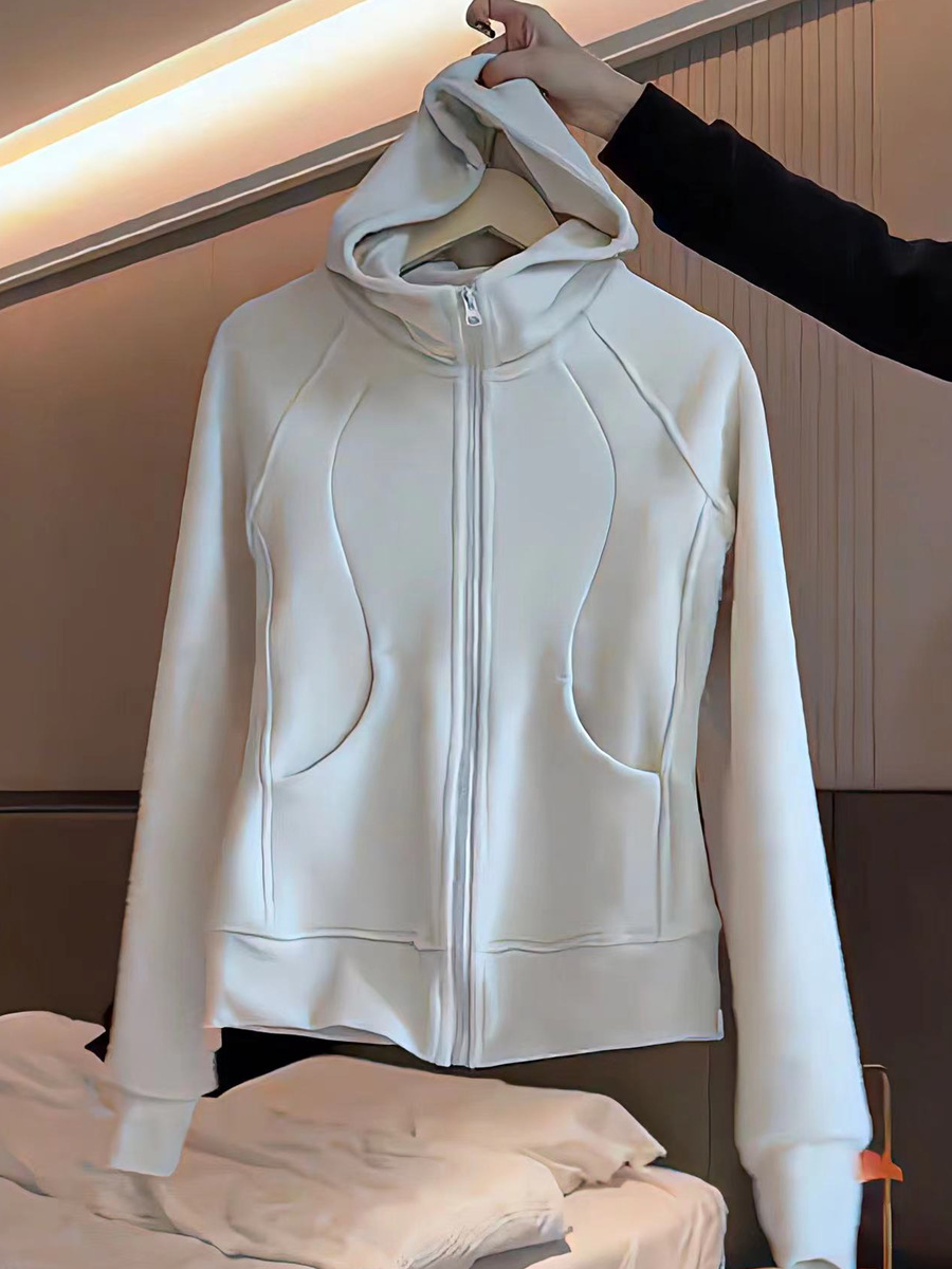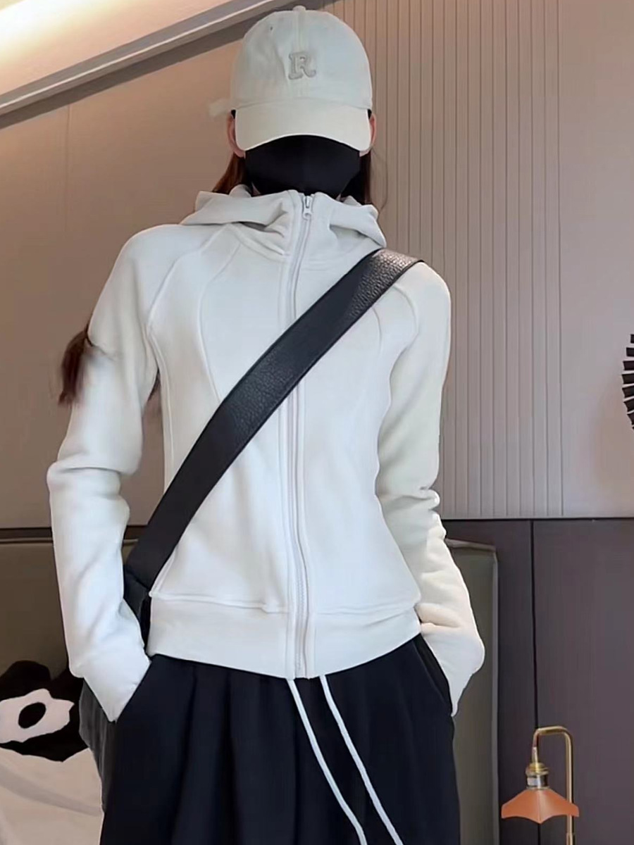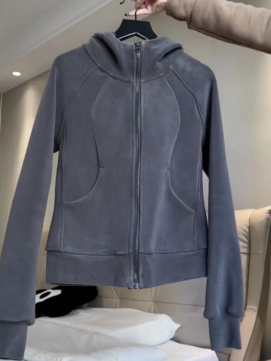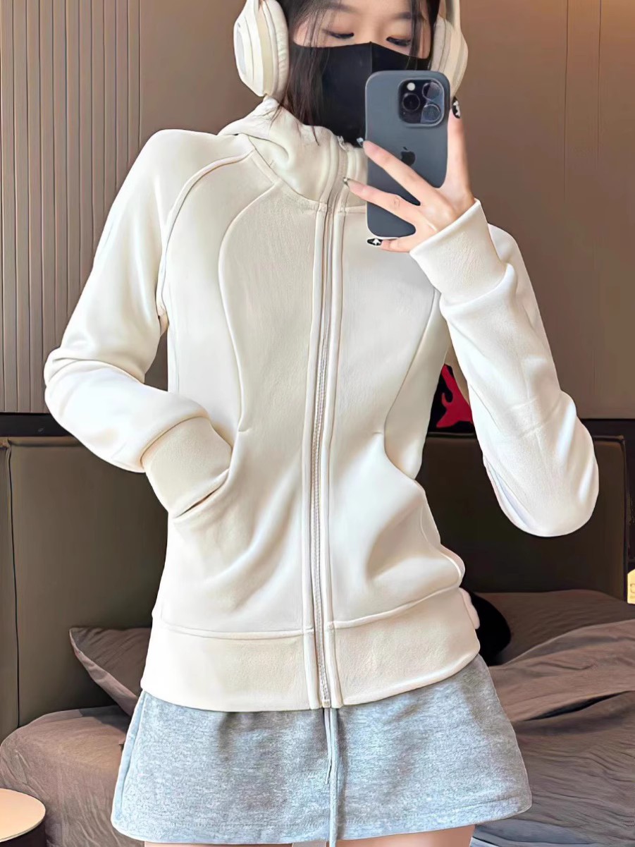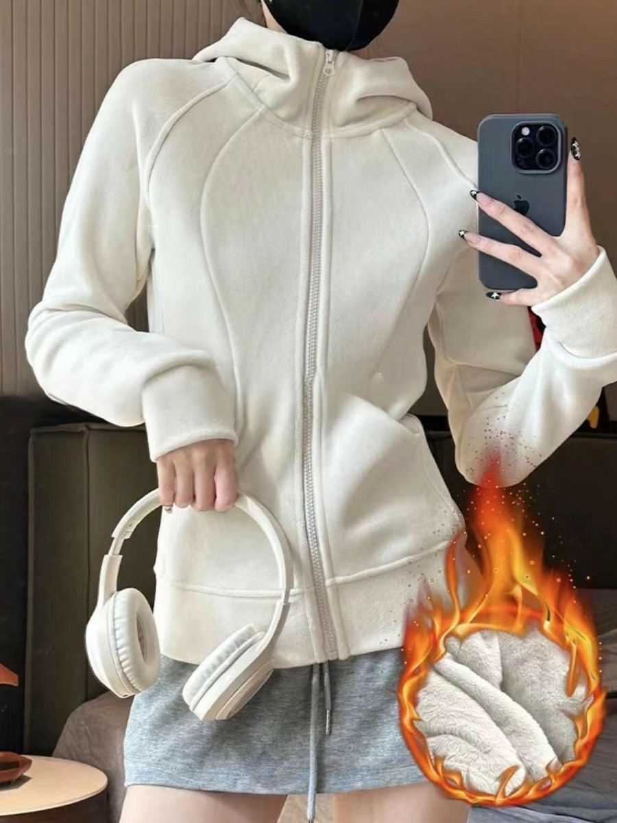 미국 스타일의 간단한 양면 벨벳 두꺼운 스탠드 컷 후드 스웨터 여성의 순수한 뜨거운 소녀 패션 지퍼 어깨 슬리밍 코트 겨울