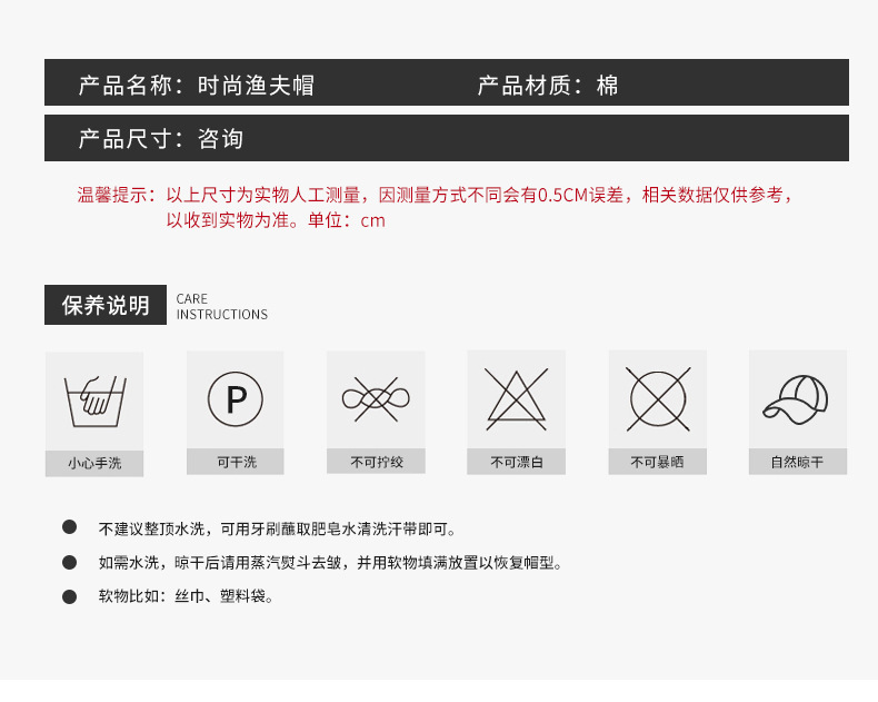 | 产品类别 | 渔夫帽 | 图案 | 印花 |