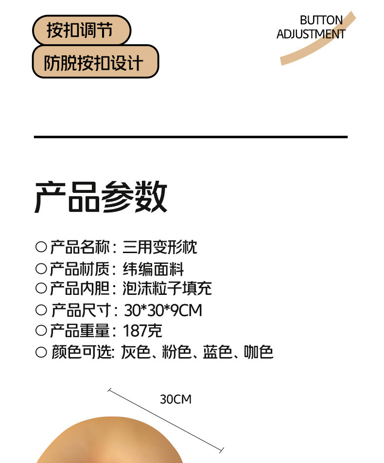 | 填充物 | 泡沫粒子 | 枕芯面料 | 纬编氨纶 |
