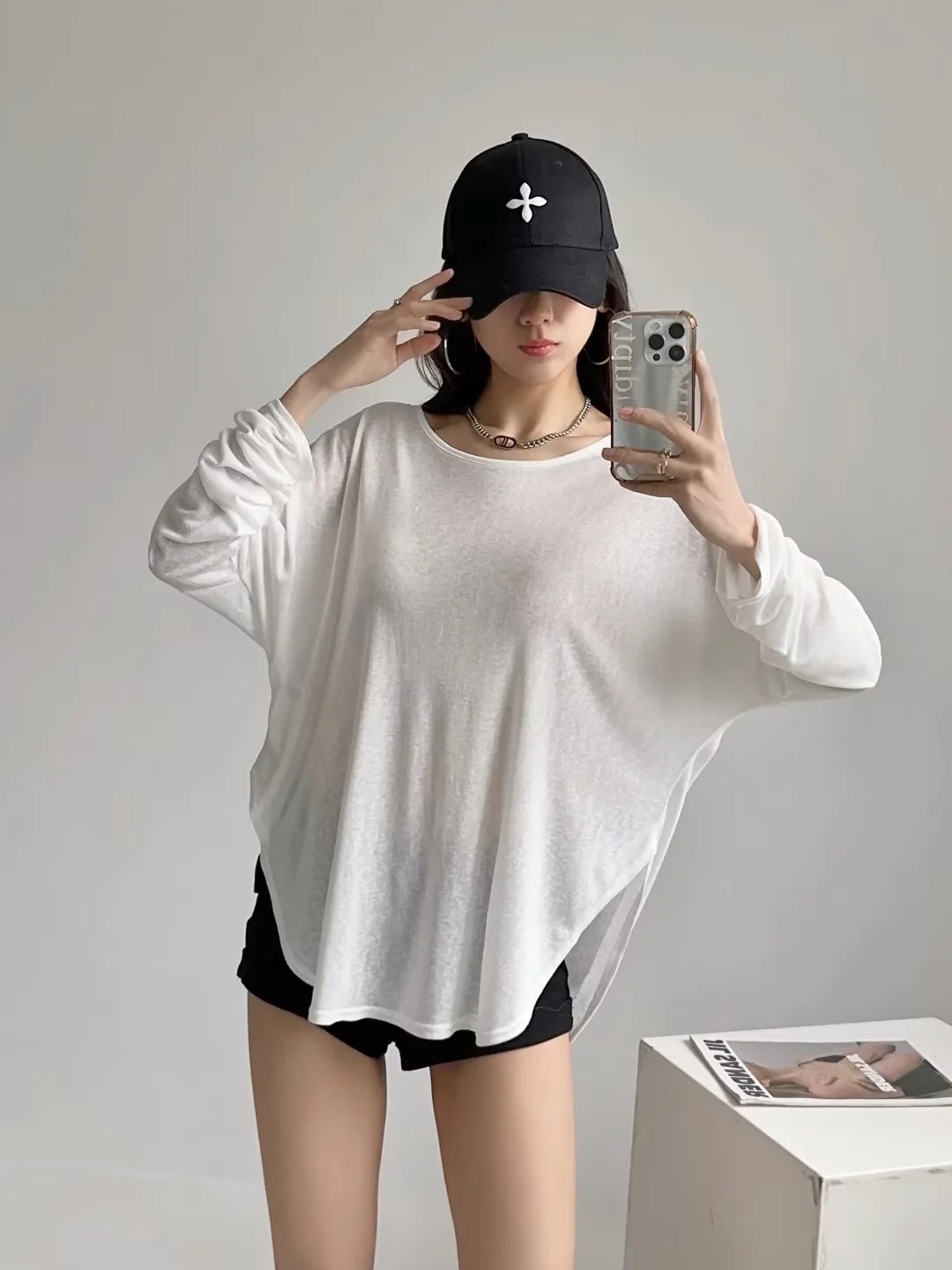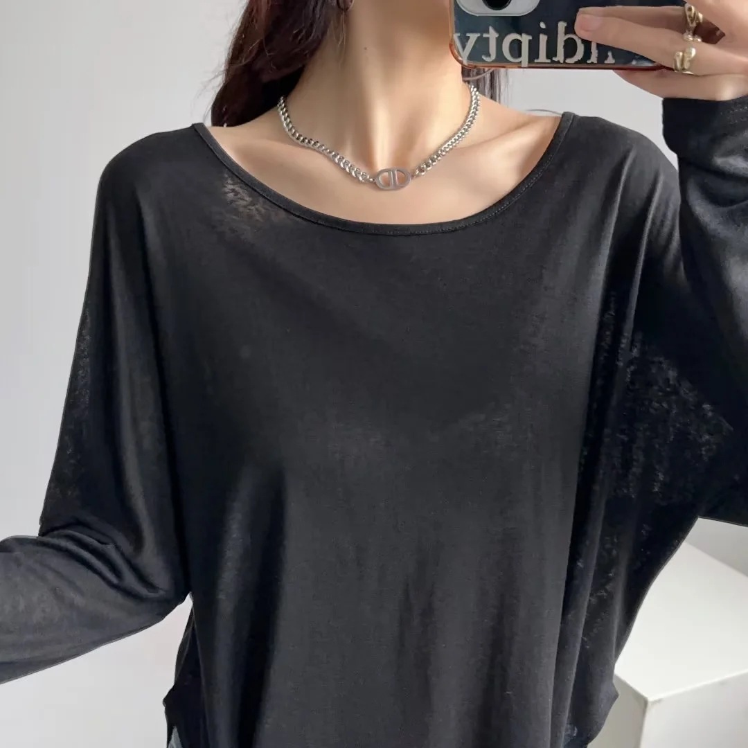 재즈 댄스 느슨한 슬리밍 블라우스 긴팔 티셔츠 게으른 뒤 속이 빈 태양 보호 바닥 셔츠 여성 내부 탑