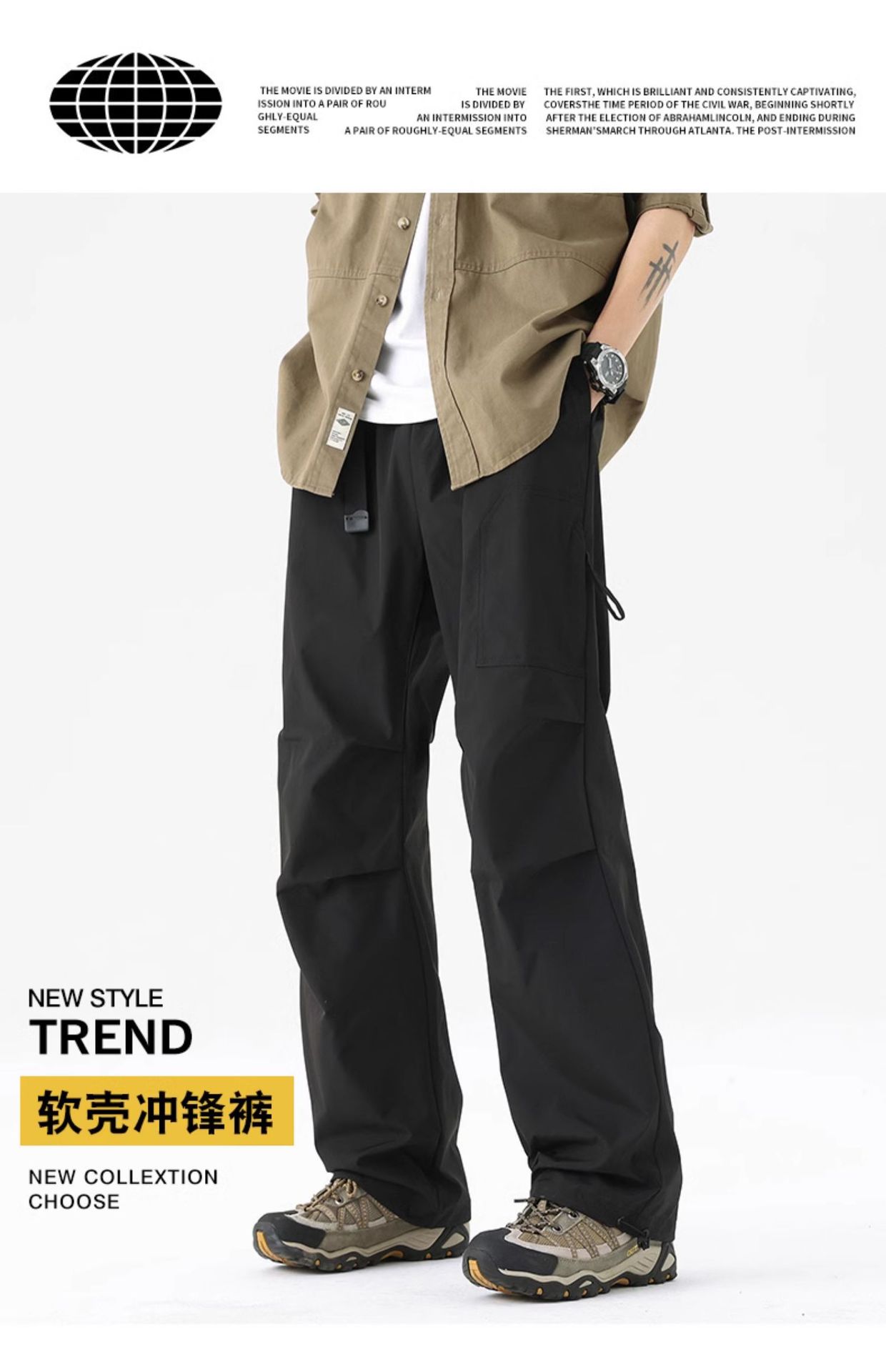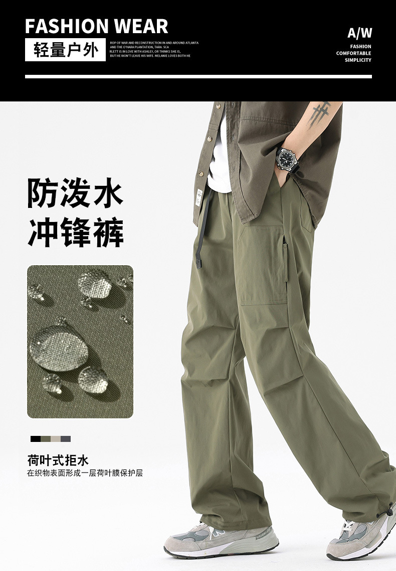 Camel HJCAMEL 방수 공수 작업복 남성 여름 트렌디 브랜드 루즈 스트레이트 드로스트링 커프 캐주얼 바지 트렌디