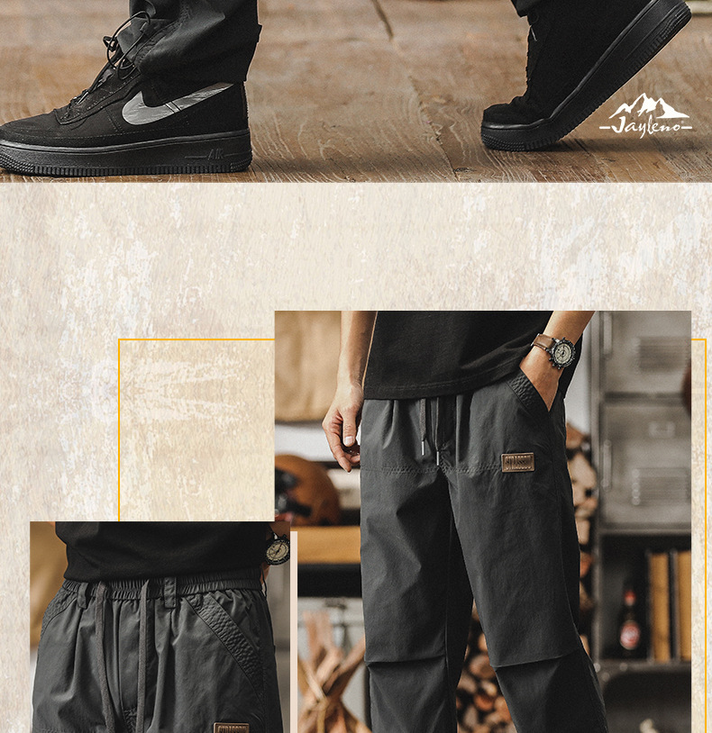 봄과 가을 새로운 캐주얼 바지 남성 유행 브랜드 잘 생긴 느슨한 스트레이트 남성 작업복 얇은 낙하산 병 남성용 바지