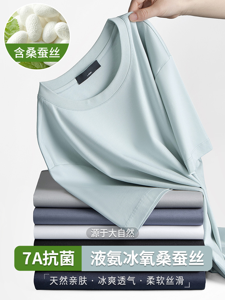 7A 항균! 액체 암모니아 얼음 산소 멀베리 실크 반팔 티셔츠 남성용 얼음 실크 시원한 느낌의 가벼운 럭셔리 남성복! 카운터 품질 티셔츠