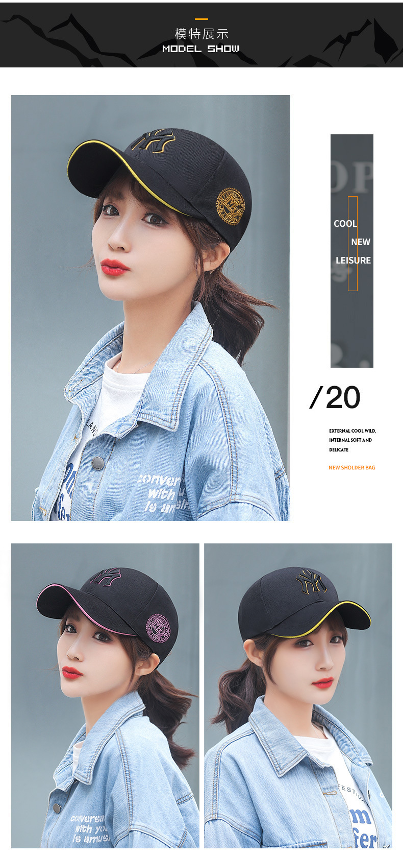 | 帽檐款式 | 弯檐 | 颜色 | 圆形MY白色, 圆形MY粉色, 圆形MY黑色-黄绣, 圆形MY藏蓝色, 圆形MY黑色-白绣, 圆形MY黑色-黑绣, 圆形MY黑色-粉绣, MY白字-黑, MY黑字-黑, MY黄字-黑, MY黑字-白, MY米色, MY粉色, MY黄字-白, 十字白字-黑, 十字红字-黑, 十字白, 十字红色, 三明治大A黑色, 三明治大A白色白夹心, 三明治大A白色黑夹心, 三明治大A粉色, 三明治C黑色, 三明治C白色, 半网三明治C黑色, 半网三明治C白色, 三明治两山峰黑色, 三明治两山峰白色, Amer黑色, Amer白色, Amer米色, Amer藏青, Amer军绿, Amer酒红, Amer咖啡, 小H黑色, 小H白色, 小H米色, 超人S字母黑色-黄锈, 超人S字母藏青, 超人S字母宝蓝, 超人S字母酒红, 超人S字母大红, 超人S字母黑色-白锈, 超人S字母黑色-黑锈, 超人S字母白色, 超人S字母粉色, 1868黑色-黄绣, 1868黑色-粉绣, 1868黑色-黑绣, 1868藏青, 1868白色, 1868酒红, ARNY米色, ARNY藏青, ARNY黑色-白绣, ARNY黑色-红绣, ARNY白色 |
