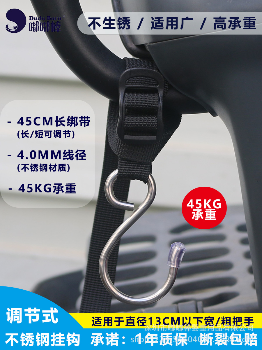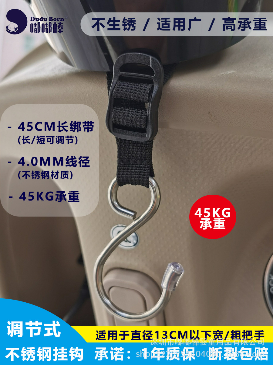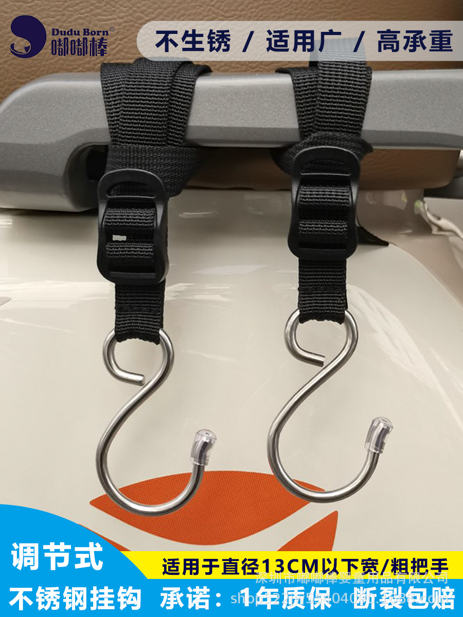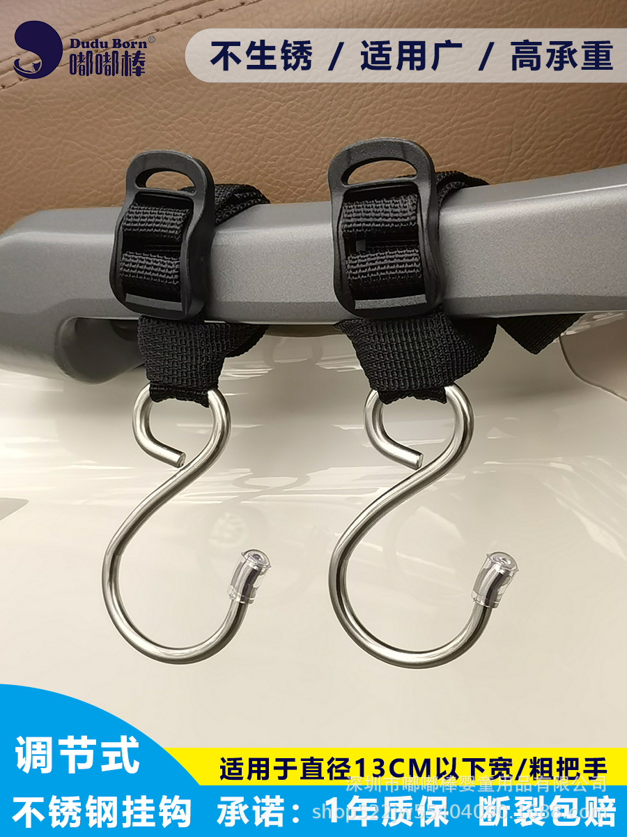 전기차용 후크, 전면 장착형, 다용도 조절 가능 연장 스트랩, 스테인리스, 가정용 유모차 겸용 강력 후크