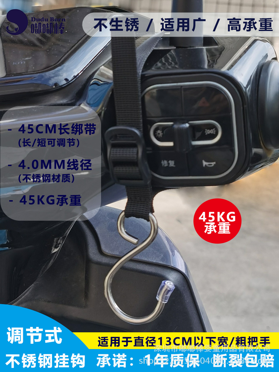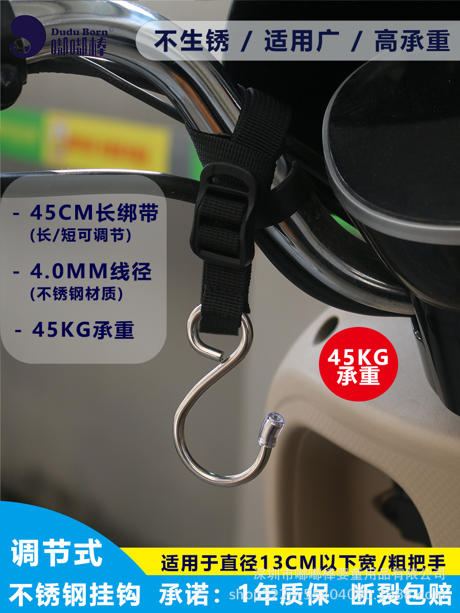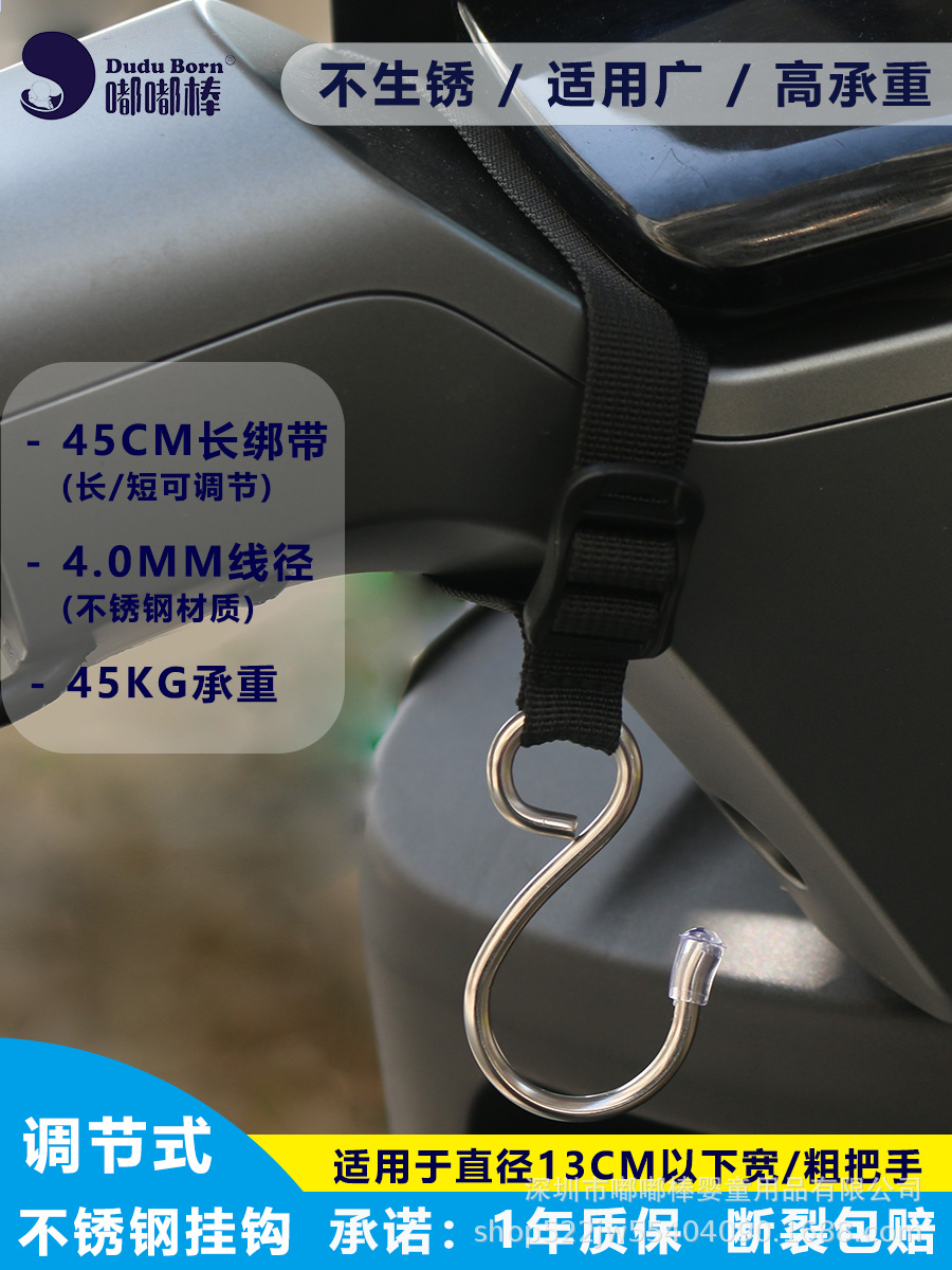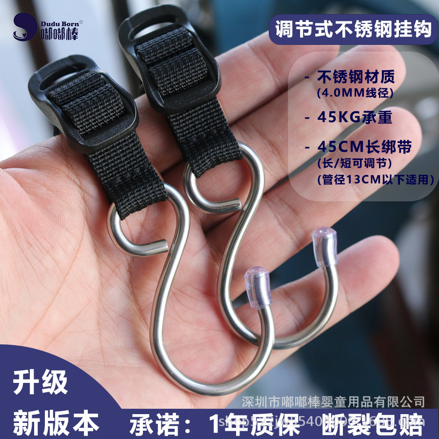 전기차용 후크, 전면 장착형, 다용도 조절 가능 연장 스트랩, 스테인리스, 가정용 유모차 겸용 강력 후크