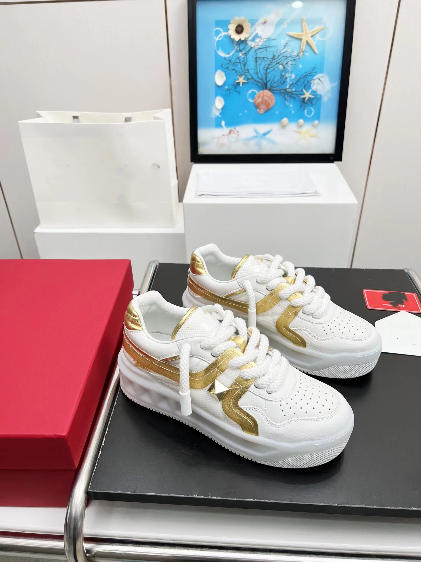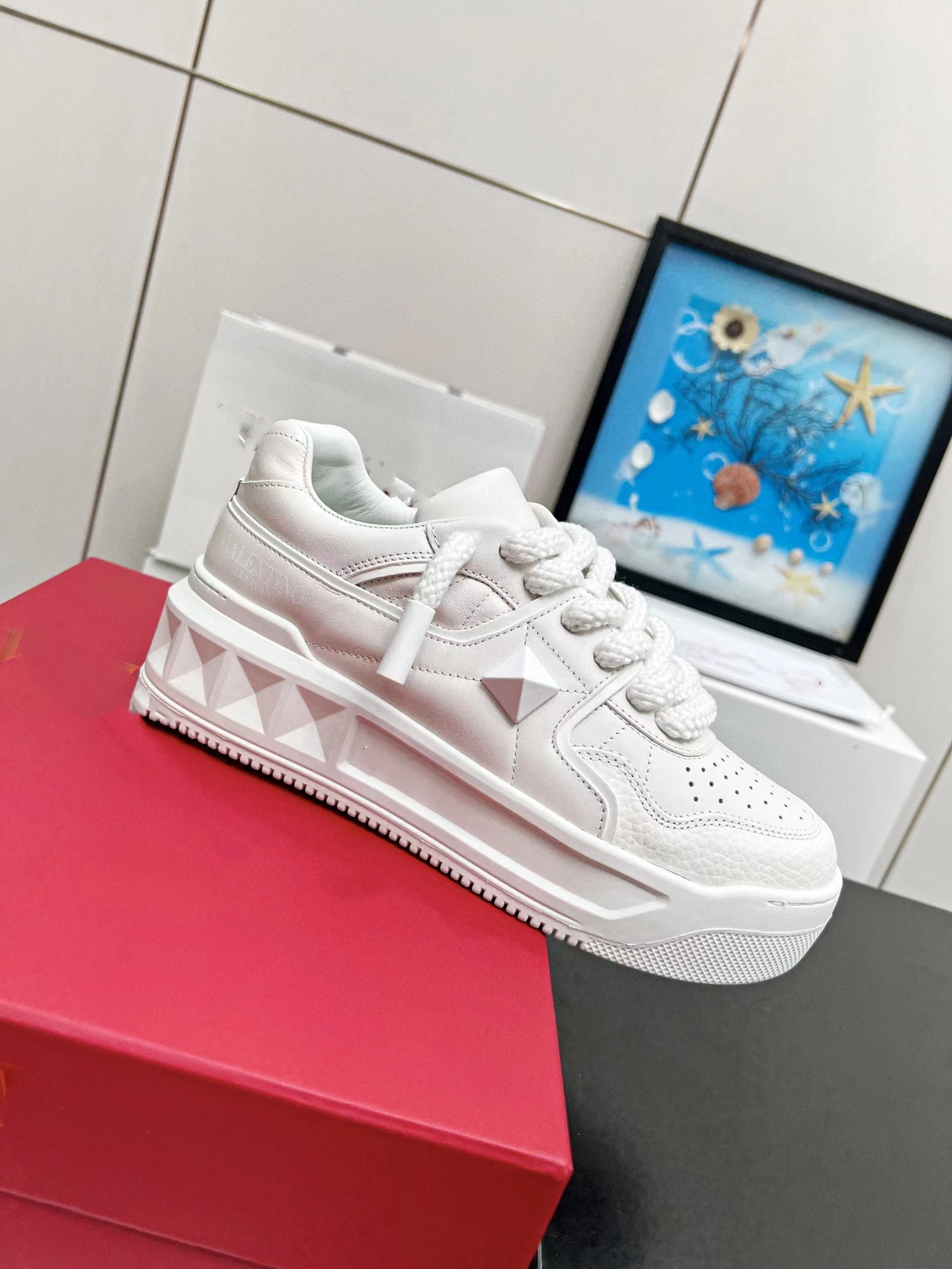 워렌 V 패밀리 리벳 장식 1등급 소가죽 화이트 슈즈, 두꺼운 밑창, 키높이, 캐주얼, 다용도, 커플 모델