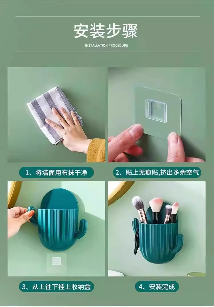 화장실 아티팩트 빗 선드리 선인장 저장 상자 벽걸이 형 박스 도구 저장 랙 벽 구멍이없는 랙