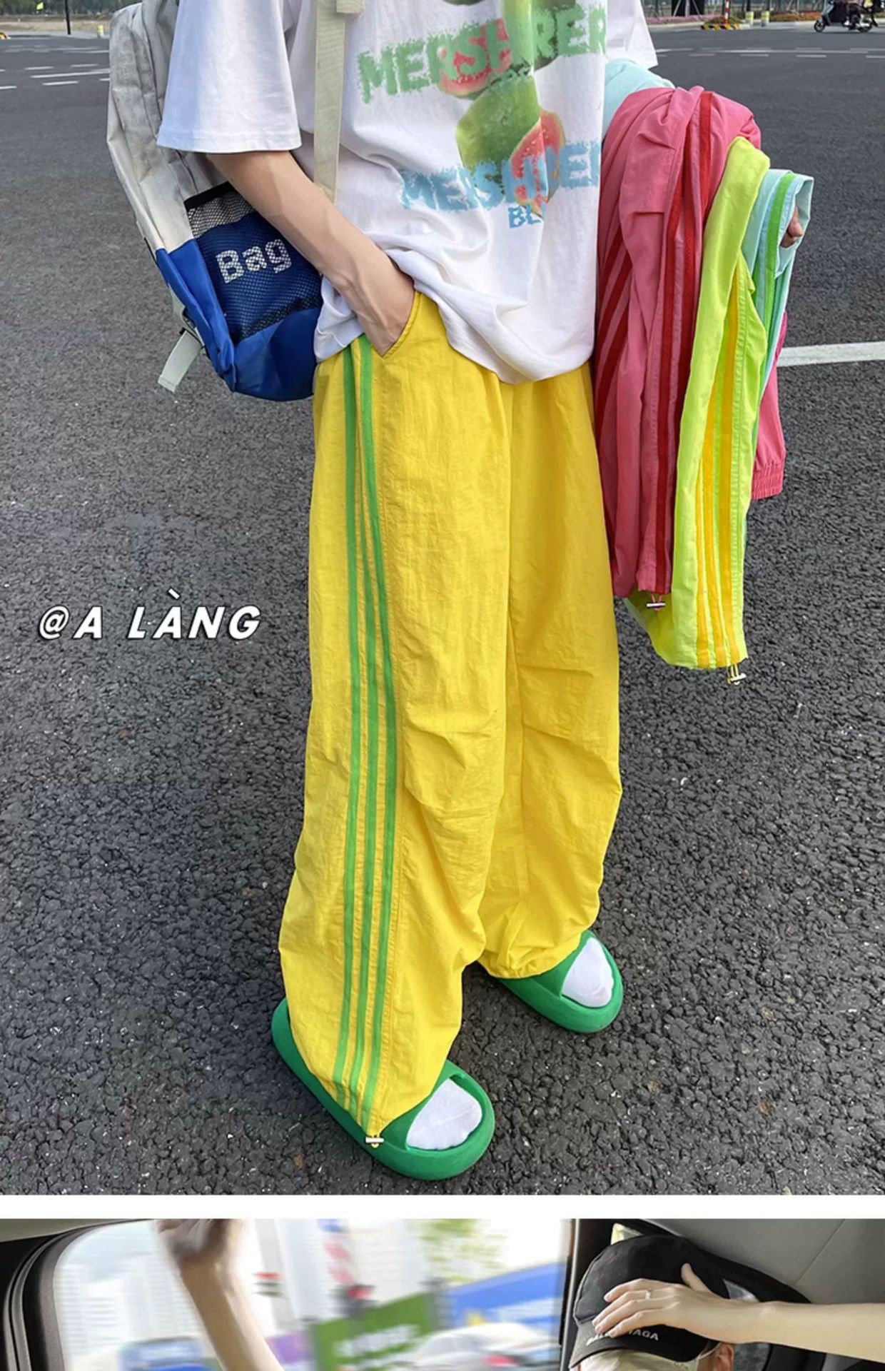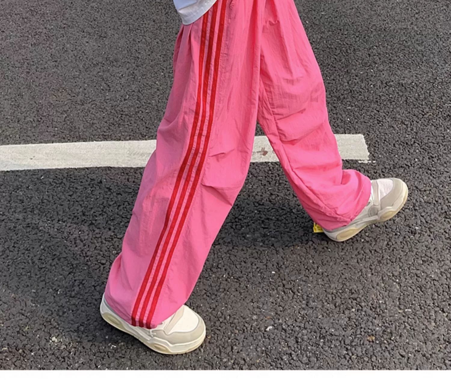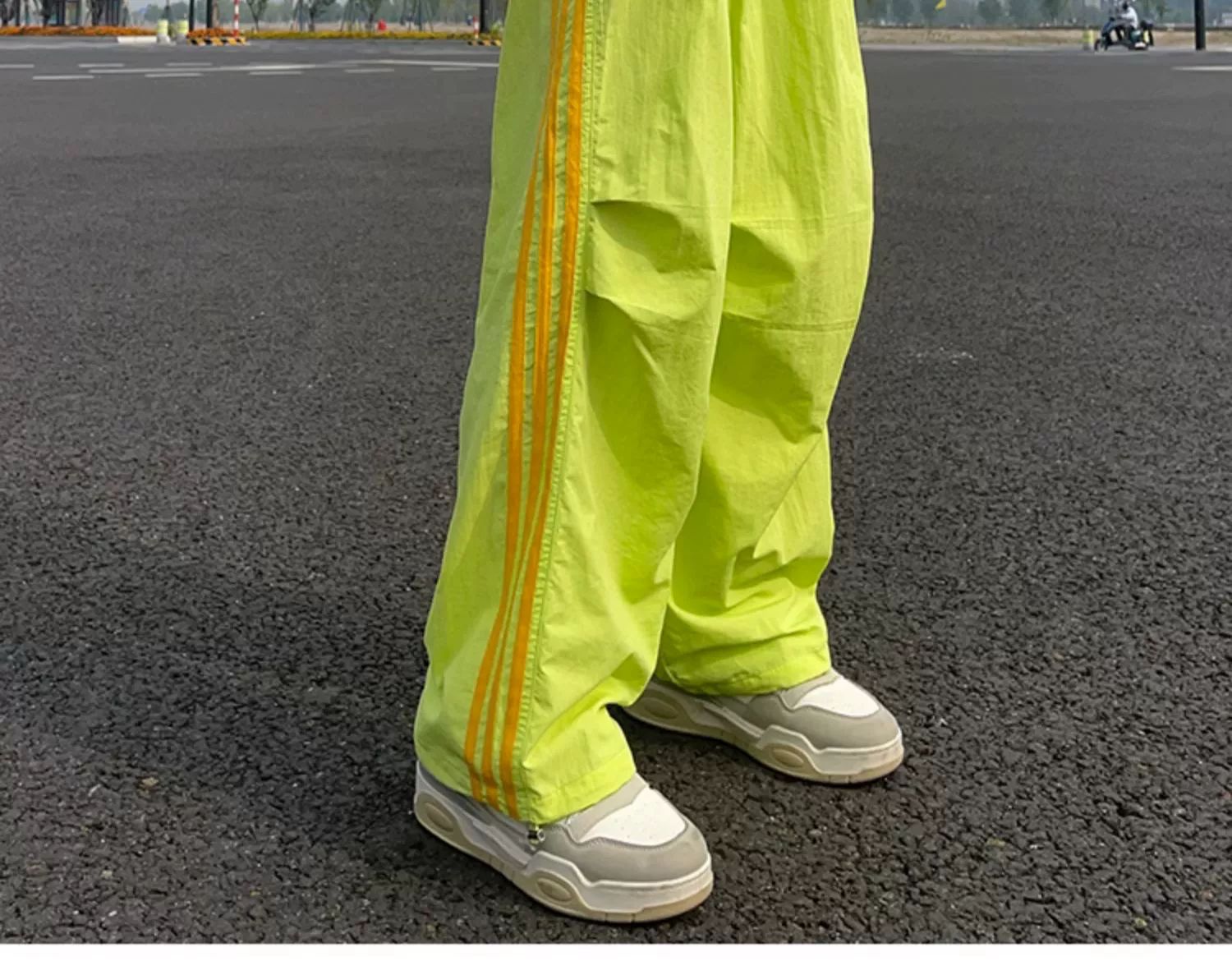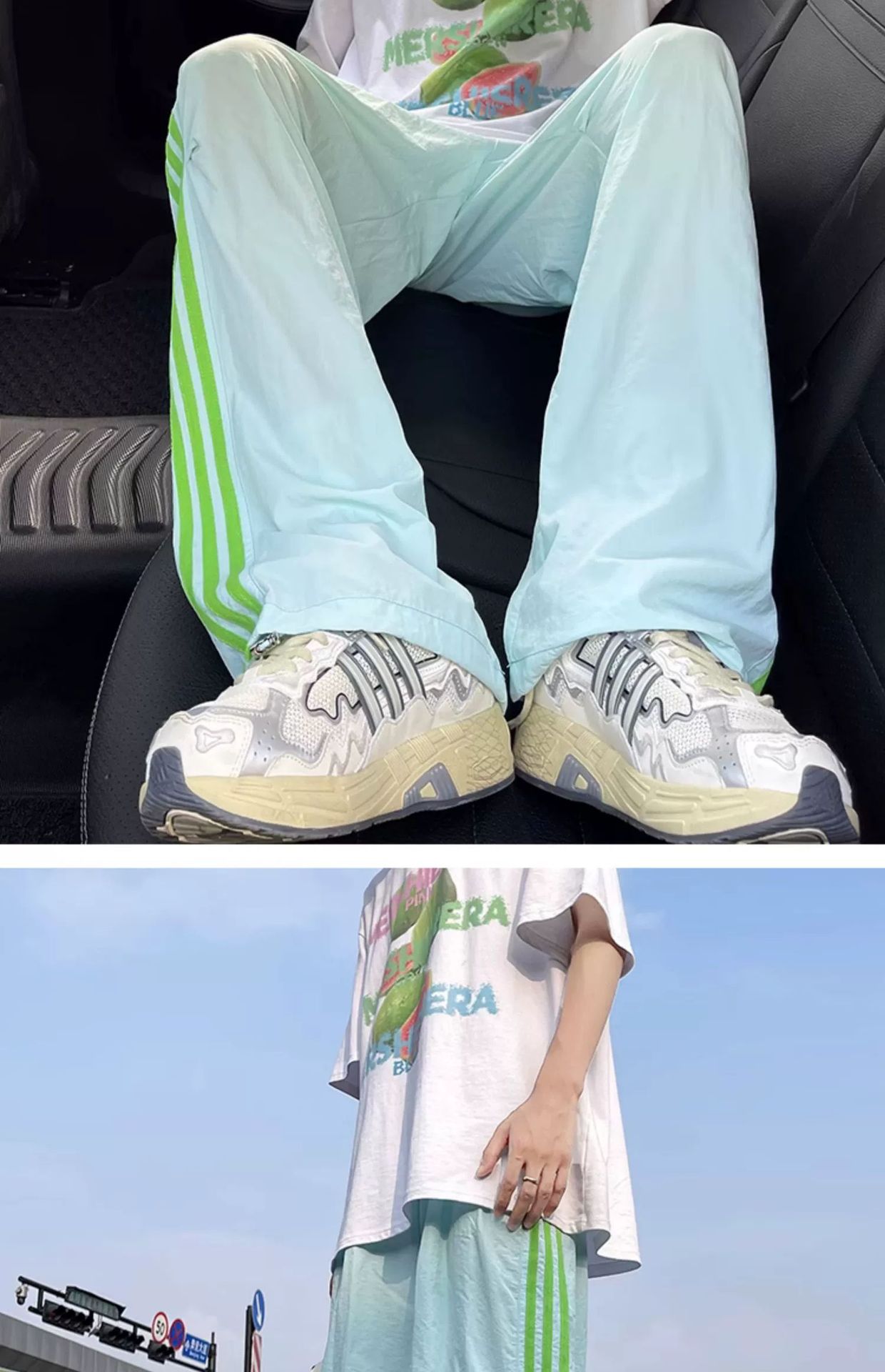 도파민 컬러 착용 낙하산 바지 남성 여름 얇은 아이스 실크 바지 미국식 사이드 스트라이프 빠른 건조 바지
