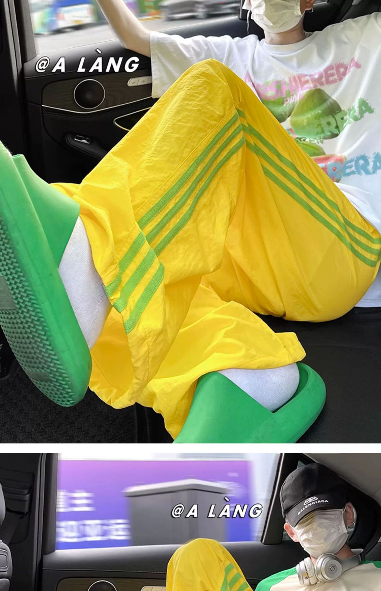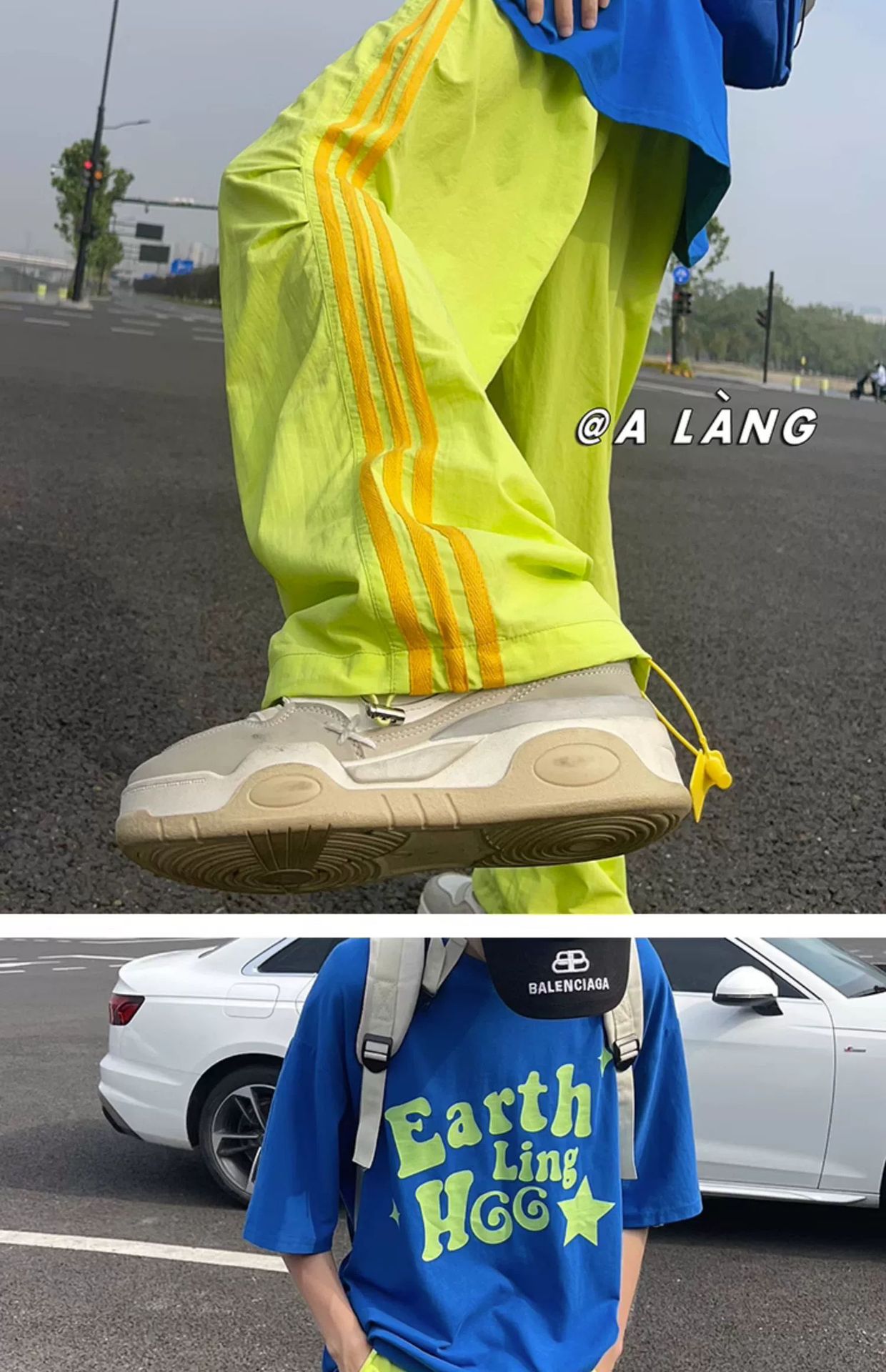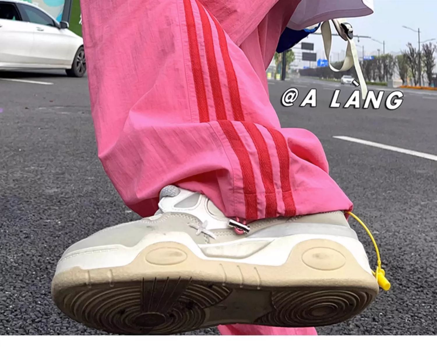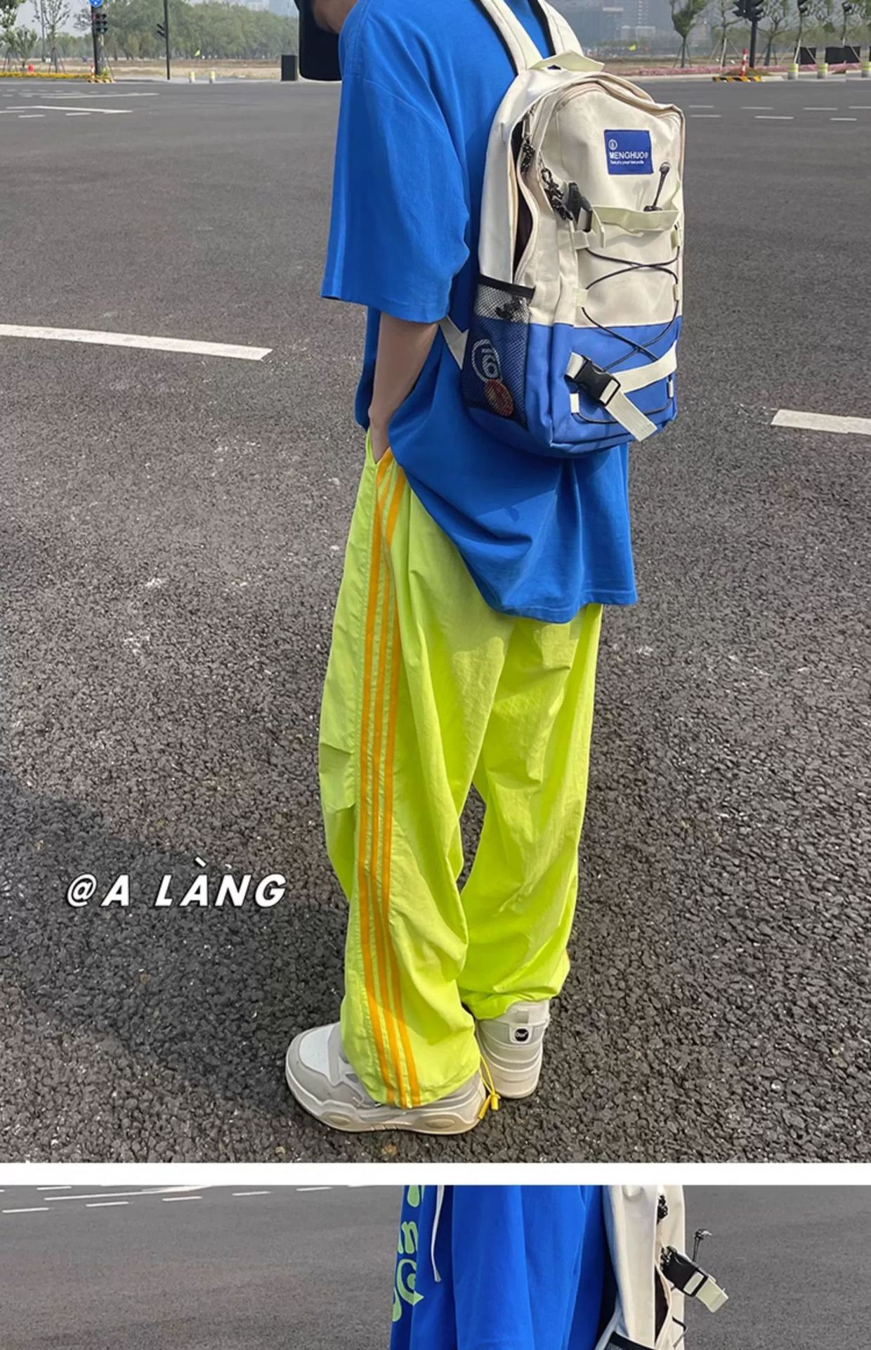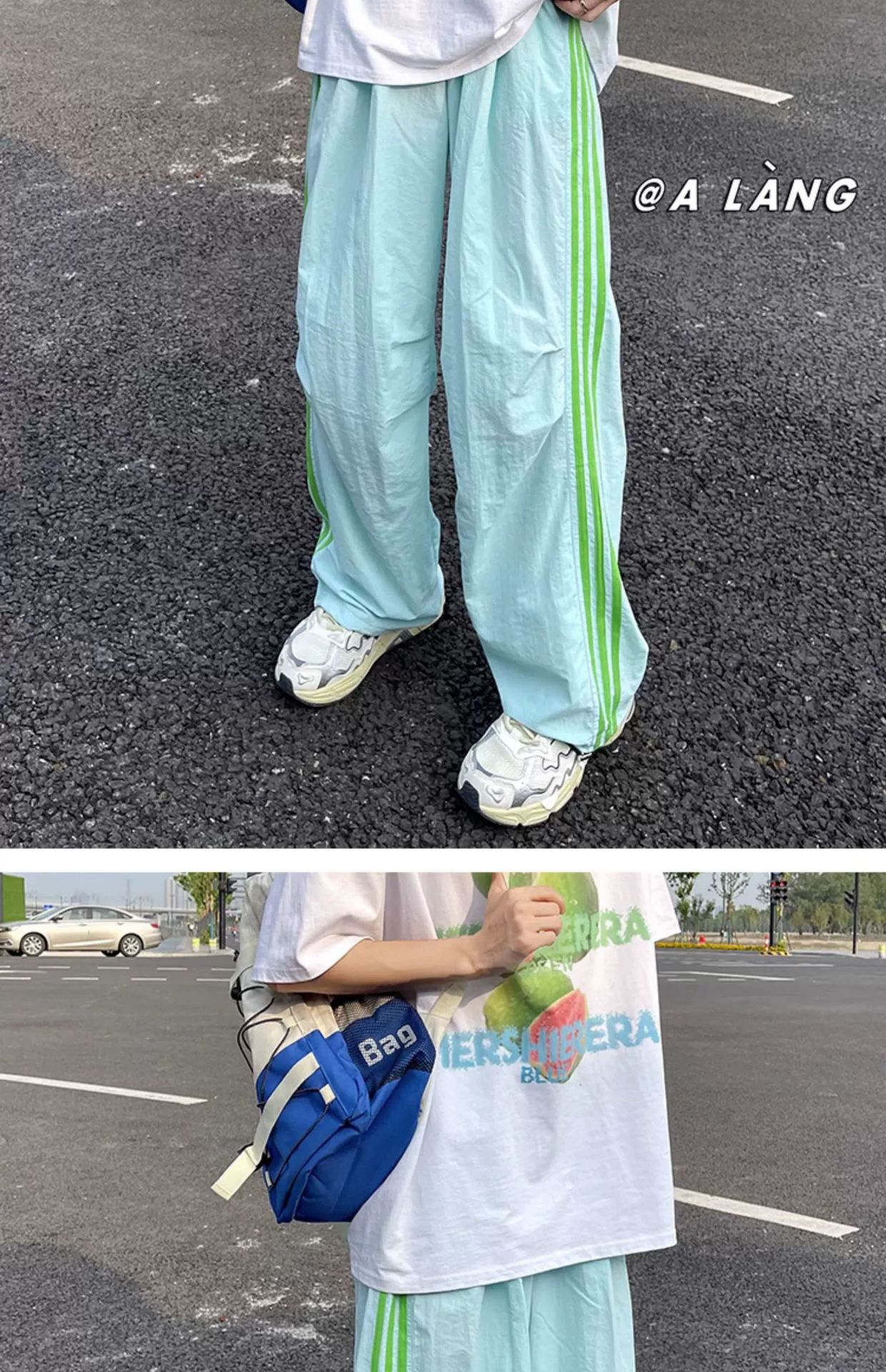 도파민 컬러 착용 낙하산 바지 남성 여름 얇은 아이스 실크 바지 미국식 사이드 스트라이프 빠른 건조 바지