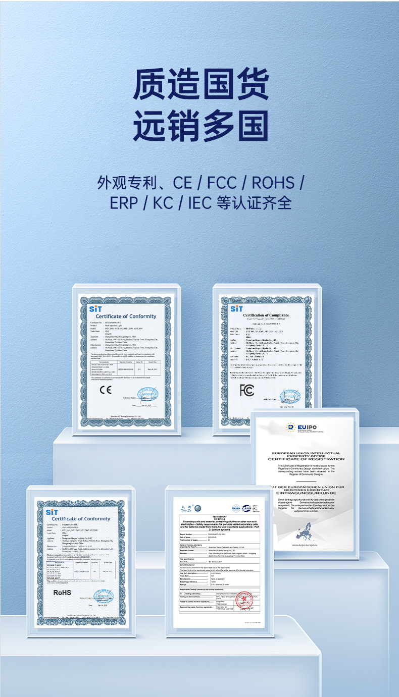 | 认证 | 欧盟ce认证 | 附加功能 | 感应灯, 磁吸, 可充电, 人体感应, 无极调光, 亮度调节, 调色温 |