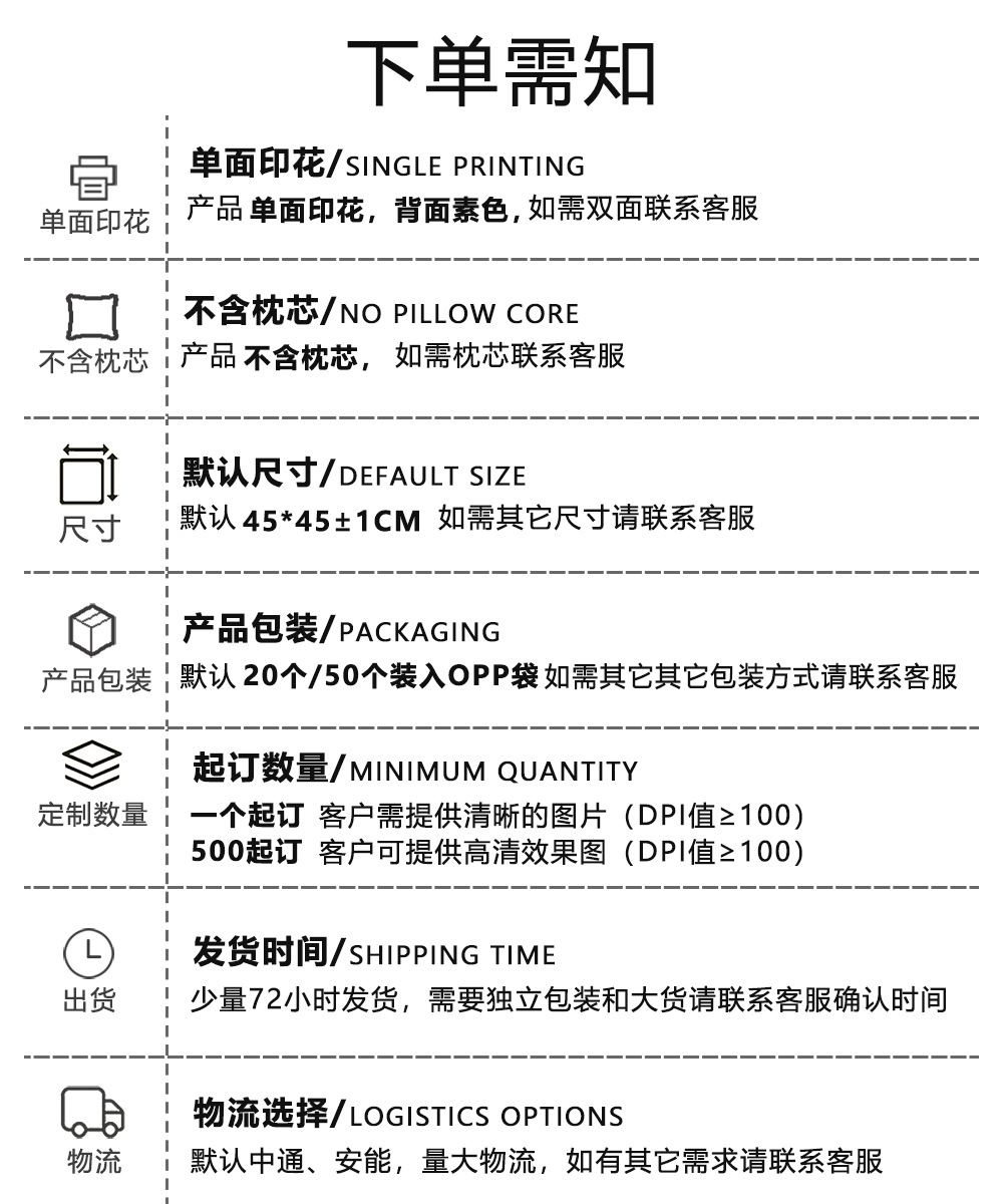 | 颜色 | QUEEN 白, KING 白, QUEEN 黑, KING 黑, YTJ105 白, YTJ105 黑, YTJ294 白, YTJ294 黑, YTJ337 白, YTJ337 黑, YTJ360 白, YTJ360 黑 | 尺寸 | 45*45cm枕套(无枕芯) |