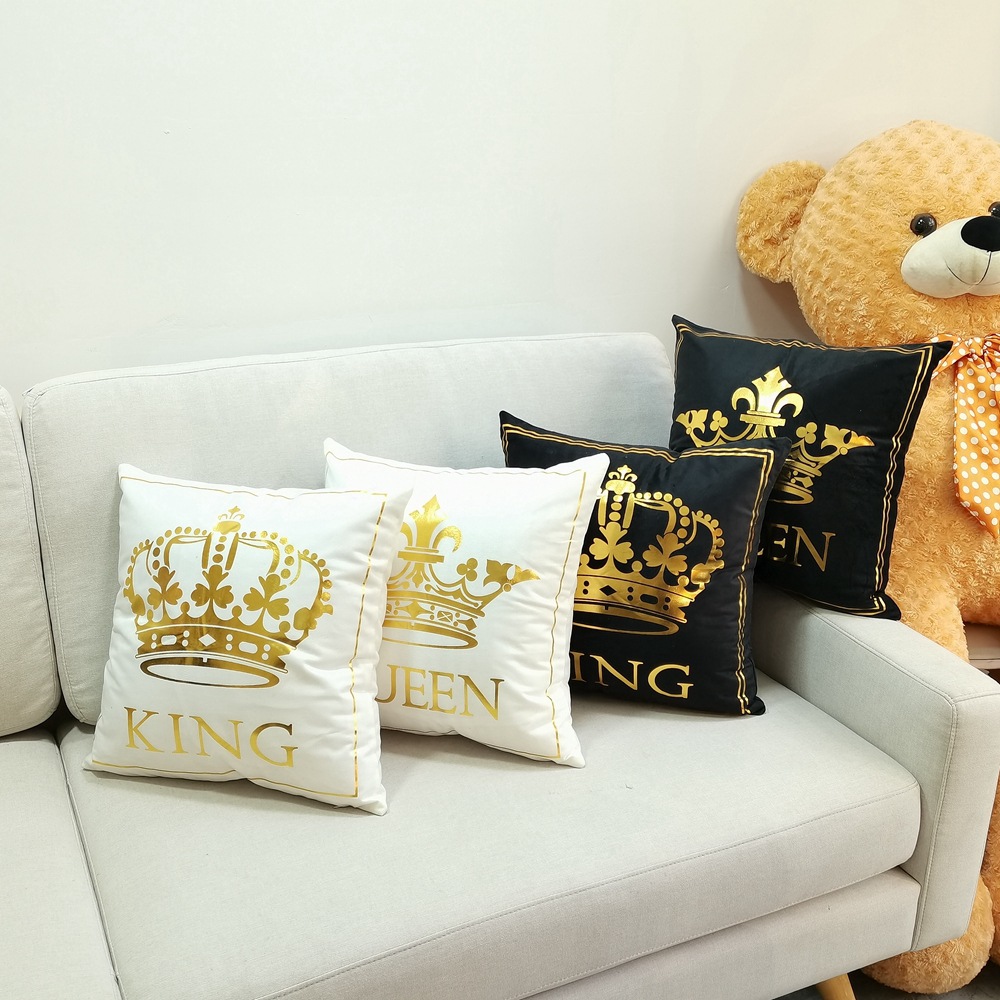 새로운 금박 베개 커버 QUEEN+KING 금박 쿠션 커버 나뭇잎 무늬 금색 프린트 쿠션 커버