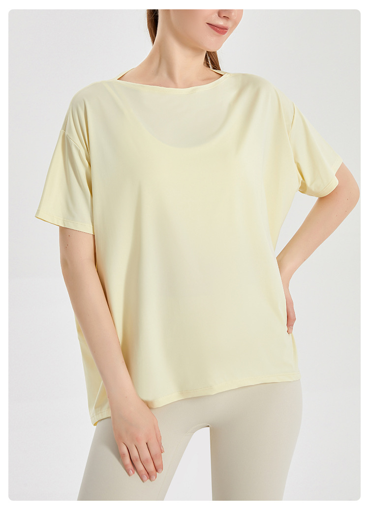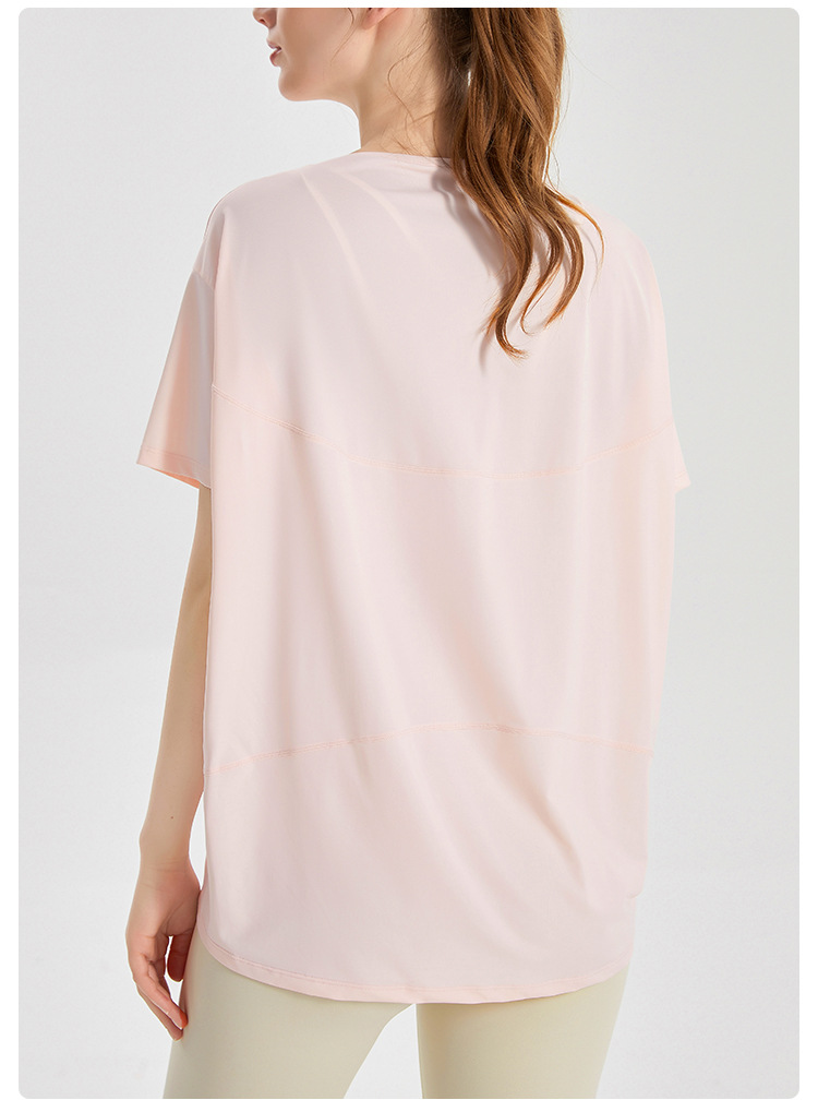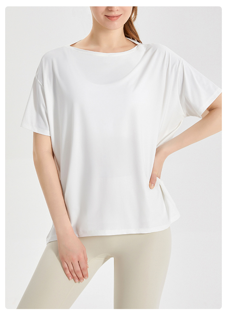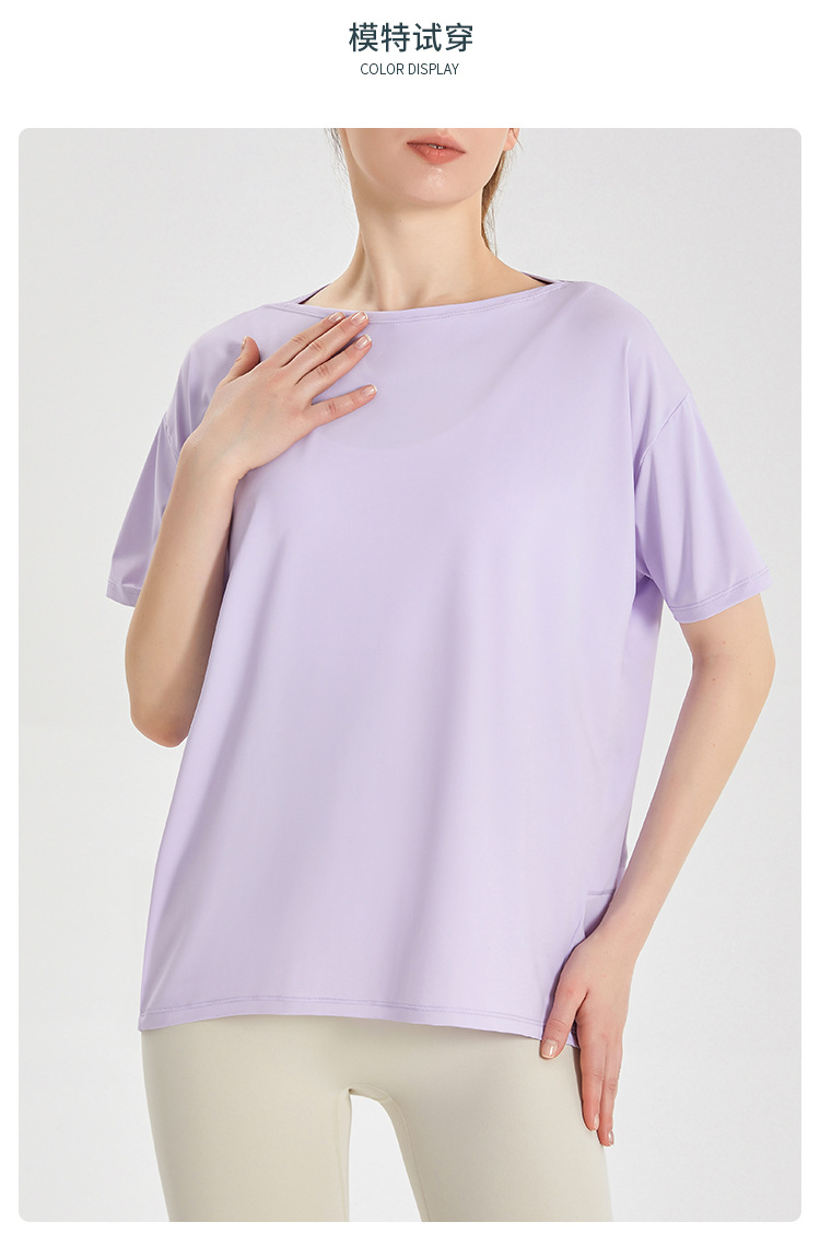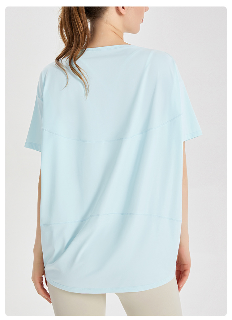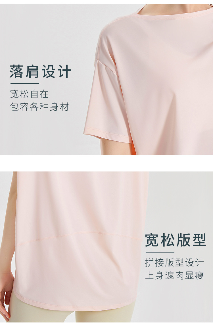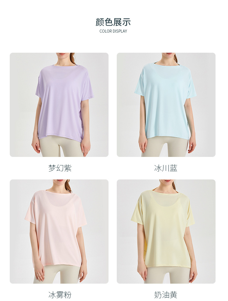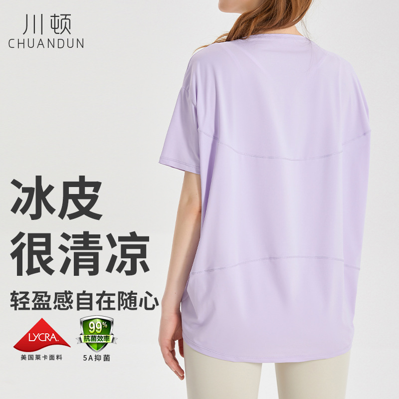Chuandun 빠른 건조 의류 여성용 반팔 스포츠 느슨한 통기성 블라우스 아이스 실크 쿨 느낌 선스크린 박테리아 반팔 요가 옷