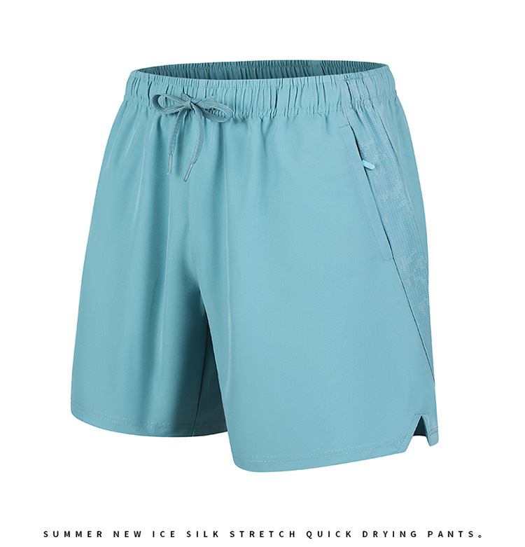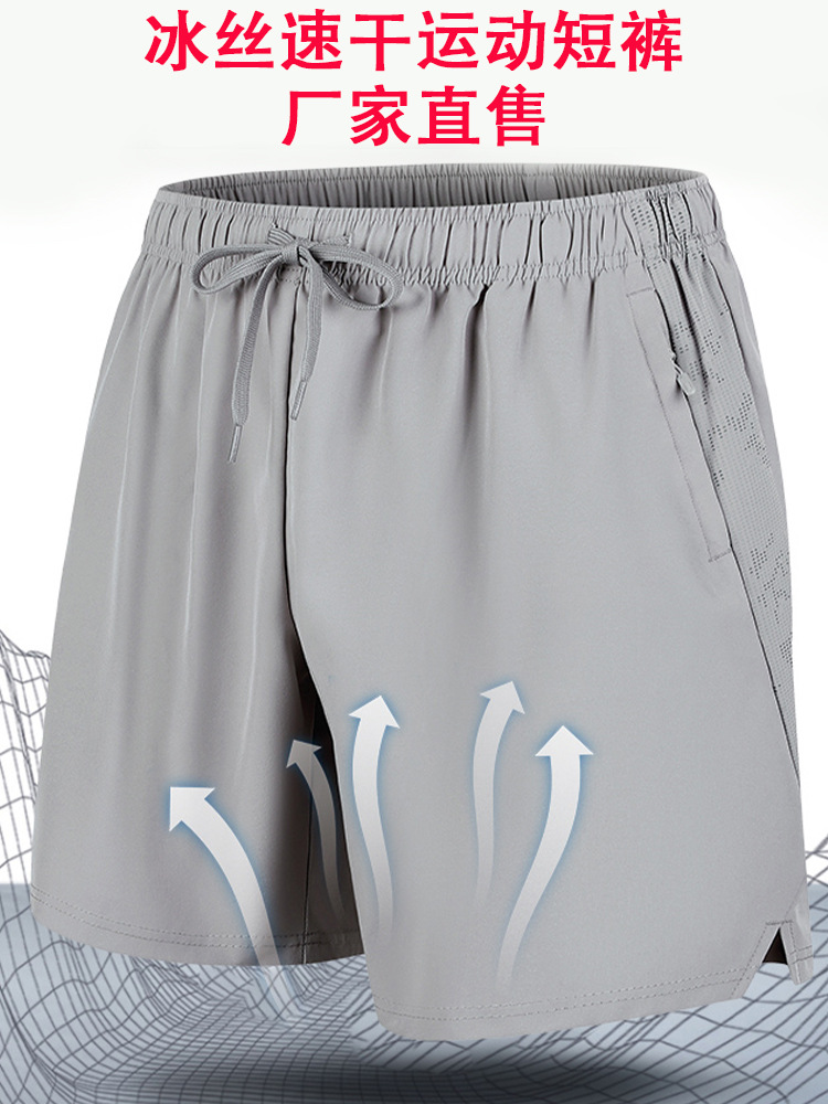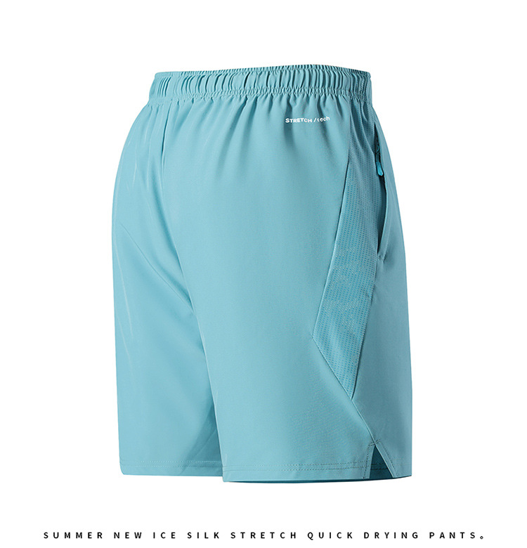 하프 바지 남자 통기성 유행 농구 여름 얇은 탄성 포켓 러닝 스포츠 느슨한 빠른 건조 아이스 실크 반바지