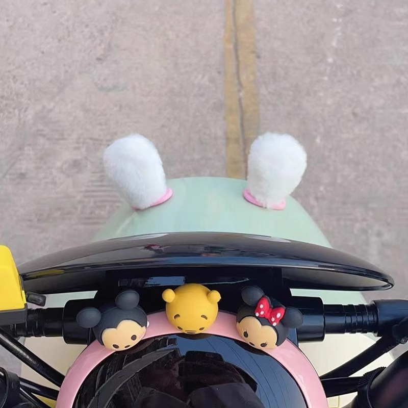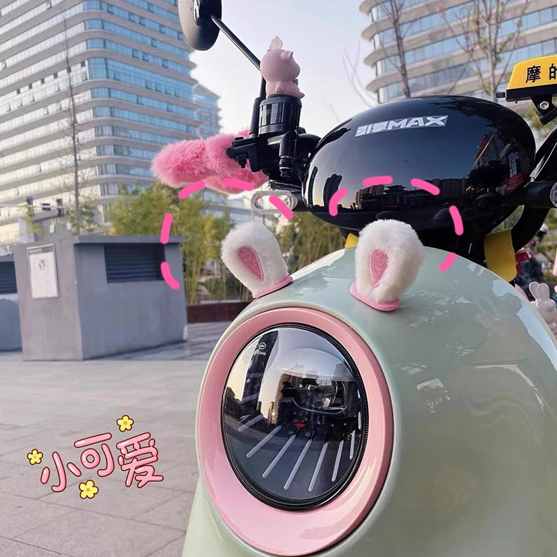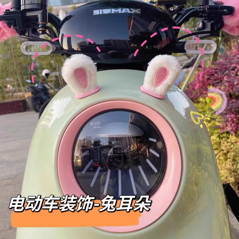 전기 자동차 백미러 장식 배터리 자동차 개조 작은 액세서리 봉제 토끼 귀 엠마 야디 유니버설