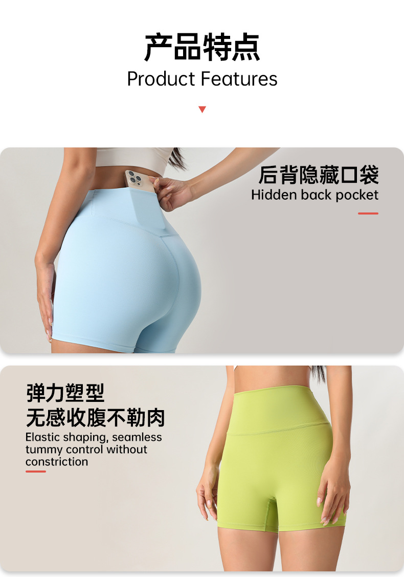 Fuyao 누드 요가 3점 바지, 당황스러운 라인이 없는 새로운 엉덩이 리프팅 라인 요가복, 여성 여름 스포츠 사이클링 피트니스 바지