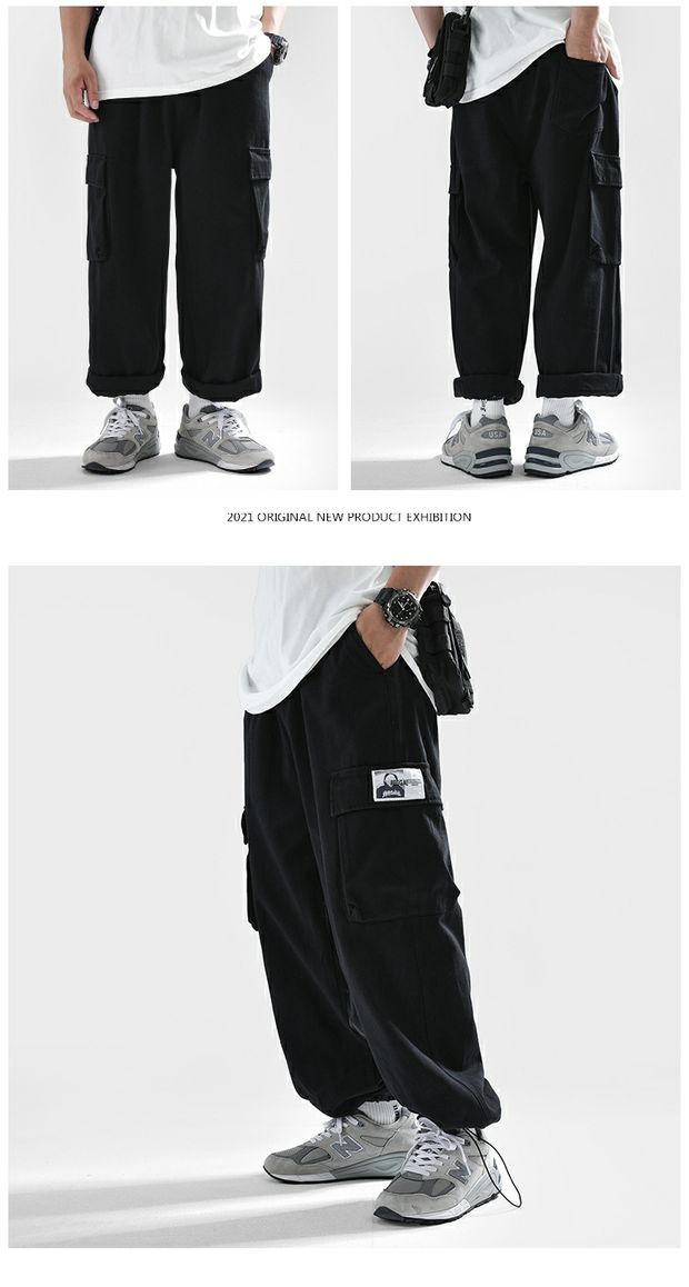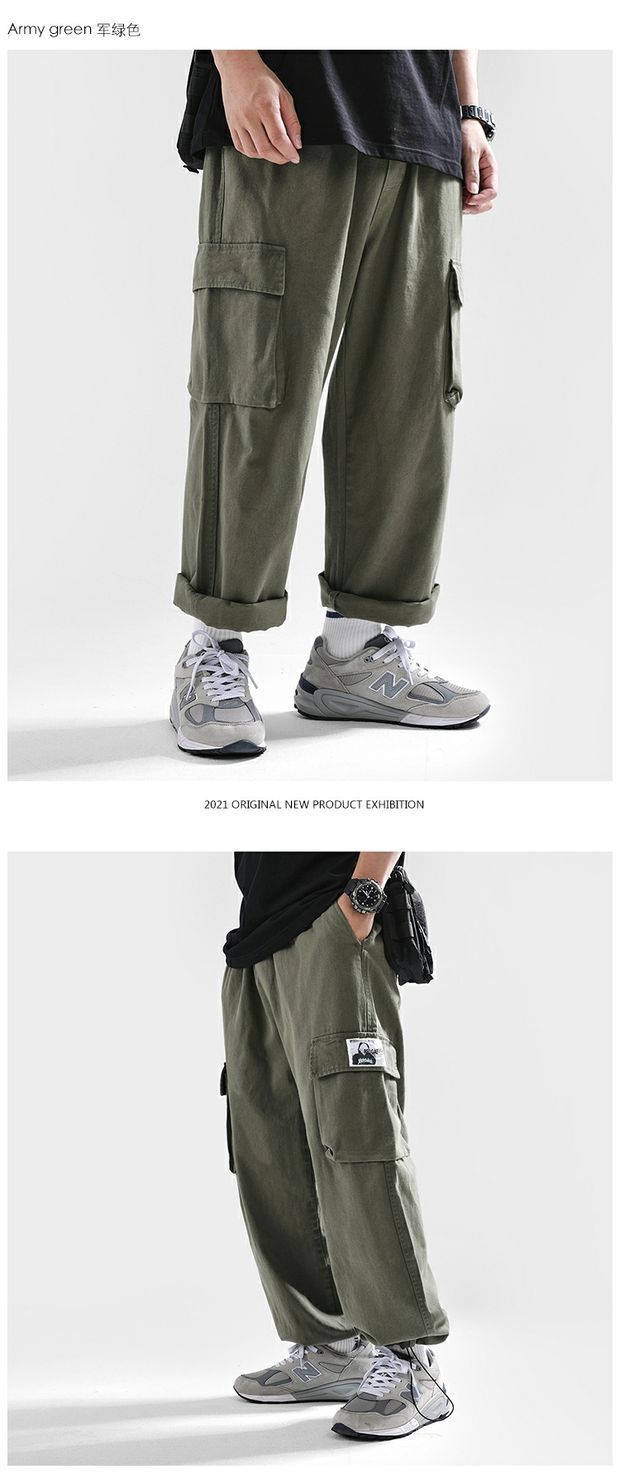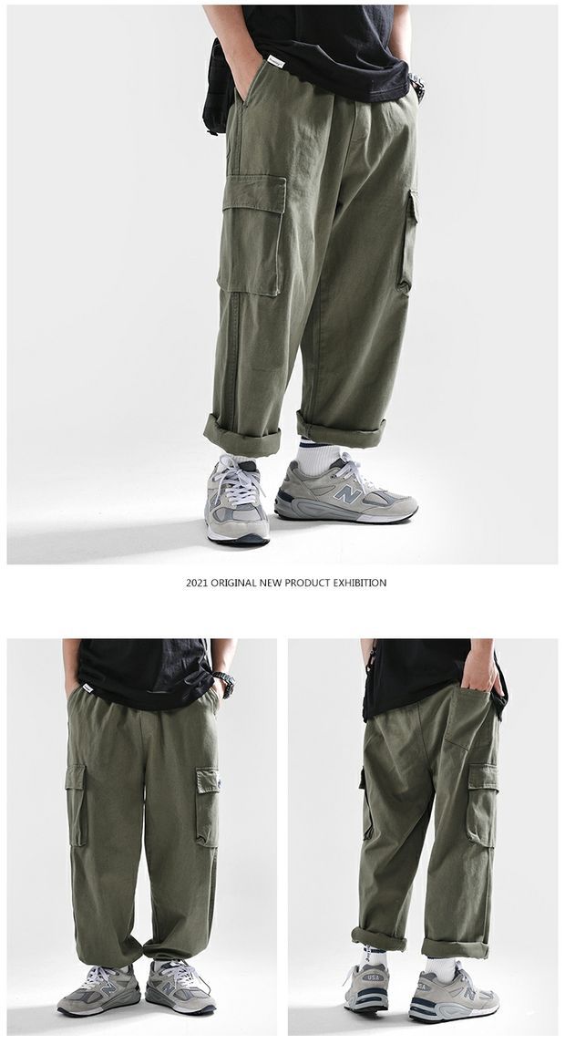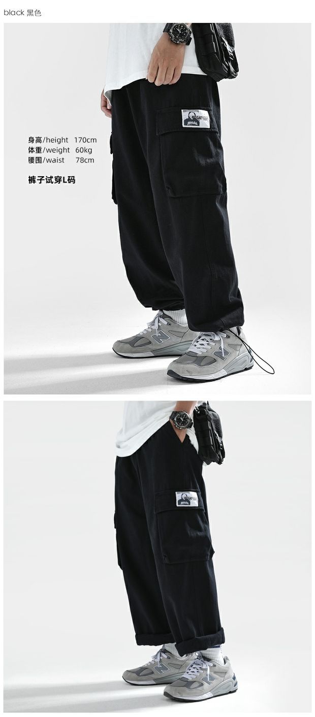 일본식 유행 캐주얼 툴링 바지 남성용 봄과 가을 지방 플러스 대형 멀티 포켓 느슨한 끈 바지