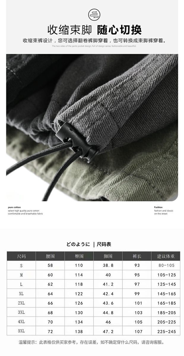 | 尺码 | M, L, XL, 2XL, 3XL, 4XL, 5XL | 类别 | 工装休闲裤 |