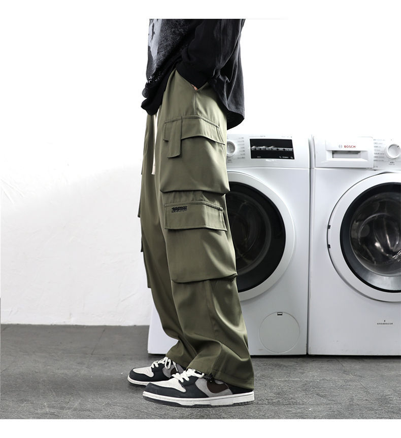 봄과 가을 작업복 남성 트렌디 한 브랜드 느슨한 넓은 다리 캐주얼 바지 스트레이트 배럴 지방 플러스 대형 바지 남성용 트렌디