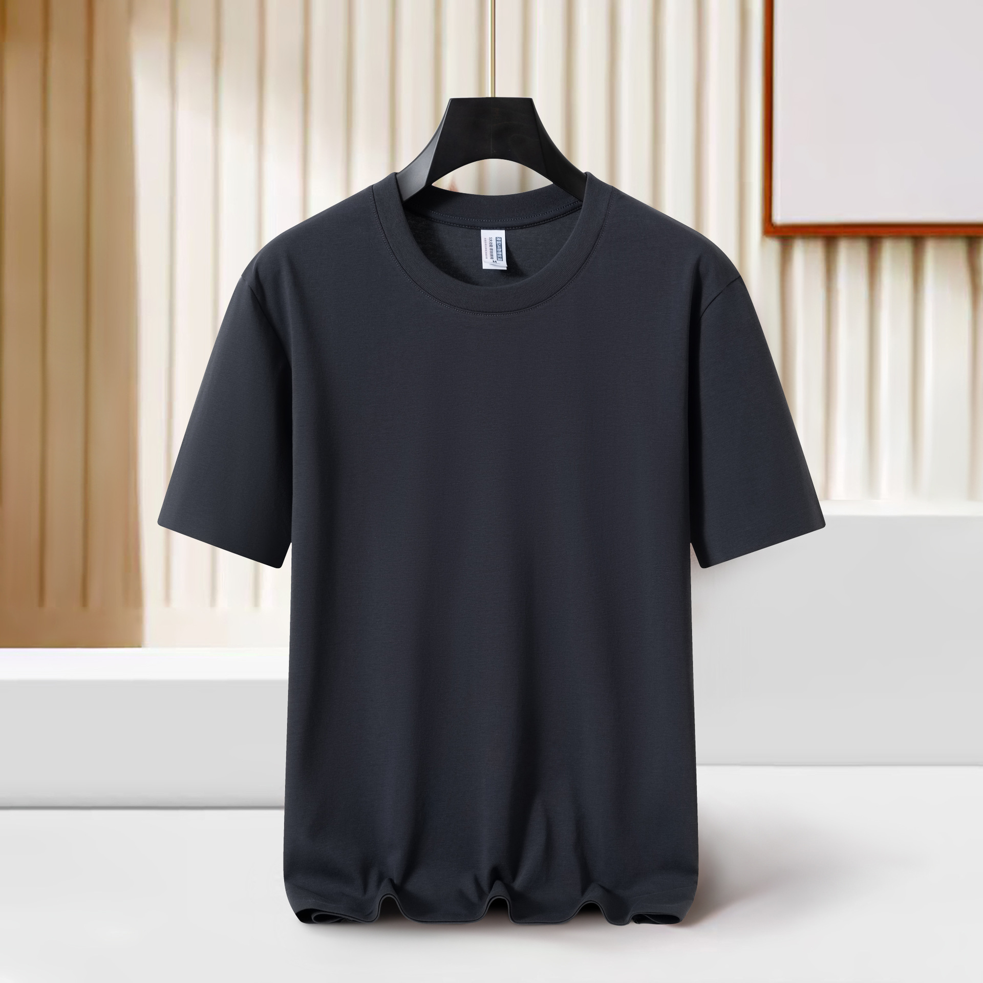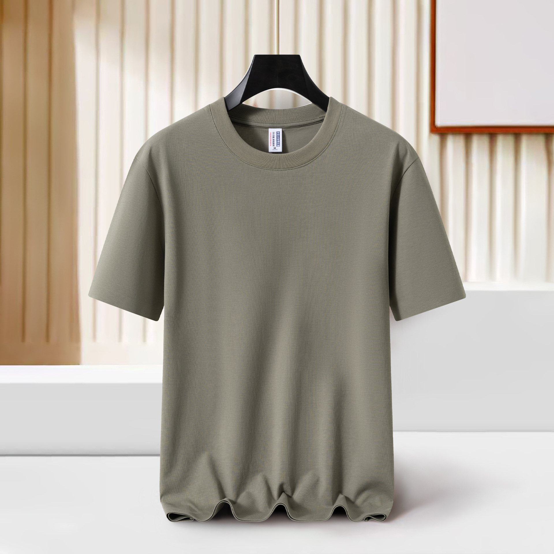 새로운 얼음 액체 암모니아면 티셔츠 210g 원활한 압력 접착제 신기술 어깨 남성 캐주얼 빈 느슨한 짧은 소매