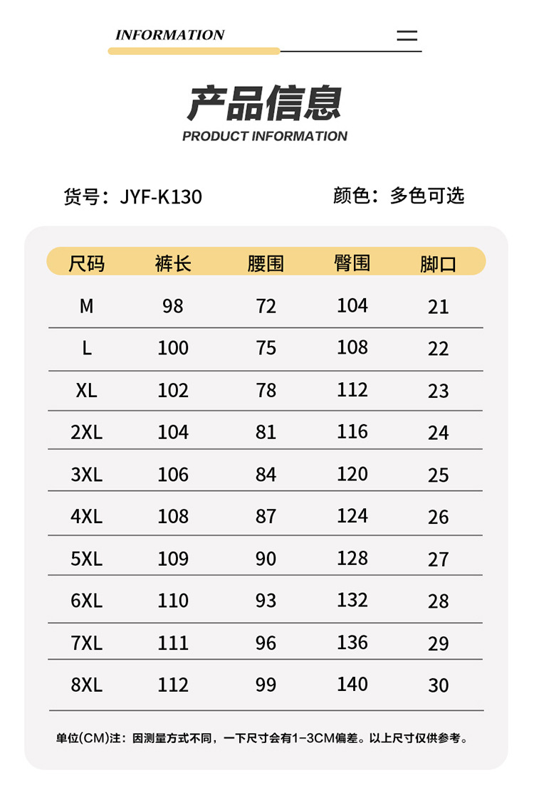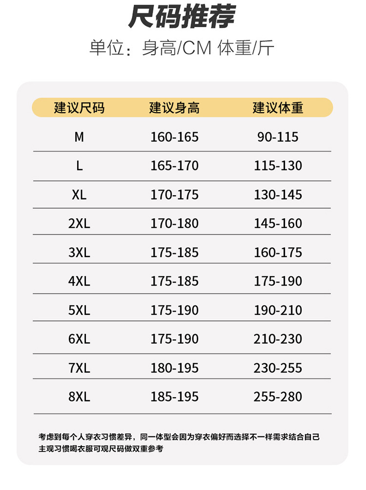 | 颜色 | K130黑色, K130蓝色, K130黑色加绒, H90黑色, H90蓝色, 【冰丝款】H91黑色, 【冰丝款】H91蓝色, 【冰丝款】H12黑色, 【冰丝款】H12蓝色 | 尺码 | M 【推荐90—115斤】, L 【推荐115—130斤】, XL 【推荐130—145斤】, 2XL 【推荐145—160斤】, 3XL 【推荐160—175斤】, 4XL 【推荐175—200斤】, 5XL 【推荐200—215斤】, 6XL 【推荐215—245斤】, 7XL 【推荐245—265斤】, 8XL 【推荐265—285斤】 |