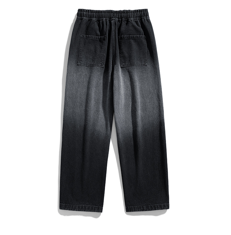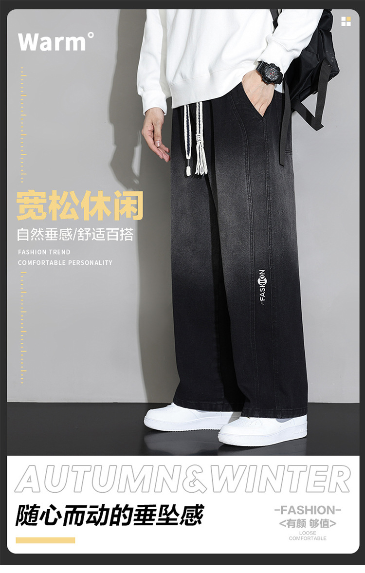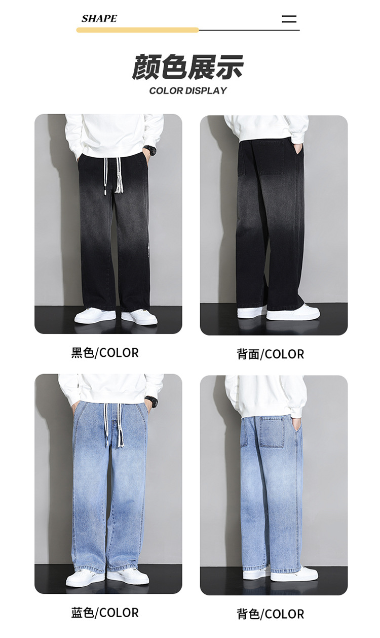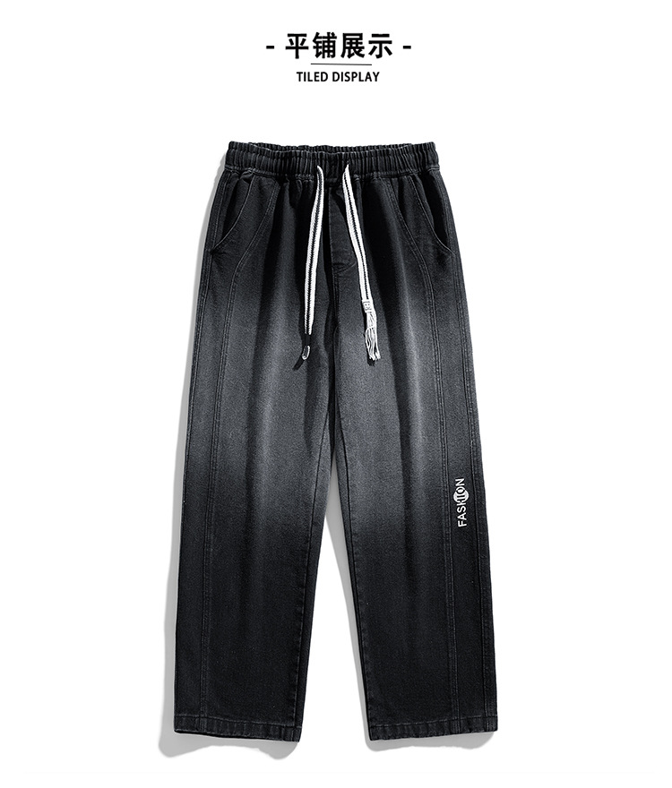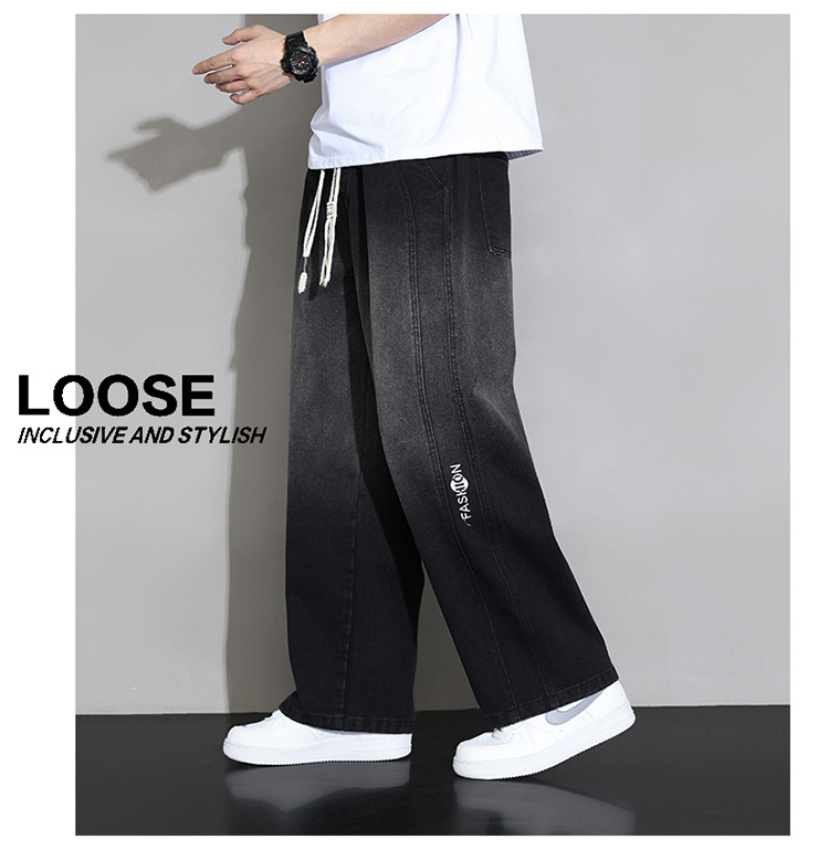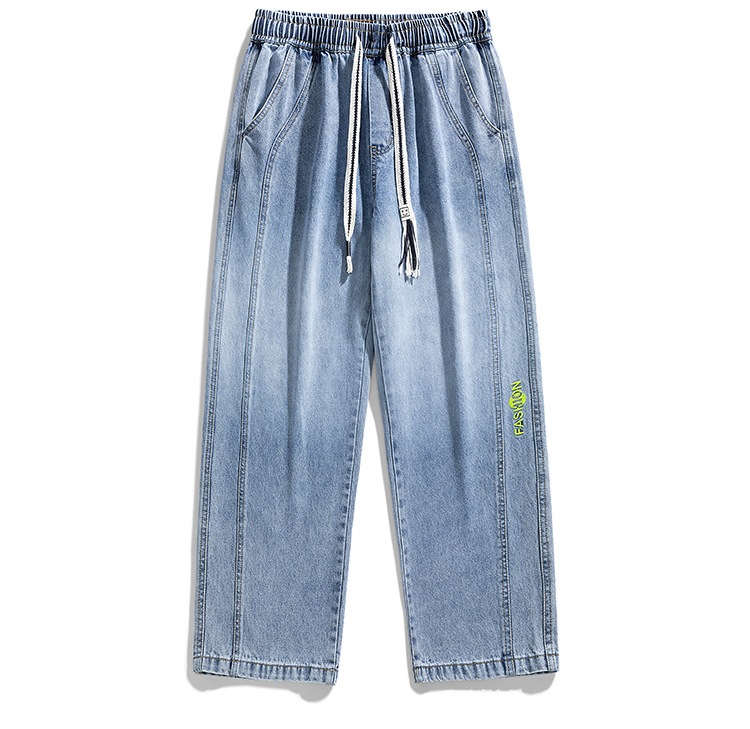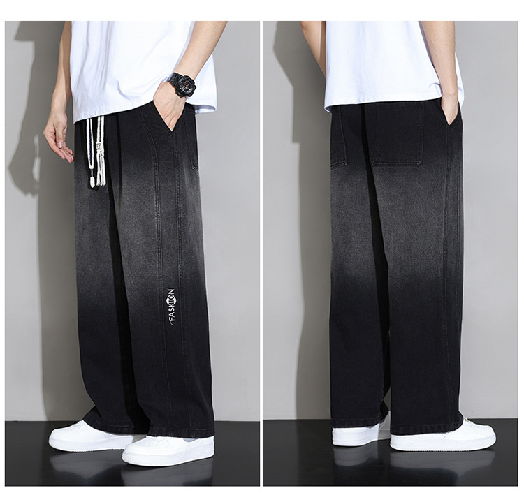 플러스 사이즈 스트레이트 데님 바지 남자 여름 미국 스타일 하이 스트리트 아이스 실크 느슨한 플러스 큰 뚱뚱한 넓은 다리 바지