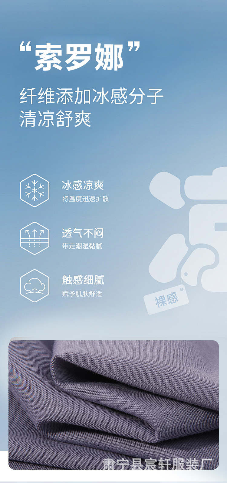 | 工艺 | 凉感 | 颜色 | 白色-冰感索罗娜, 酒红-冰感索罗娜, 黑色-冰感索罗娜, 暗紫-冰感索罗娜, 橘色-冰感索罗娜, 藏蓝-冰感索罗娜, 大红-冰感索罗娜, 军绿-冰感索罗娜 |