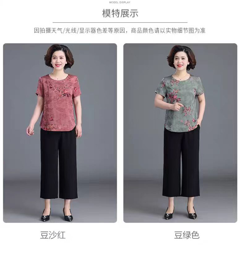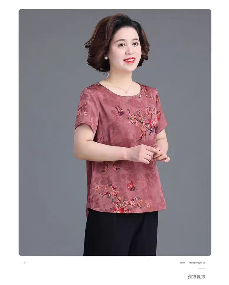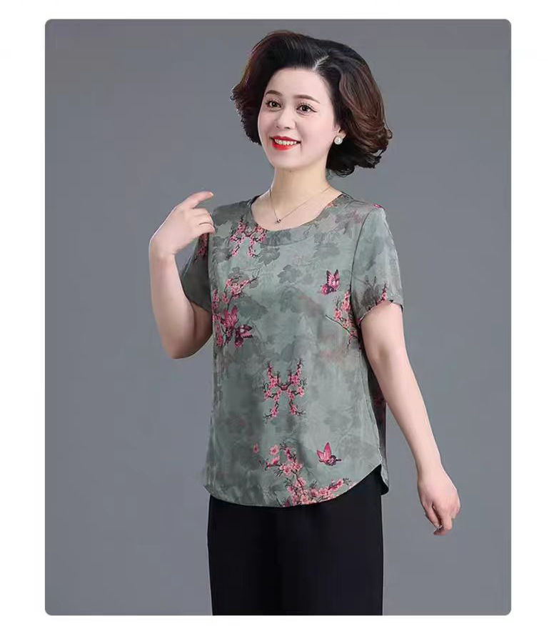할머니 원피스 여름 서양식 작은 셔츠 플러스 사이즈 옷 노인 느슨한 중년 및 노인 여성 반팔 최고 고귀한 어머니