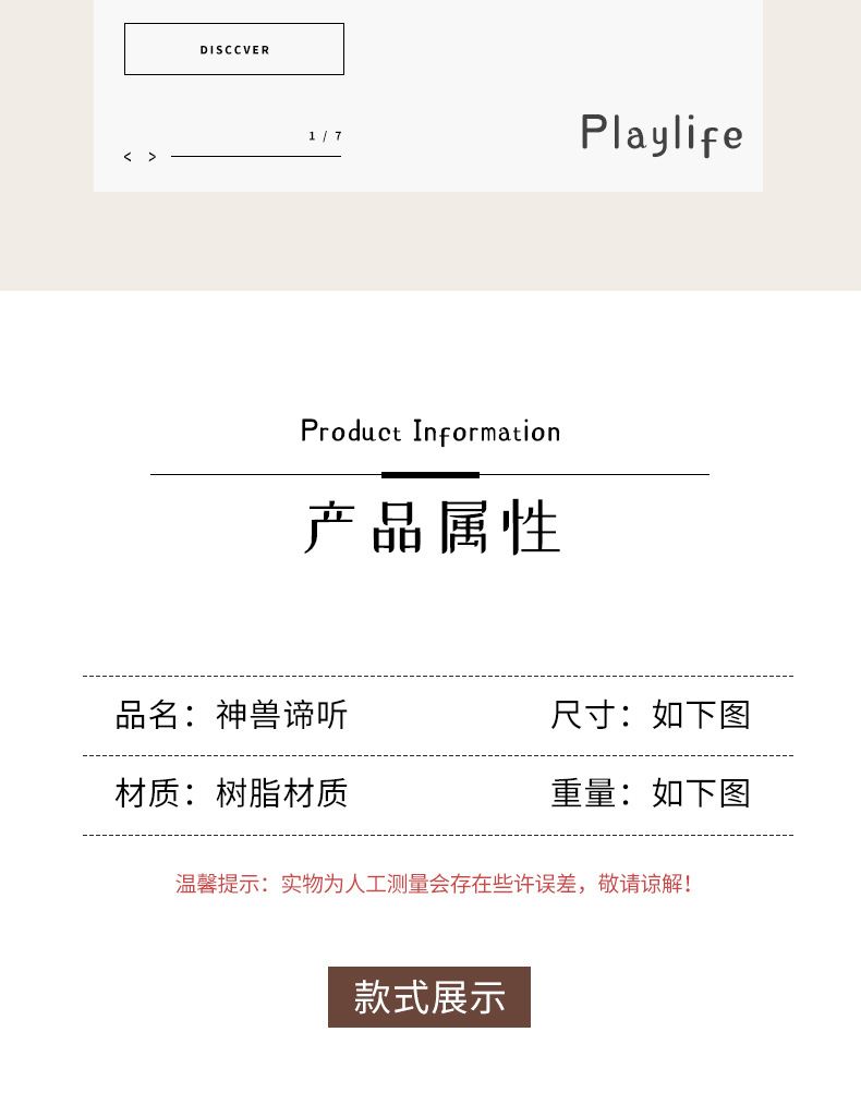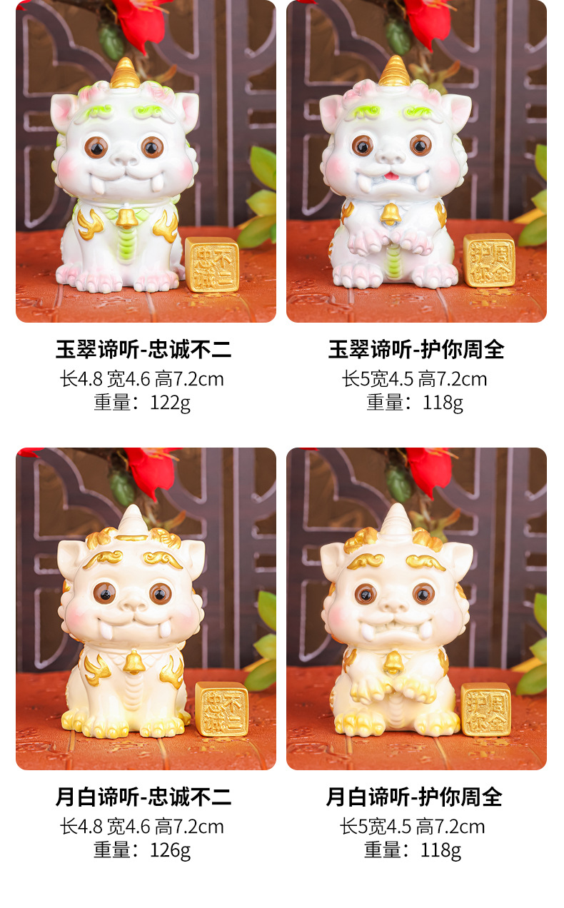 | 功能 | 装饰 | 颜色分类 | 金黄谛听-A款, 金黄谛听-B款, 粉色谛听-A款, 粉色谛听-B款, 橘色谛听-A款, 橘色谛听-B款, 象牙白谛听-A款, 象牙白谛听-B款, 绿色谛听-A款, 绿色谛听-B款, 石头色谛听-A款, 石头色谛听-B款 |