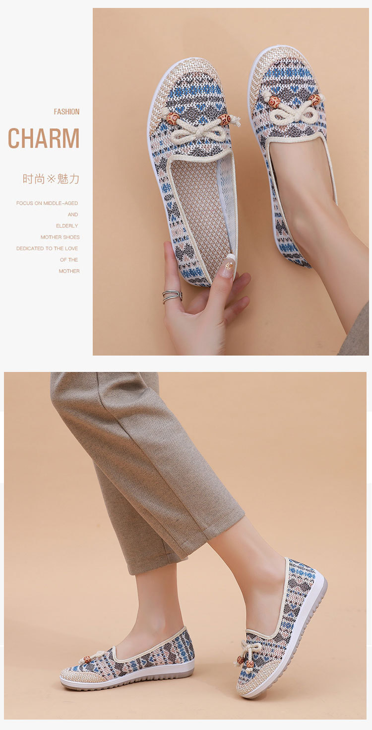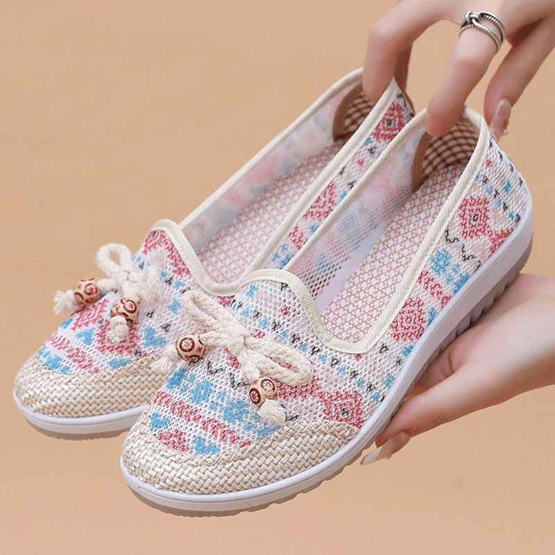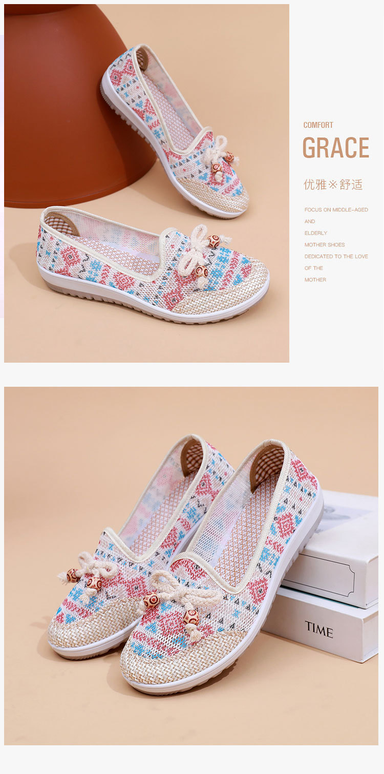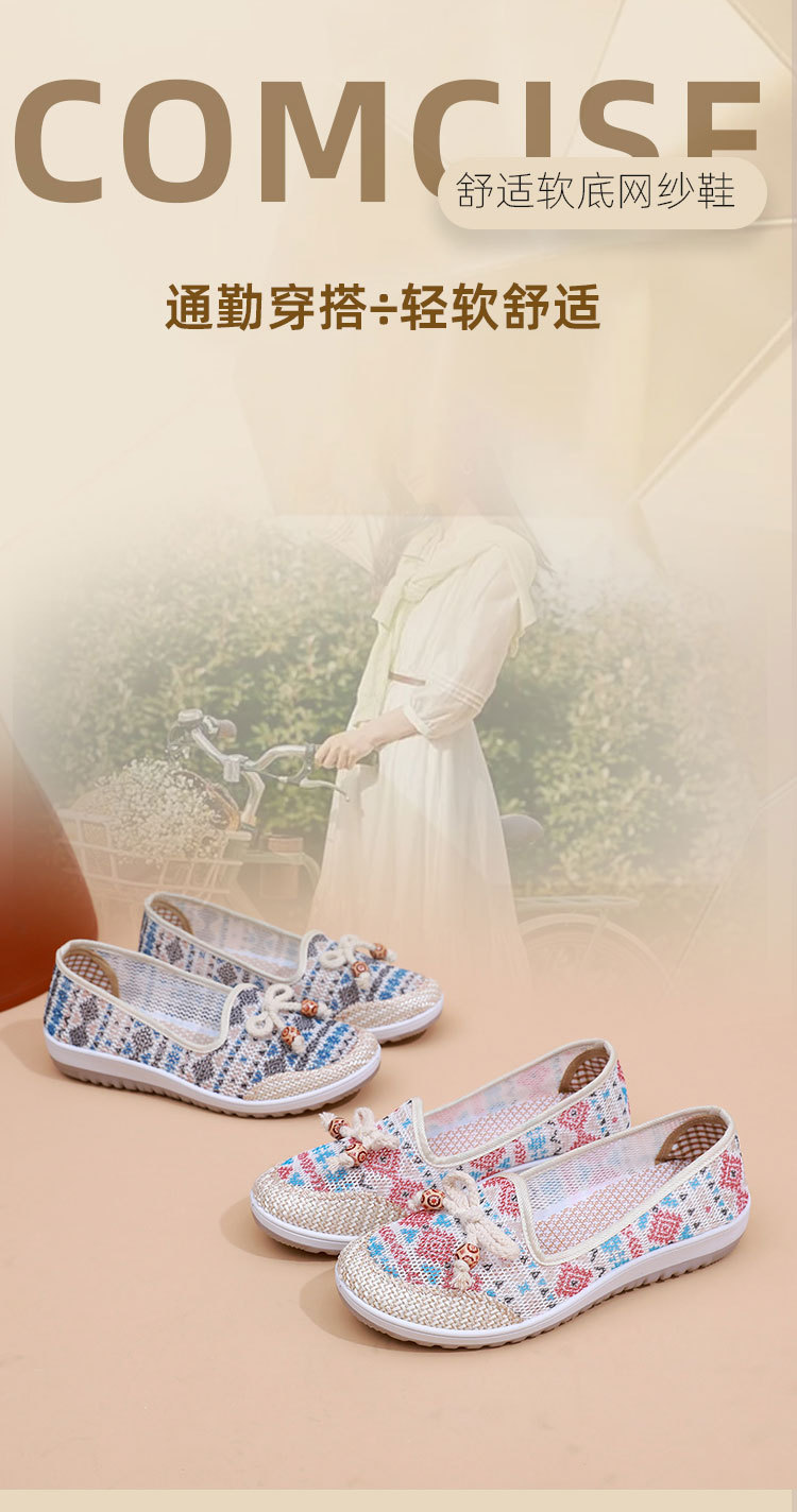 국경 간 2025 봄과 여름 새로운 메쉬 자수 신발 TEMU 세대 부드러운 단독 통기성 엄마 신발 민족 스타일 캐주얼 신발
