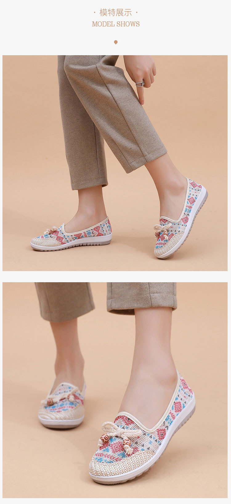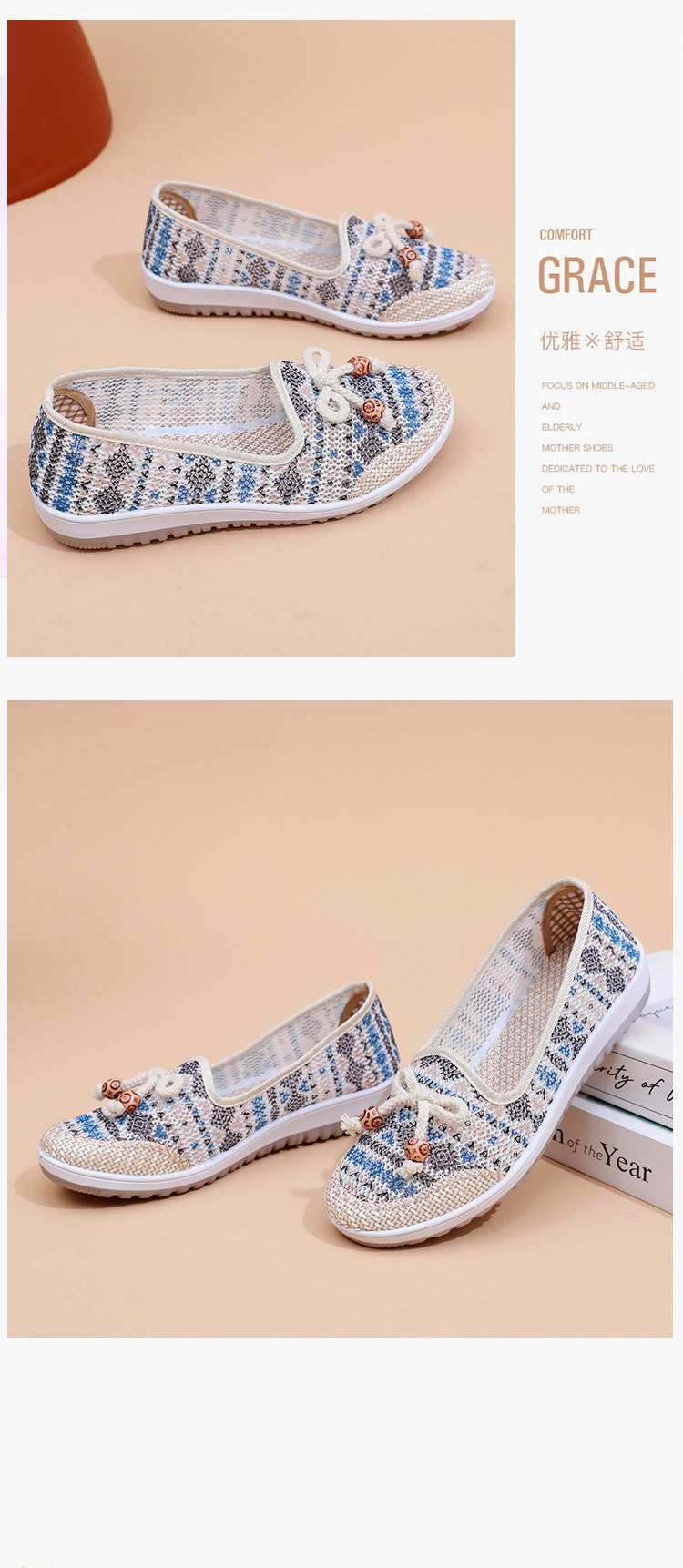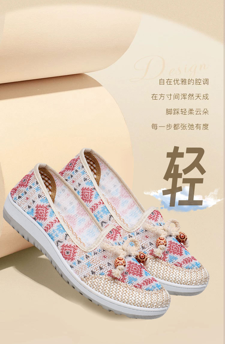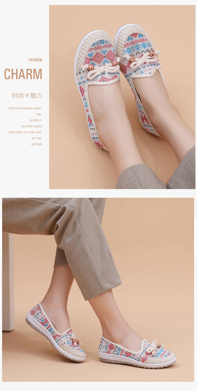 국경 간 2025 봄과 여름 새로운 메쉬 자수 신발 TEMU 세대 부드러운 단독 통기성 엄마 신발 민족 스타일 캐주얼 신발