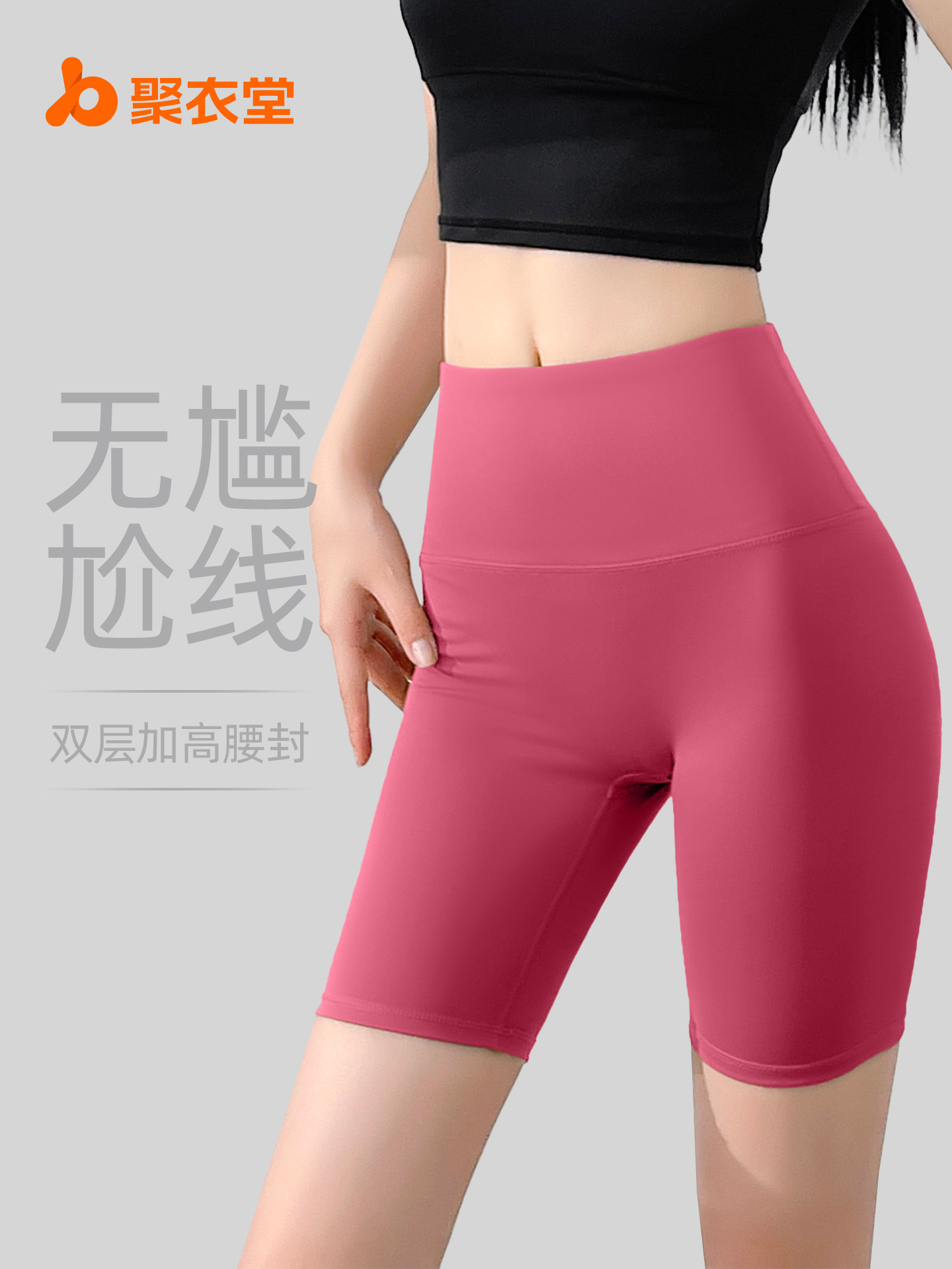Juyitang 어색한 라인이 없는 요가 반바지 스포츠 5부 바지 누드 느낌의 하이 웨이스트 엉덩이 리프팅 요가 바지 여성용 짧은 스타일